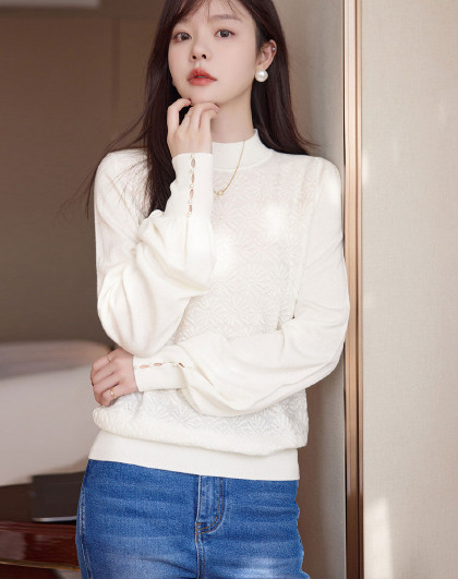 【时尚提花】2023春季新品设计感套头百搭长袖线衫针织衫女
