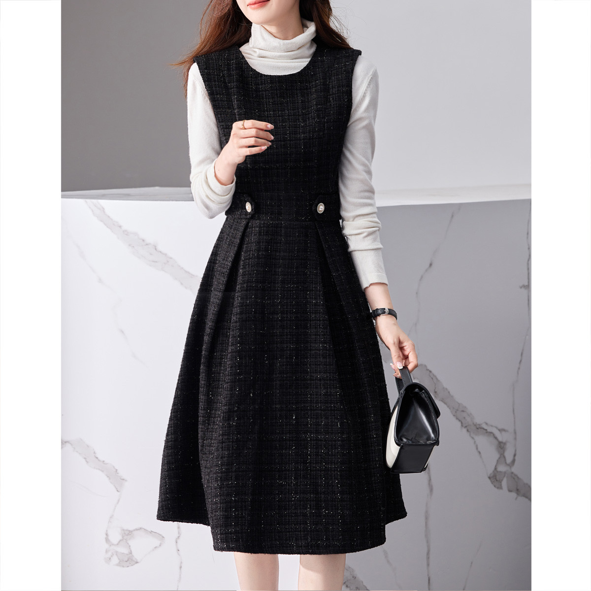 弹性: 无弹 版型: 收腰 裙长: 中长裙 厚薄: 厚 详细材质信息: 面料:93.9%聚酯纤维 6.1%粘胶纤维 (粘衬除外) 里料:100%聚酯纤维 风格: 优雅 流行元素: 纽扣 适用季节: 秋,冬 领型: 圆领 衣门襟: 拉链 裙型: X版型 袖型: 无袖 袖长: 无袖 腰型: 中腰 适用人群: 青年 面料: 涤纶/聚酯纤维 肩型: 常规肩 款式: 小黑裙 组合形式: 单件 生产/经销/进口厂家: 宁波德玛纳瑞品服饰有限公司 适用性别: 女士 厂家地址: 安徽省芜湖市三山经济开发区保定街道焦弯路3号 洗涤说明: 凡是棉、麻、丝、毛天然面料都会有轻微褪色、变型、起皱、缩水现象,为减少或避免以上情况发生在洗涤保养上需特别小心。洗涤时应选用冷水(30度以下),中性或酸性洗衣手洗(丝、毛面料应选用专业洗衣液),不宜浸泡(2分钟左右),即泡即洗,不可氯漂。为避免染色,清洗与晾晒时,深浅色应分开,不宜拧过干,反面阴干 主风格: 小香风 执行标准: Q/DMN 017-2023 廓形: X型 主款式: 小黑裙 产地: 中国 商品配件: 暂无 商品编码: G538421550403902 收起商品展示IMAGE