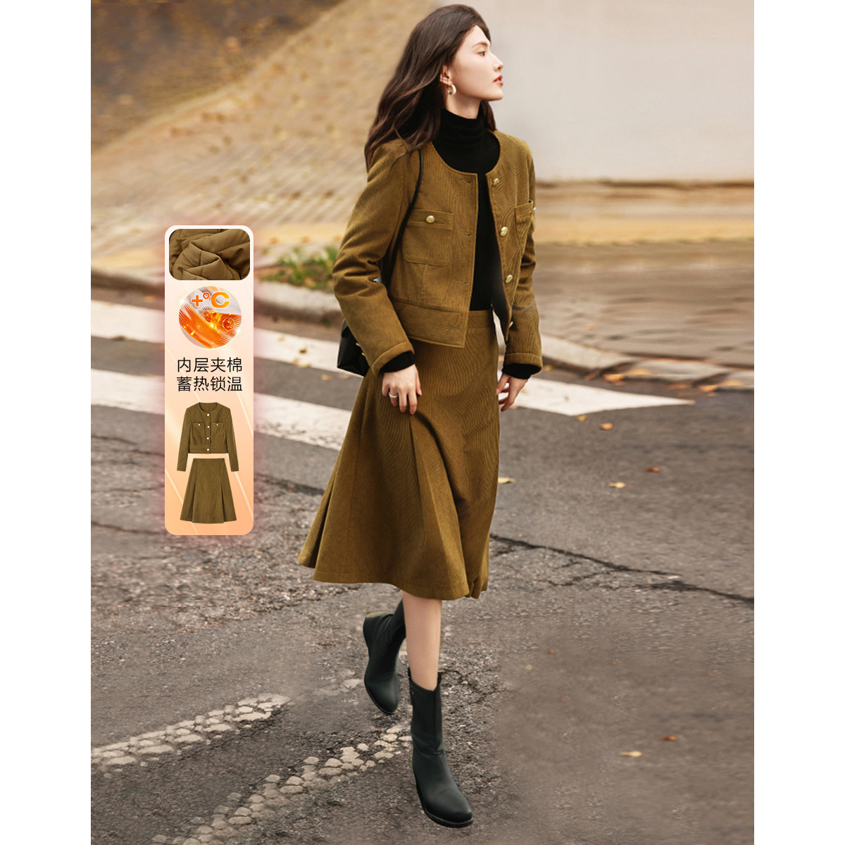 弹性: 微弹 版型: 常规 衣长: 常规 风格: 通勤 流行元素: 纽扣 适用场景: 日常 适用季节: 秋,冬 领型: 圆领 袖型: 常规 袖长: 长袖 适用人群: 青年 面料: 涤纶/聚酯纤维 款式: 通勤套装 套装形式: 上衣+裙 上市年份: 2023 规格数量: 两件 生产/经销/进口厂家: 宁波德玛纳瑞品服饰有限公司 适用性别: 女士 厂家地址: 安徽省芜湖市三山经济开发区保定街道焦弯路3号 洗涤说明: 凡是棉、麻、丝、毛天然面料都会有轻微褪色、变型、起皱、缩水现象,为减少或避免以上情况发生在洗涤保养上需特别小心。洗涤时应选用冷水(30度以下),中性或酸性洗衣手洗(丝、毛面料应选用专业洗衣液),不宜浸泡(2分钟左右),即泡即洗,不可氯漂。为避免染色,清洗与晾晒时,深浅色应分开,不宜拧过干,反面阴干 详细材质信息: 上装:面料:100%聚酯纤维 里料:100%聚酯纤维 填充物:100%聚酯纤维 (无纺布除外) 下装:面料:100%聚酯纤维 里料:100%聚酯纤维 主款式: 连衣裙套装 主风格: 商务通勤 执行标准: 上装:GB/T26384-2011下装:Q/DMN 016-2018 产地: 中国 商品配件: 暂无 商品编码: G538421610201313 收起商品展示IMAGE