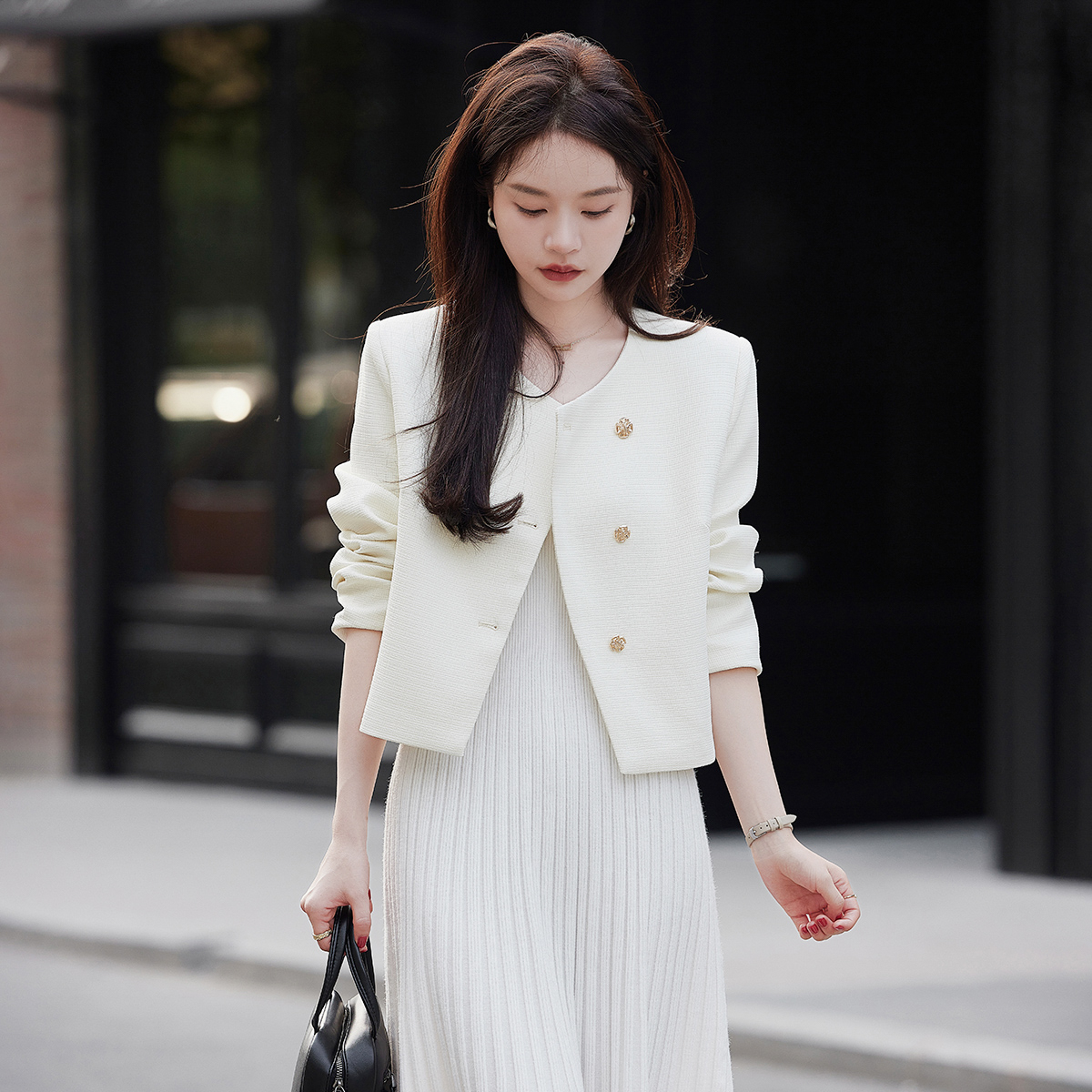 【肌理感面料】2023秋季新品气质斜门襟肌理感小香风外套女