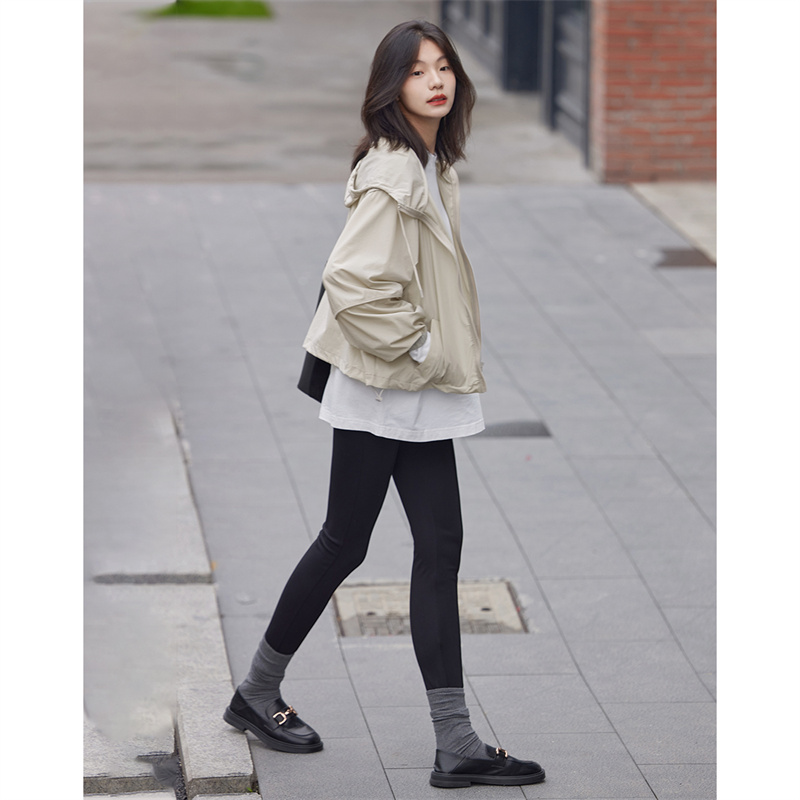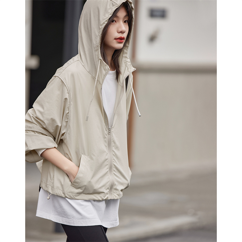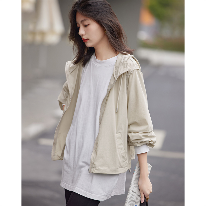 德玛纳秋季新品浅色连帽拉链小个子短款外套休闲运动风上衣