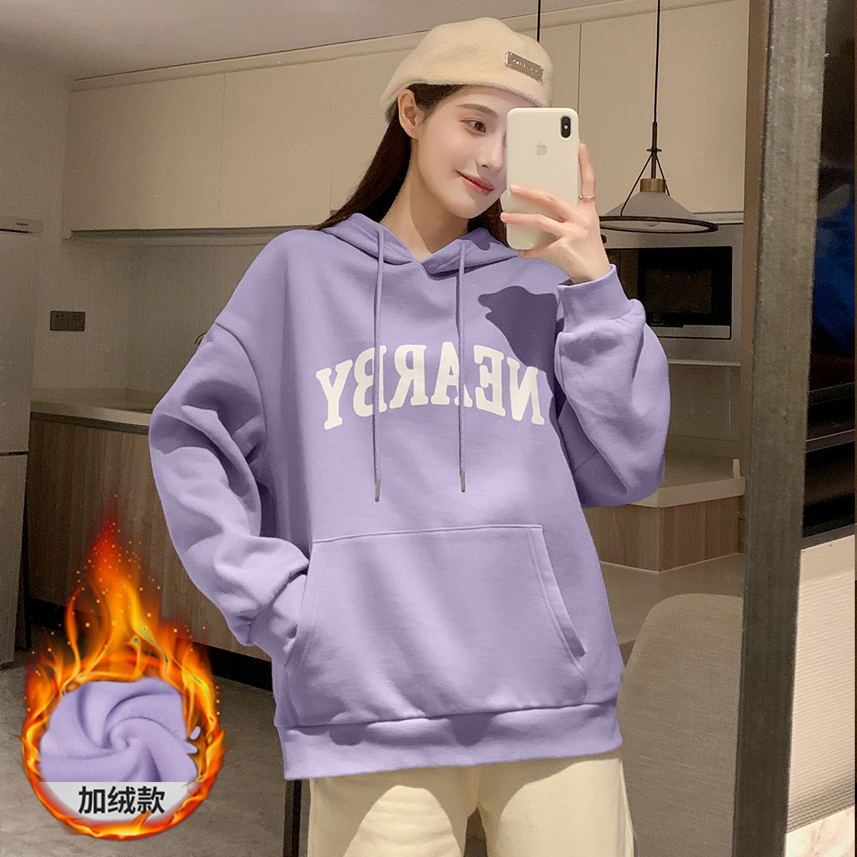 2023秋冬新款女连帽前胸压印字母卫衣时尚遮肉百搭小个子韩版