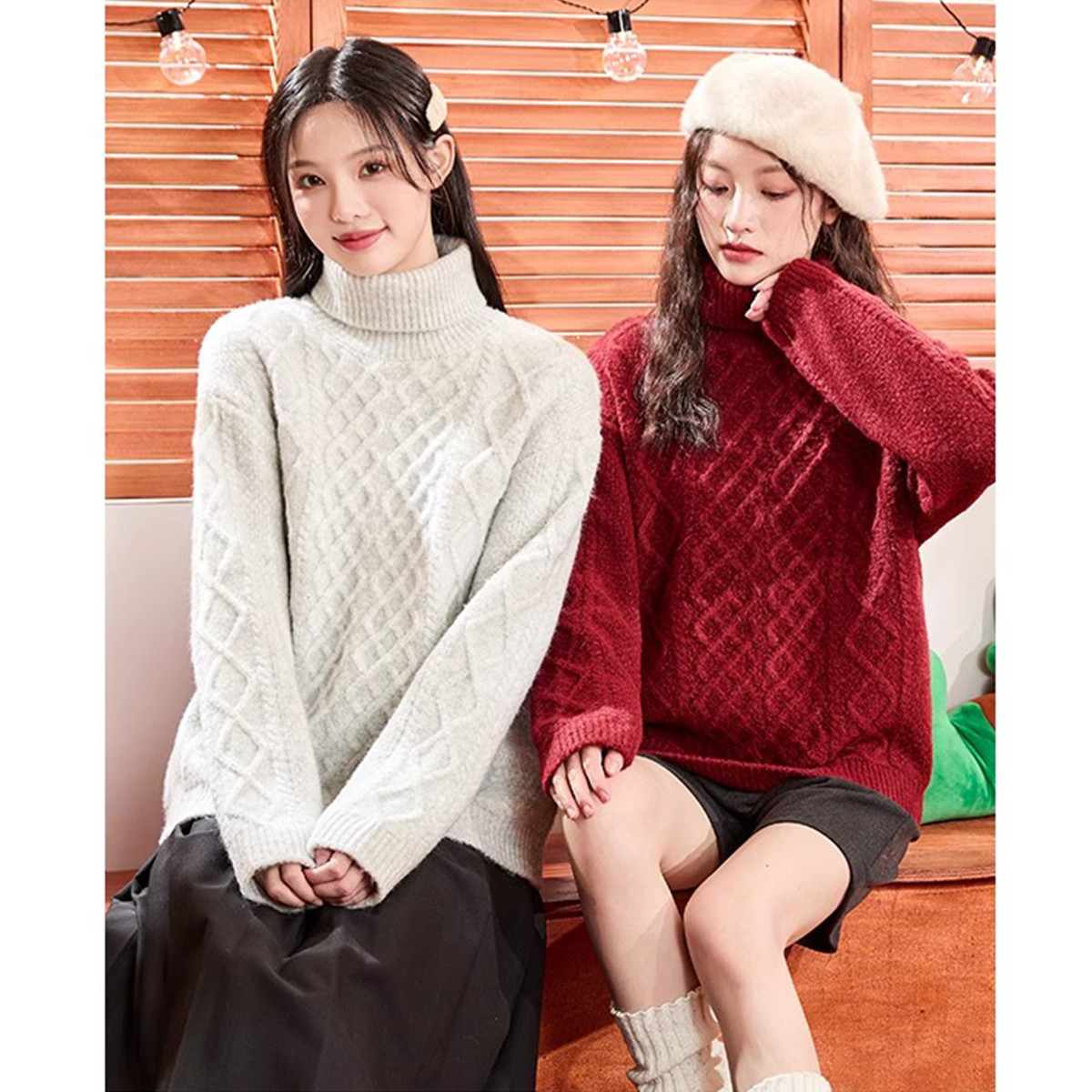 2023秋冬新款女高领净色大绞花毛衫毛衣简约百搭韩版气质时髦