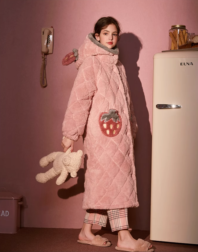 Gukoo/果壳睡袍女冬款加厚女士睡衣粉色家居服女夹棉睡袍睡衣D