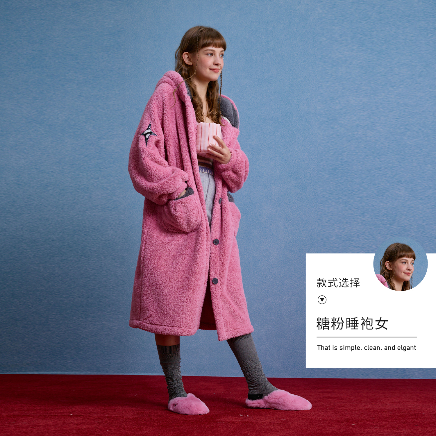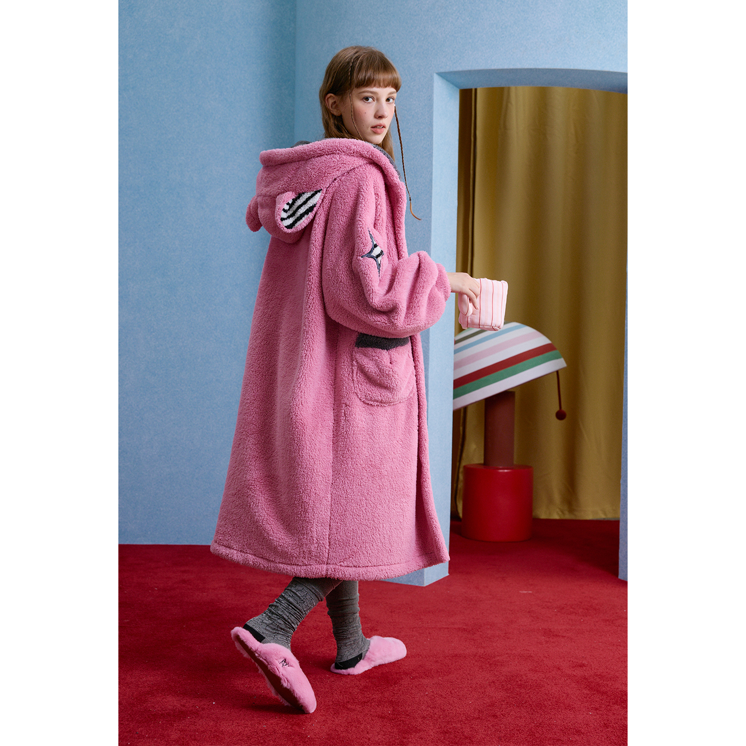 yso【酷猫系列】睡袍女秋冬珊瑚绒加绒睡衣可爱猫咪法兰绒家居服D