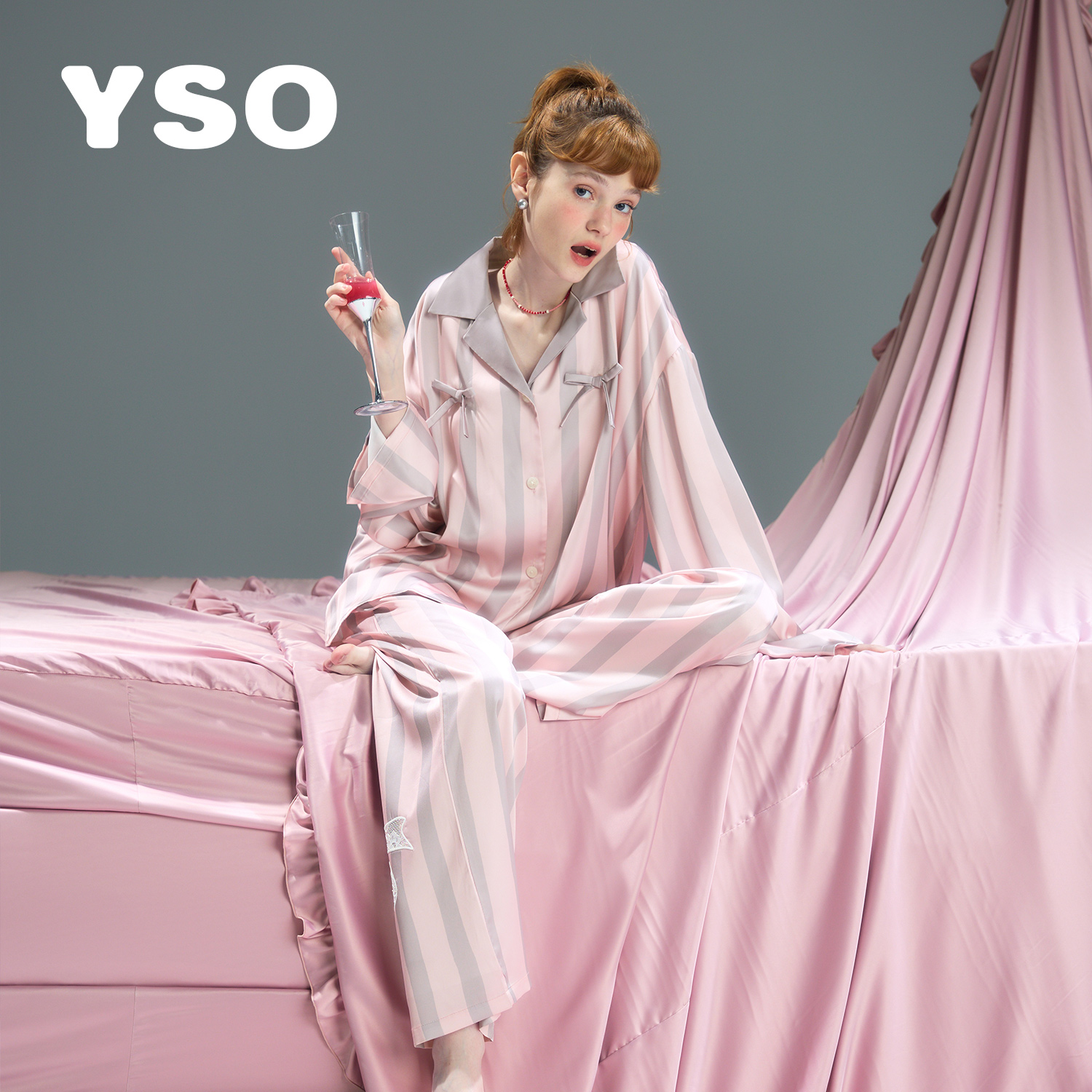 yso【礼物系列】睡衣女春秋冰丝女家居服松弛感长袖长裤套装凉感C