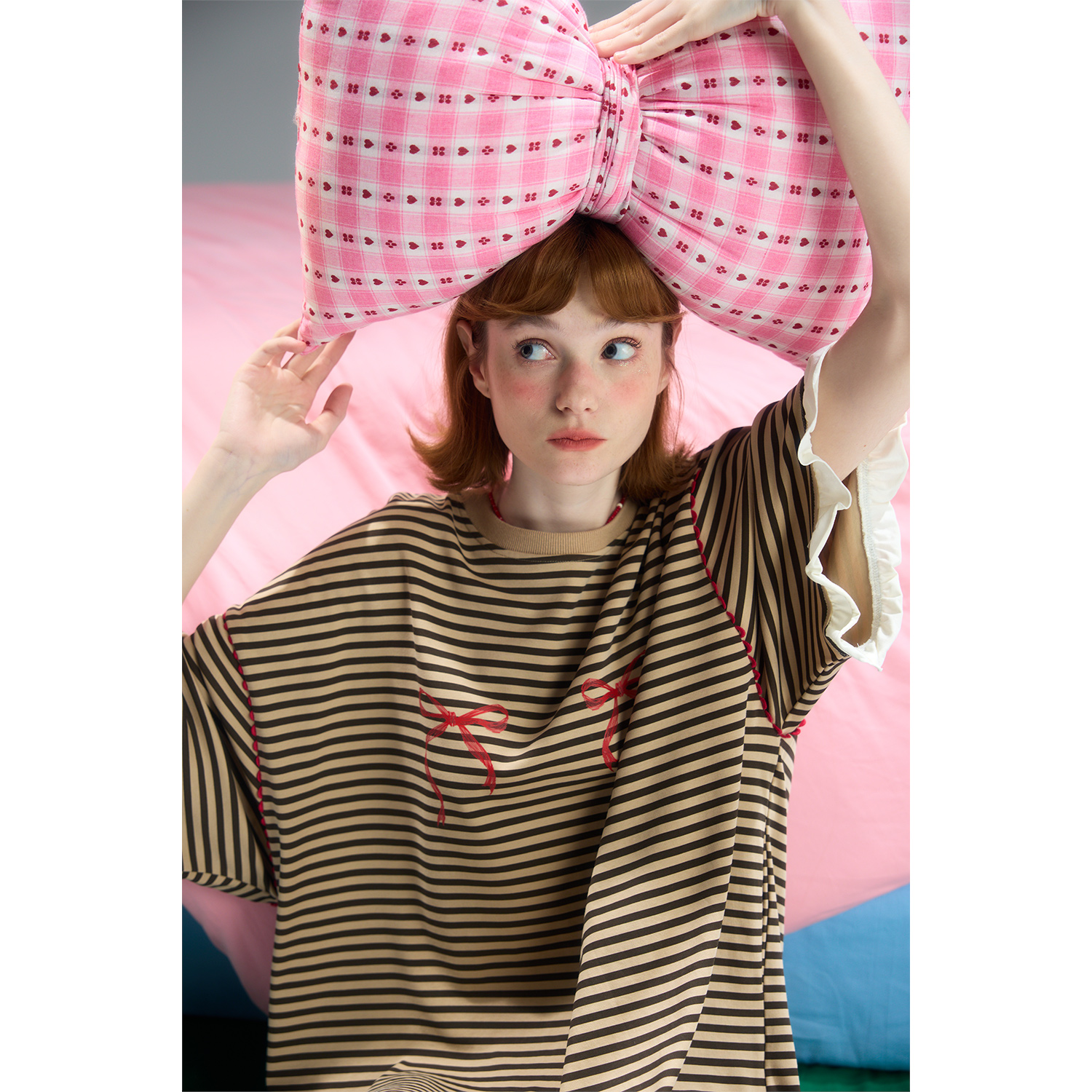 yso【礼物系列】睡裙女春秋棉感条纹舒适睡衣家居服可外穿长裙C