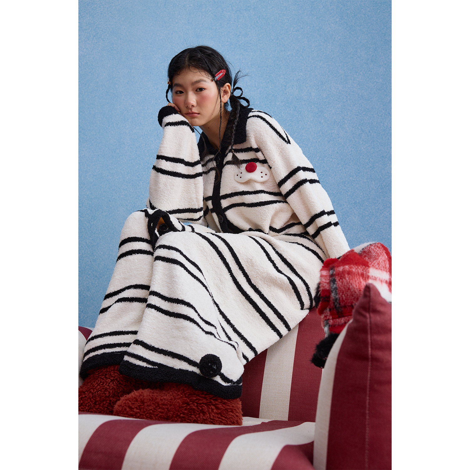 yso【酷猫系列】半边绒睡袍女秋冬连体睡衣两穿长款睡裙女家居服D