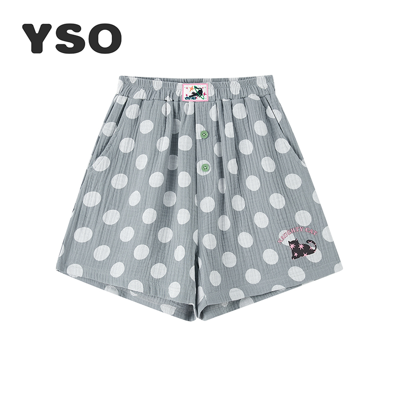 yso【酷猫系列】夏季睡裤波点卡通印花睡衣短裤舒适简约家居服B