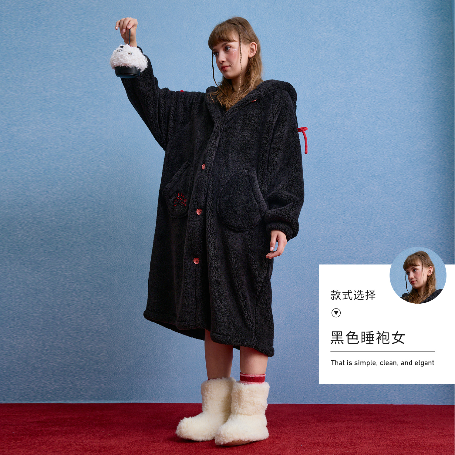 yso【礼物系列】珊瑚绒睡袍冬季新款睡衣女蝴蝶结睡袍甜美家居服D
