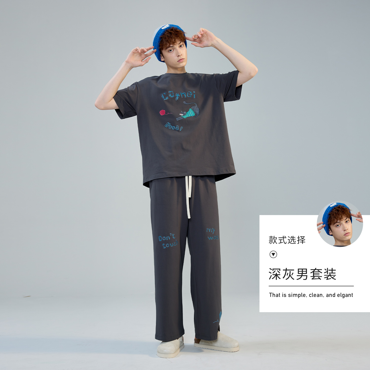 yso【酷猫系列】夏季情侣睡衣女可爱纯棉短袖可外穿男家居服套装