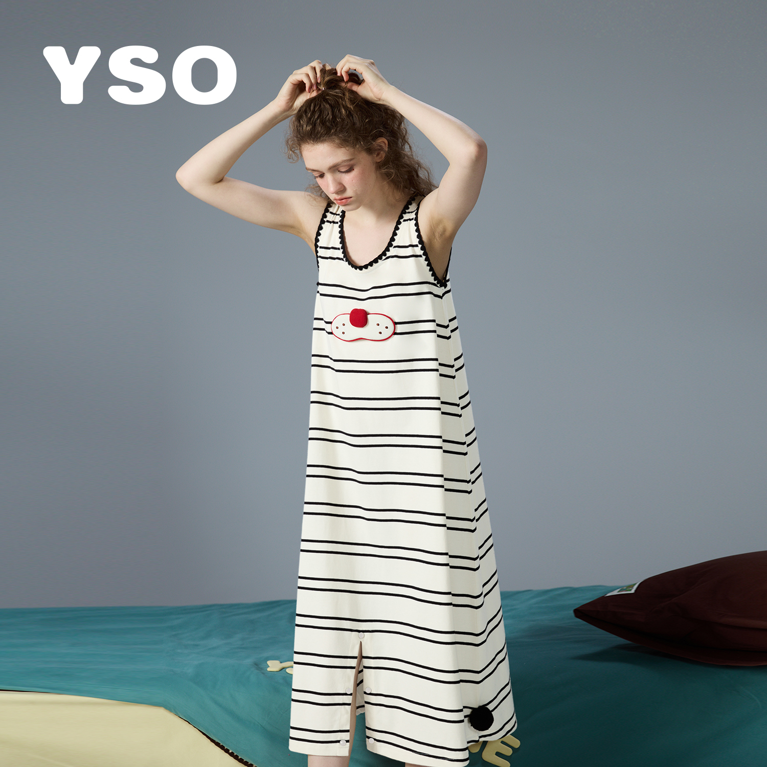 yso【礼物系列】连体睡衣女夏季睡裙春夏蝴蝶结可爱棉感家居服女