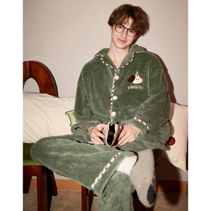 【原创派对小狗】睡衣男士冬季长袖简约可外穿加绒加厚家居服套装