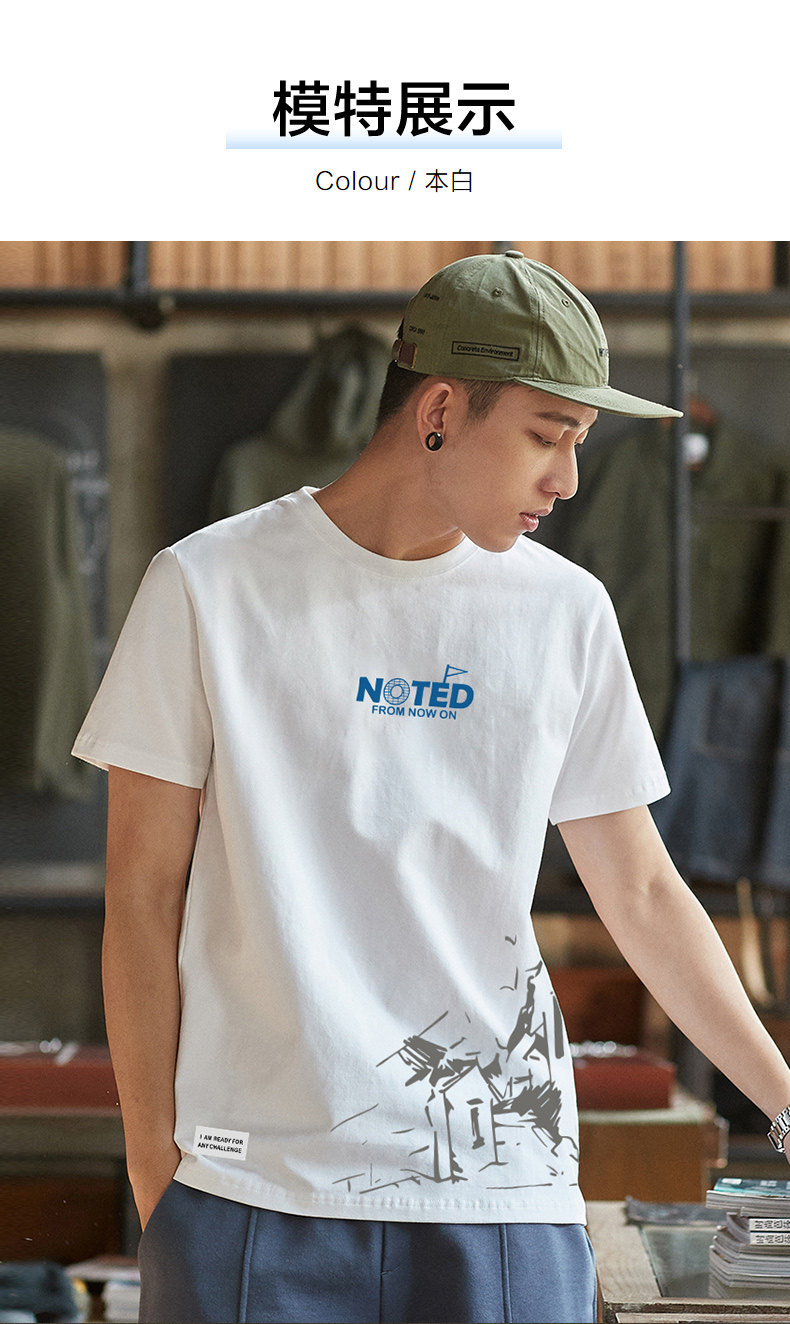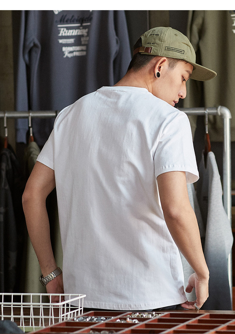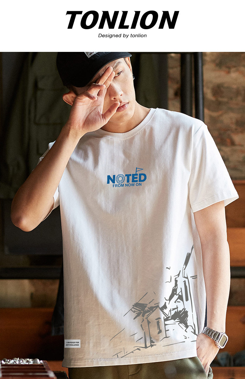唐狮2024夏新款纯棉男套头短袖t恤潮圆领打底衫白色上衣半袖体恤