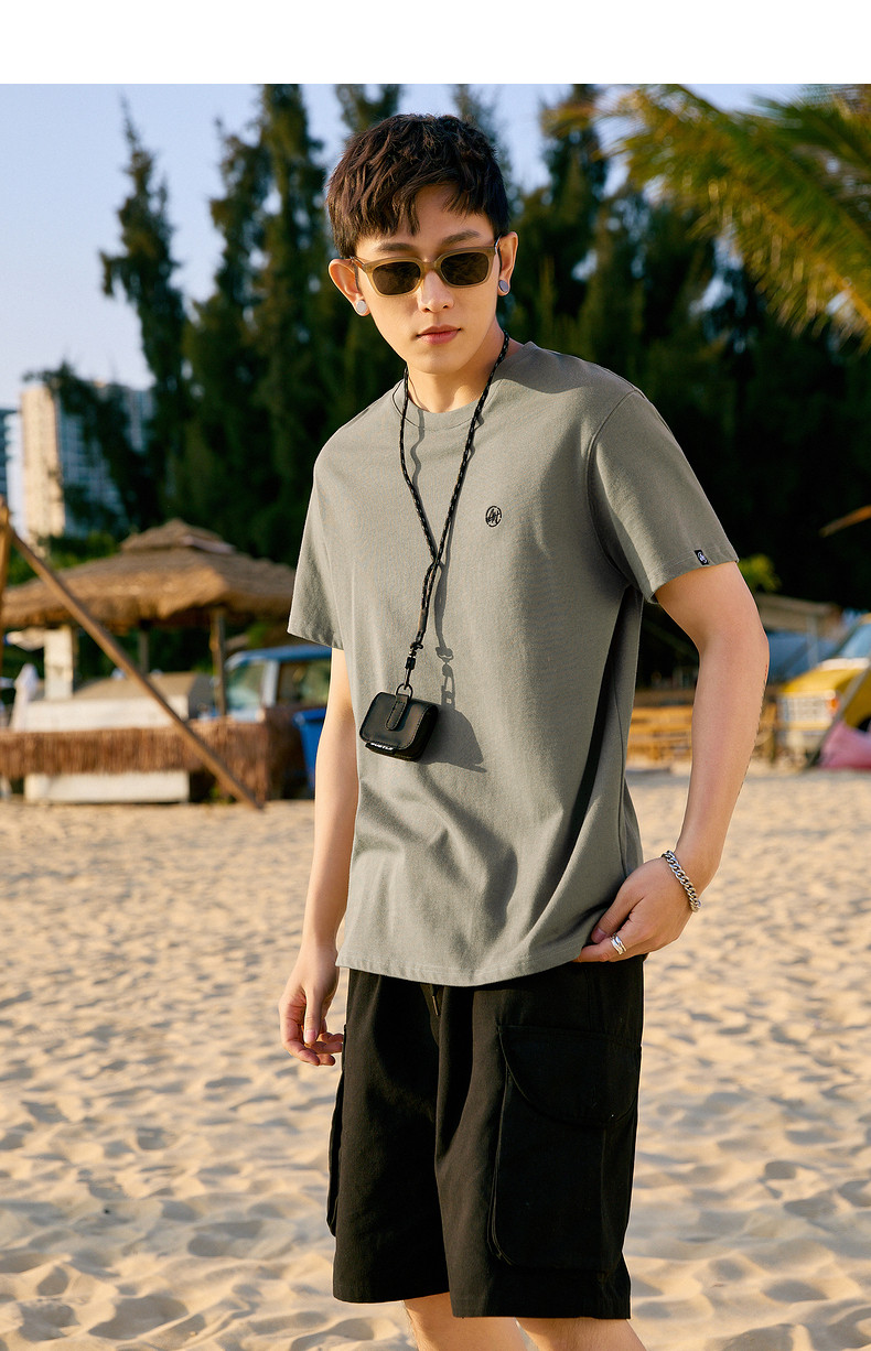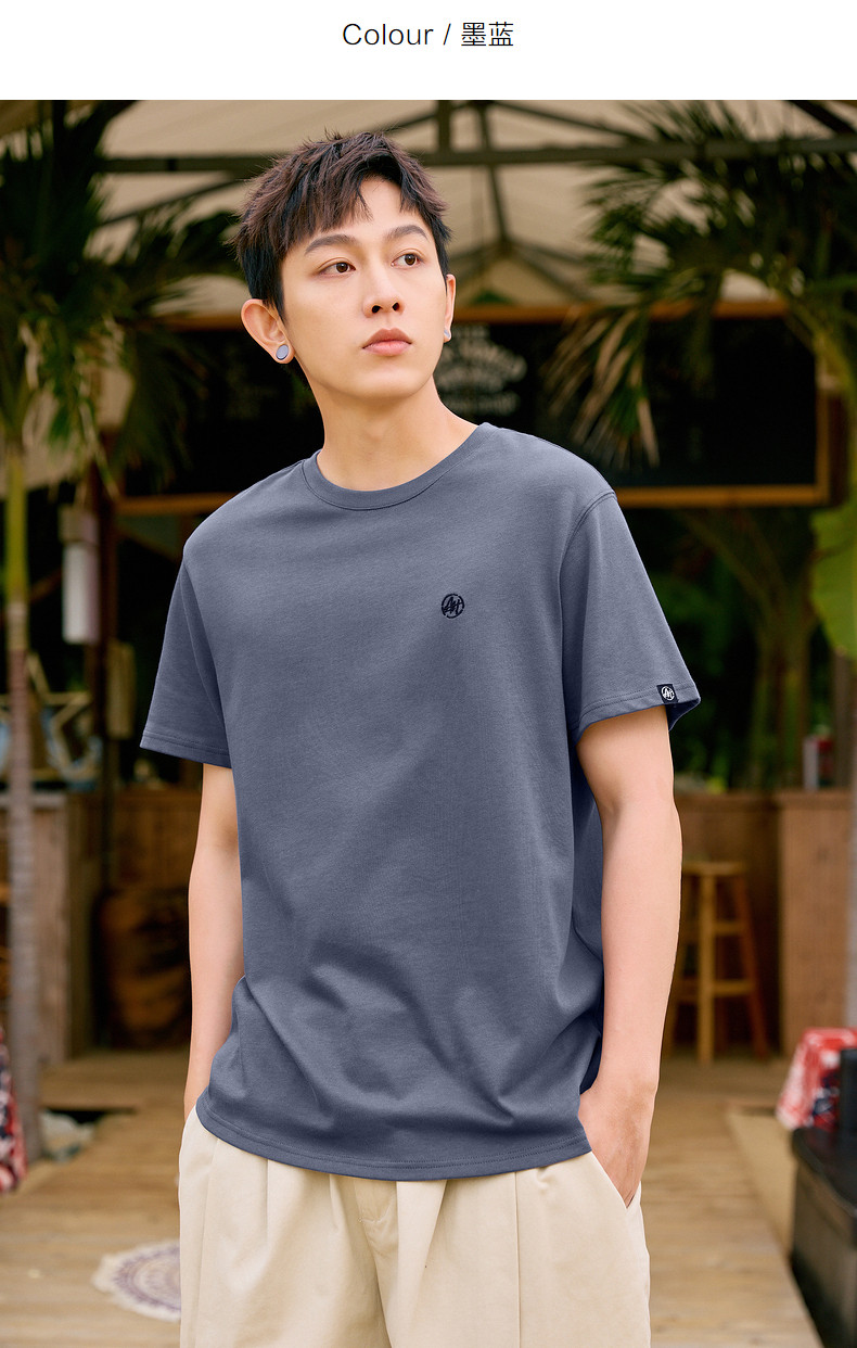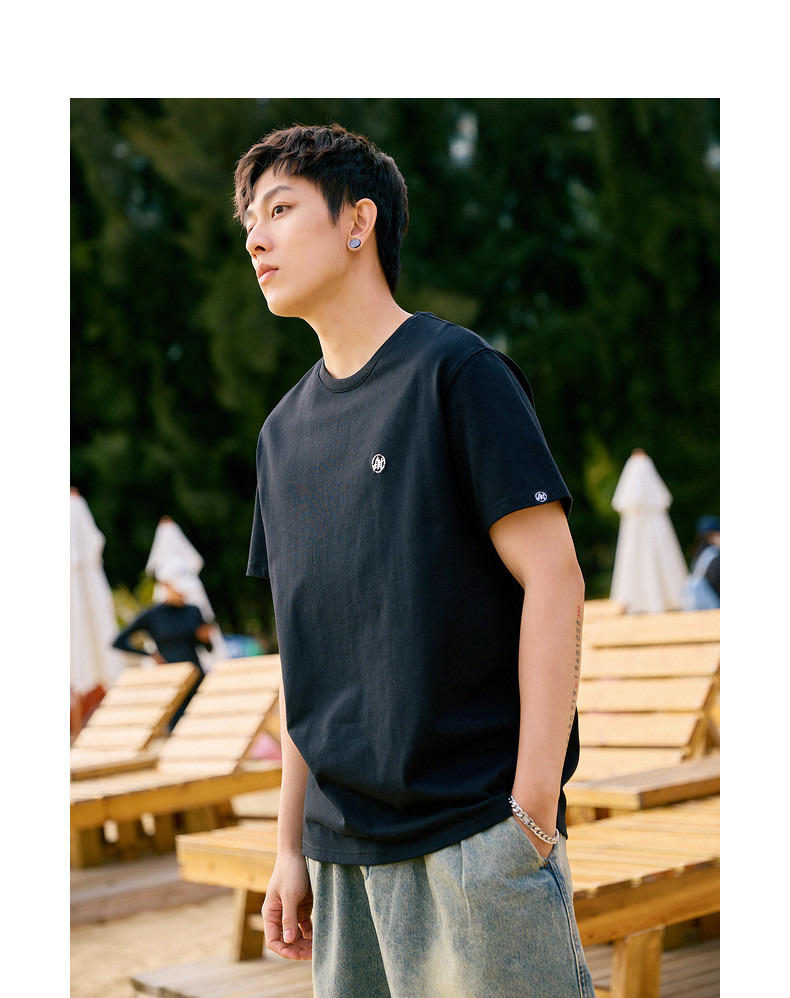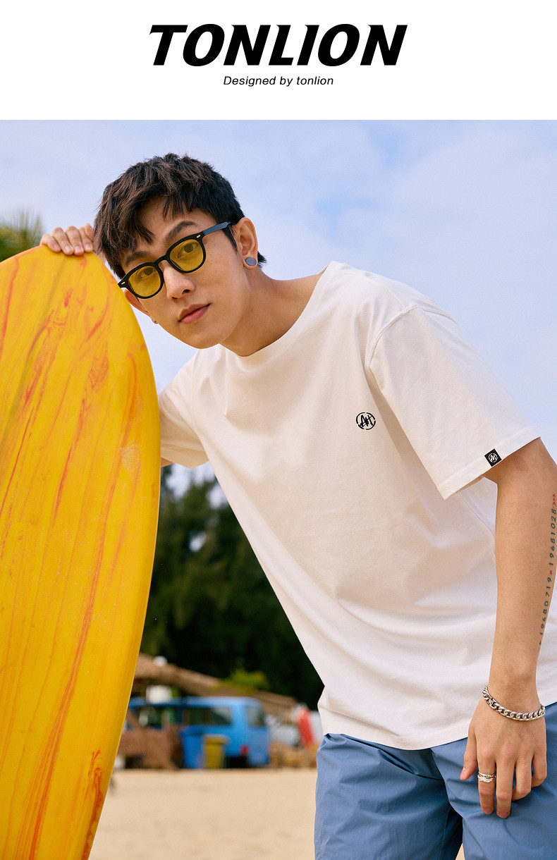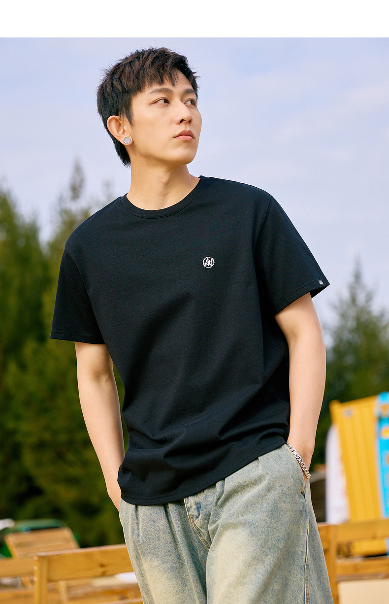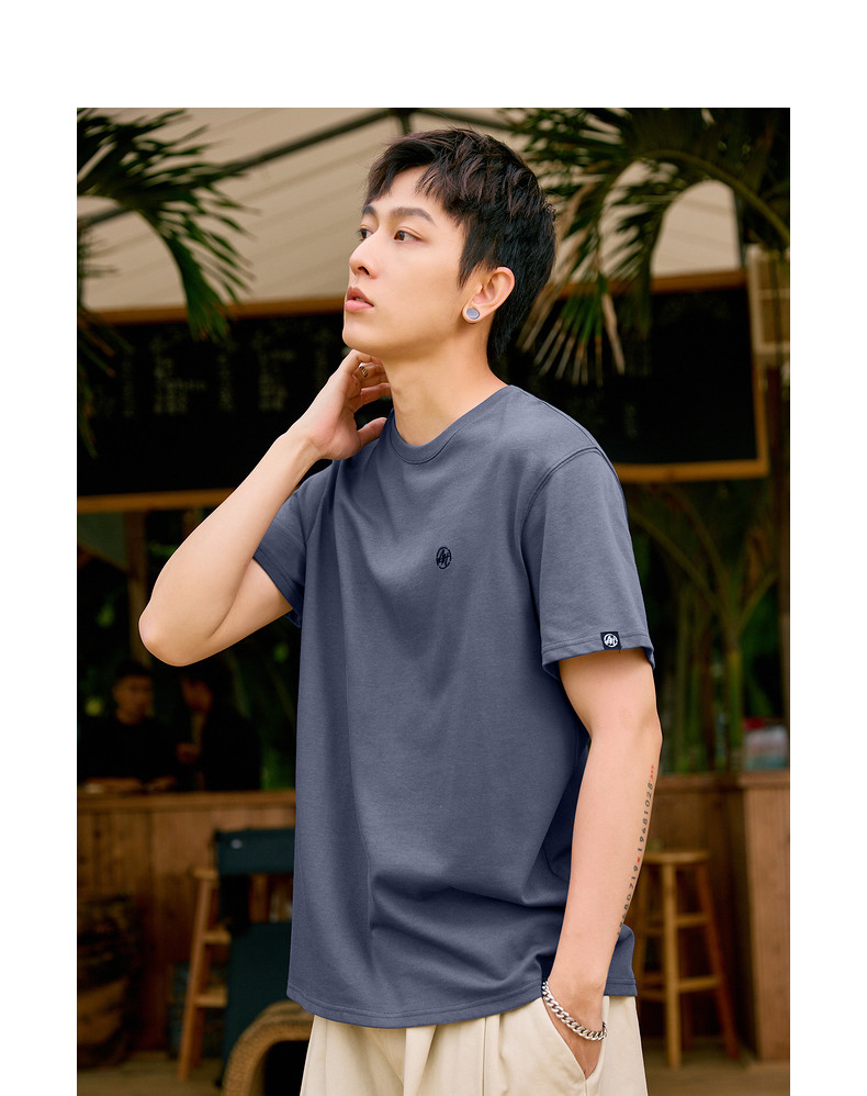 唐狮2024夏新款个性小标纯棉短袖t恤男潮休闲宽松圆领打底衫衣服