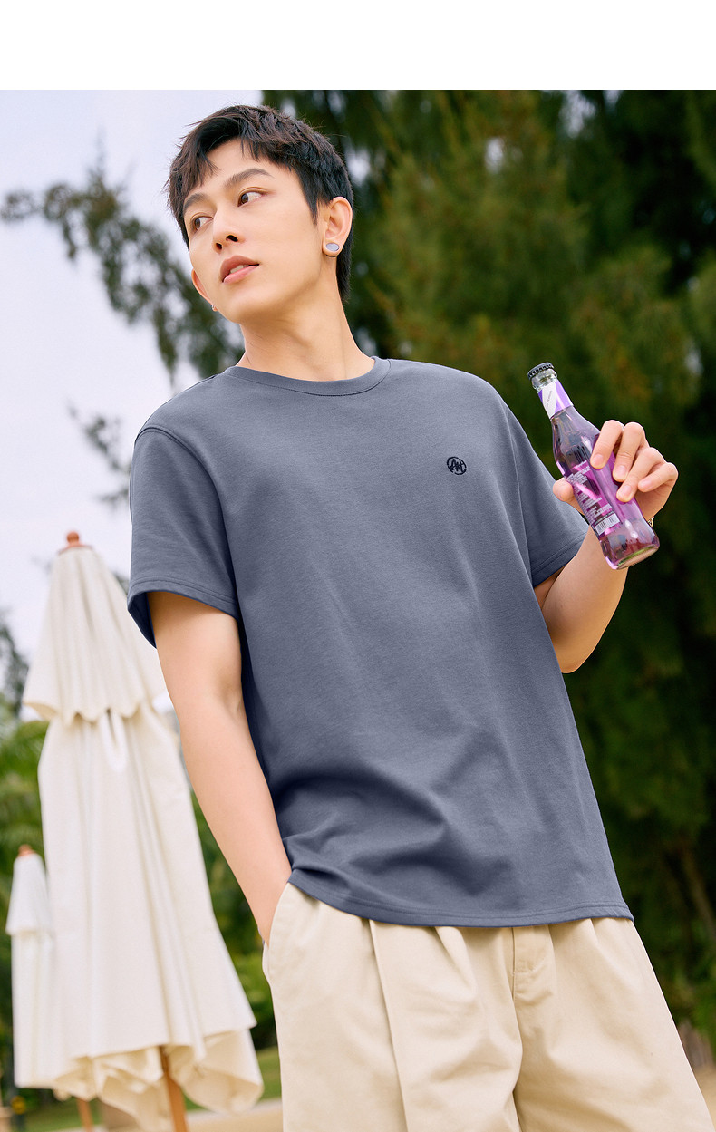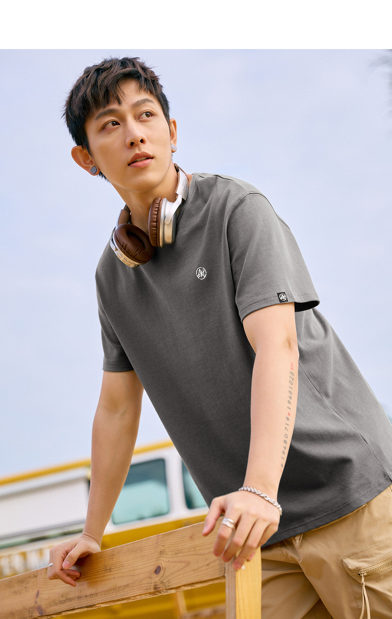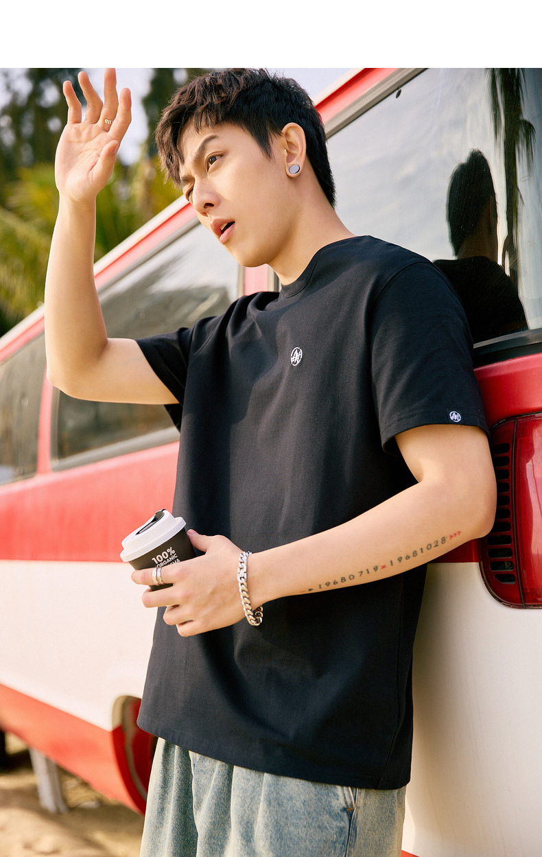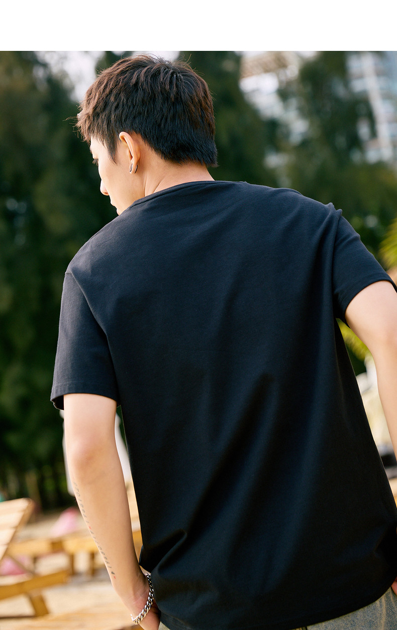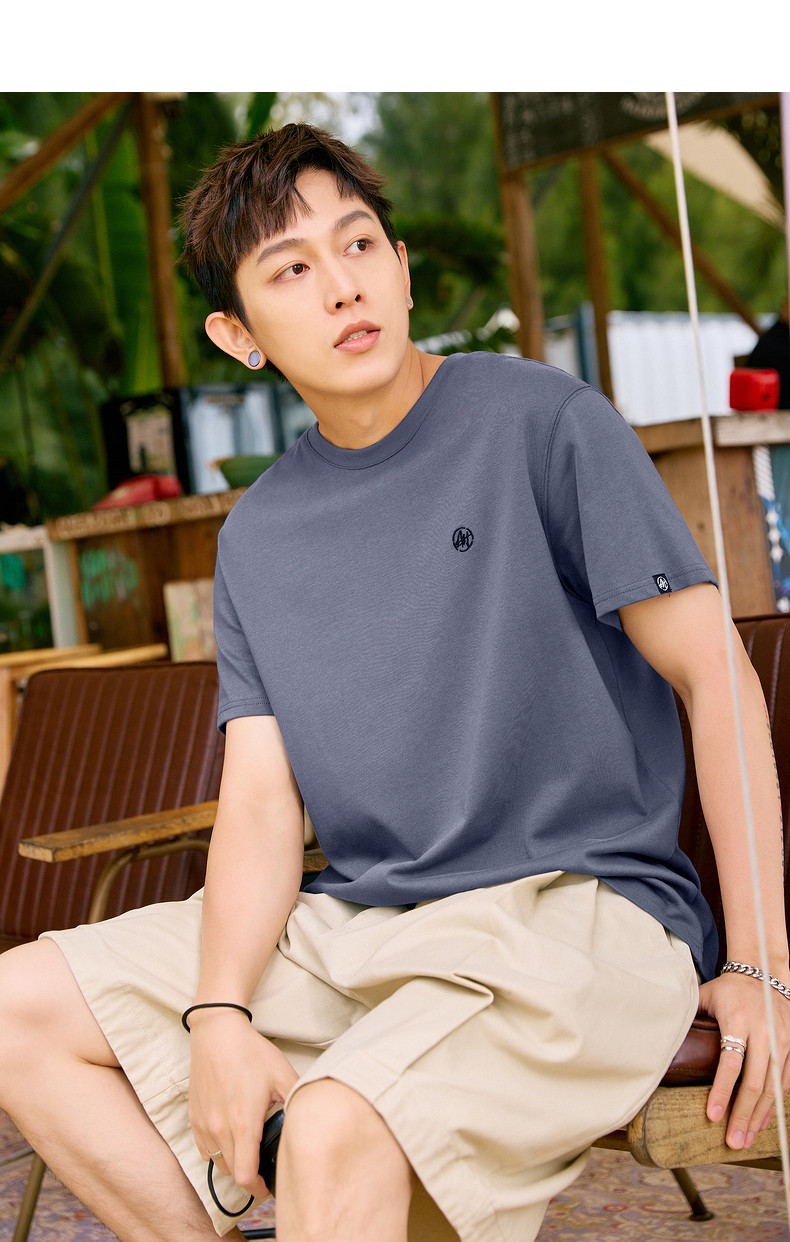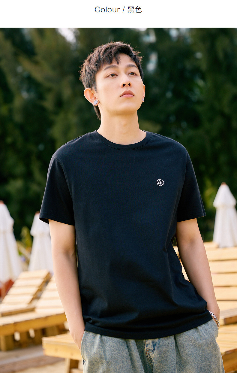 唐狮2024夏新款个性小标纯棉短袖t恤男潮休闲宽松圆领打底衫衣服