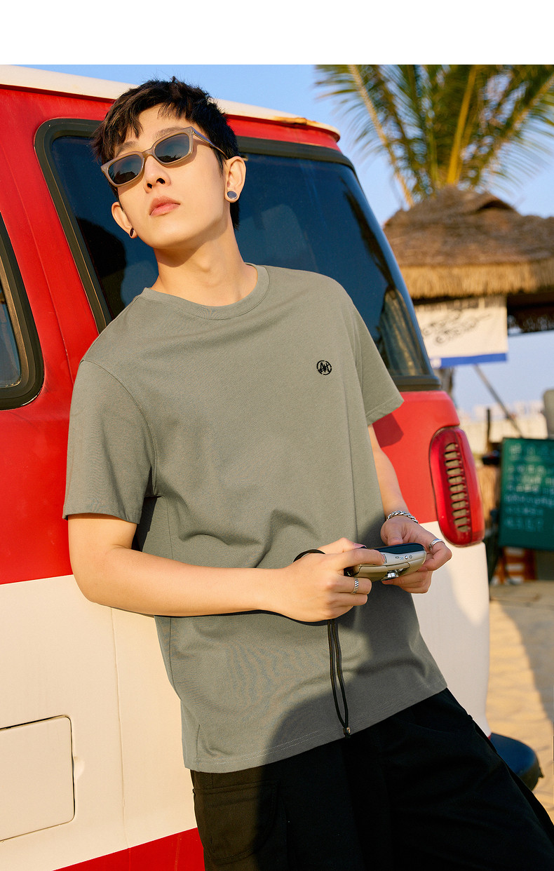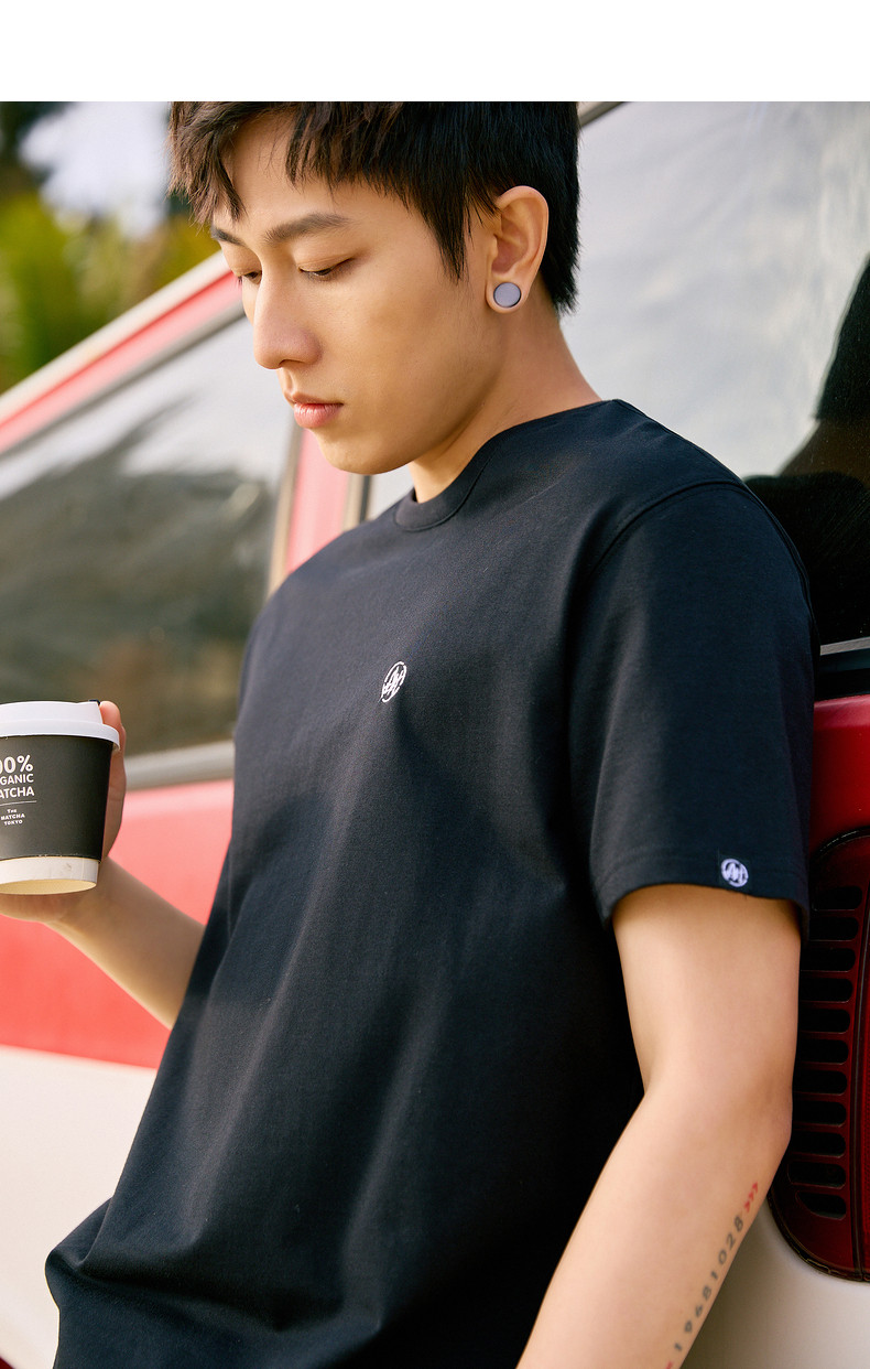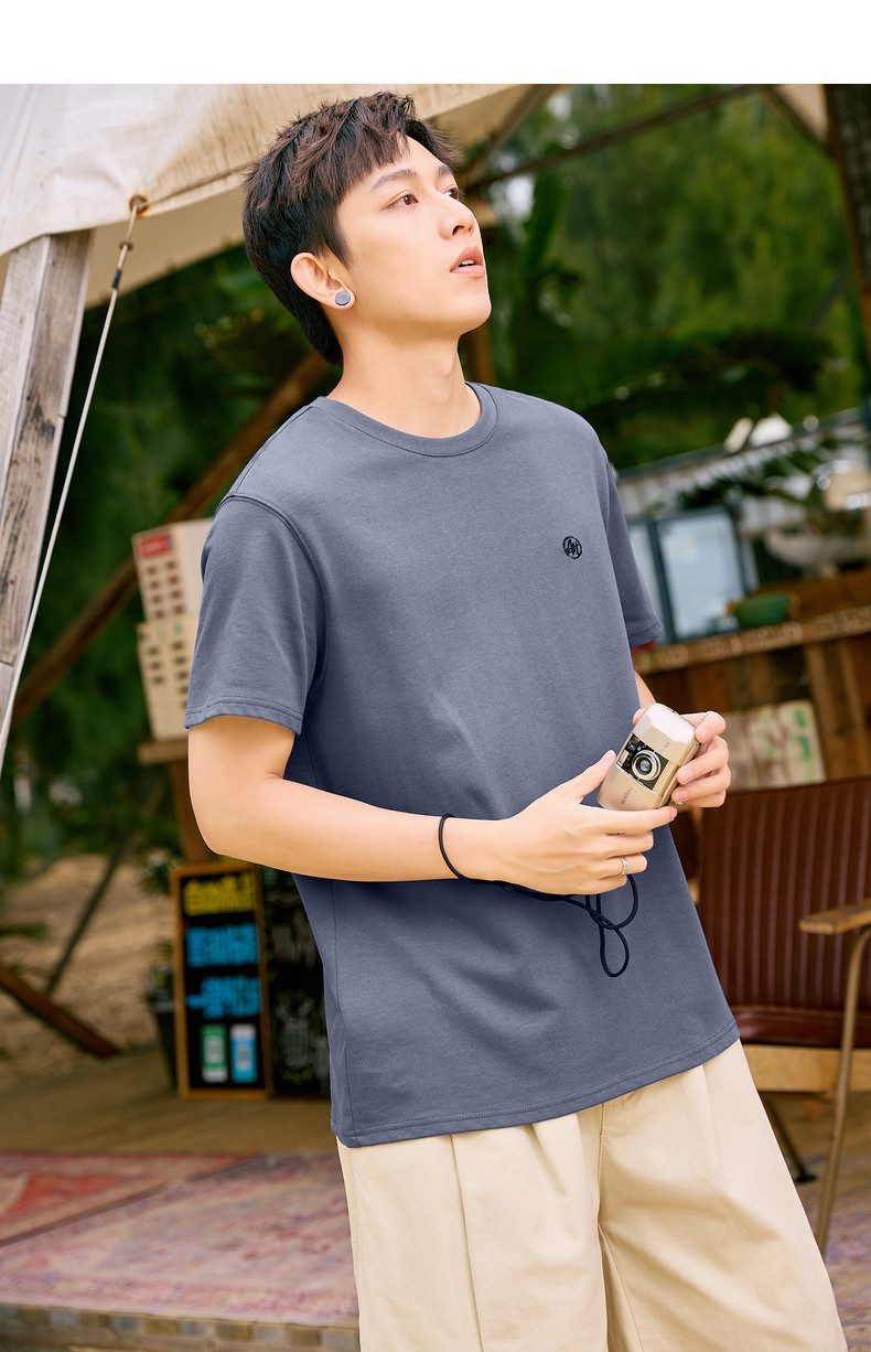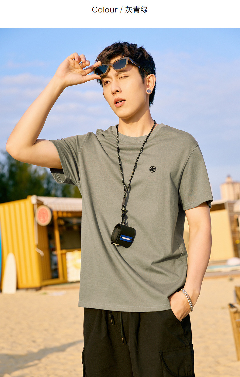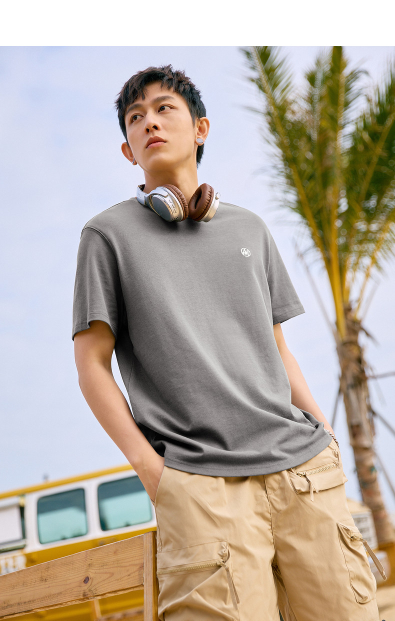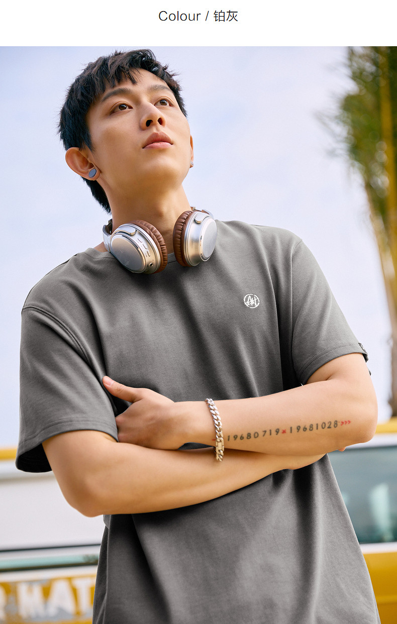 唐狮2024夏新款个性小标纯棉短袖t恤男潮休闲宽松圆领打底衫衣服