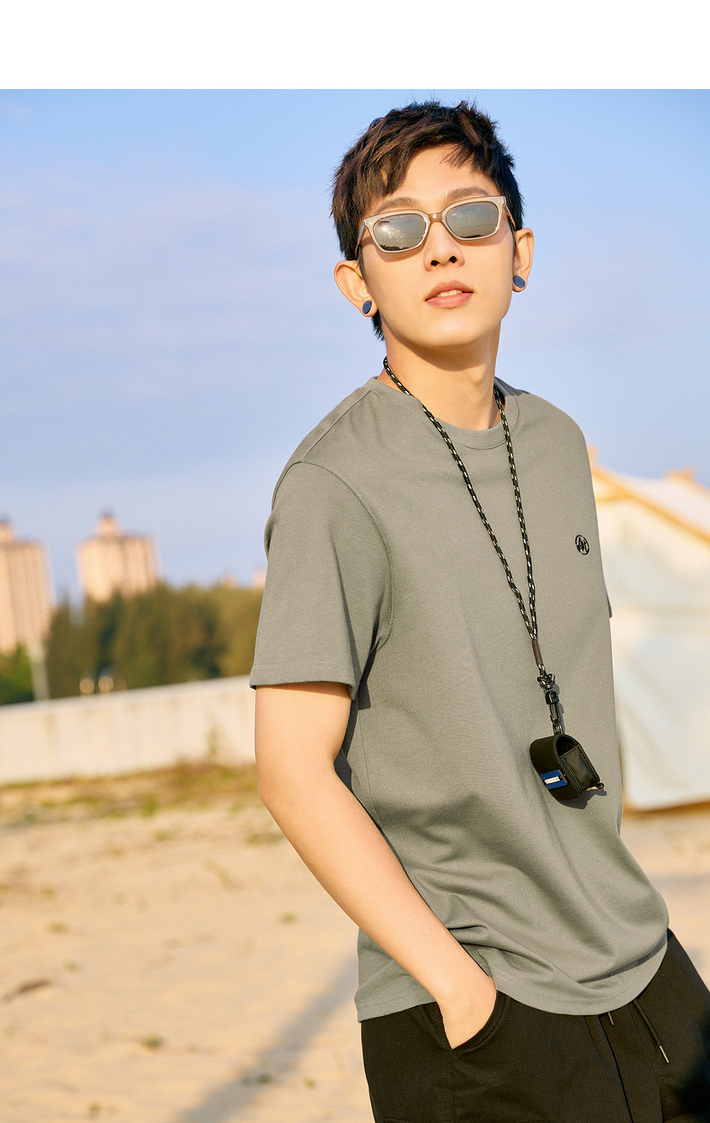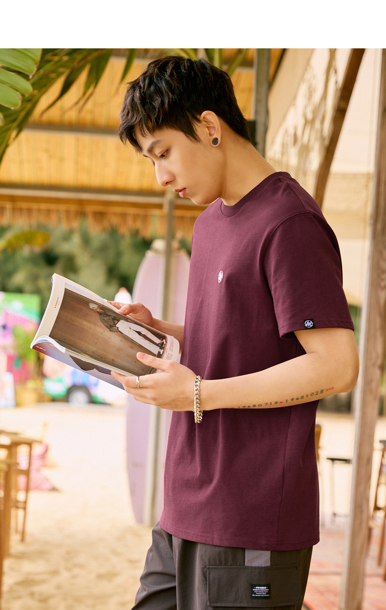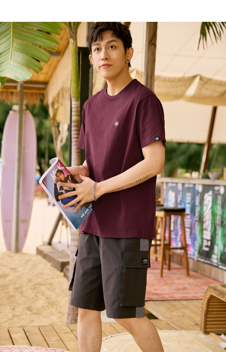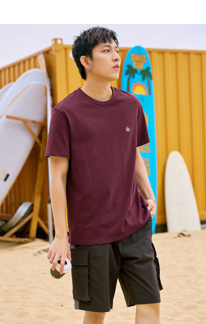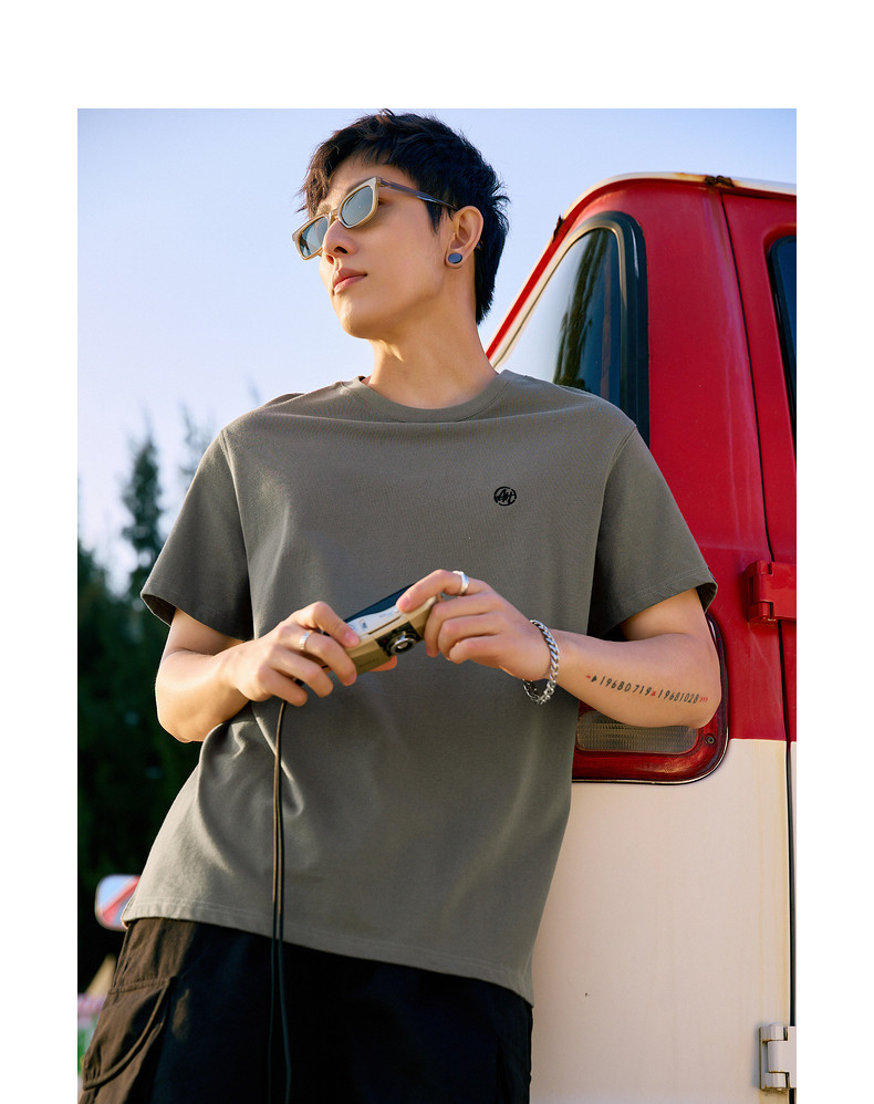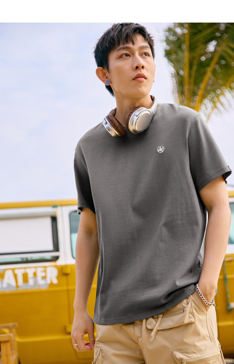 唐狮2024夏新款个性小标纯棉短袖t恤男潮休闲宽松圆领打底衫衣服