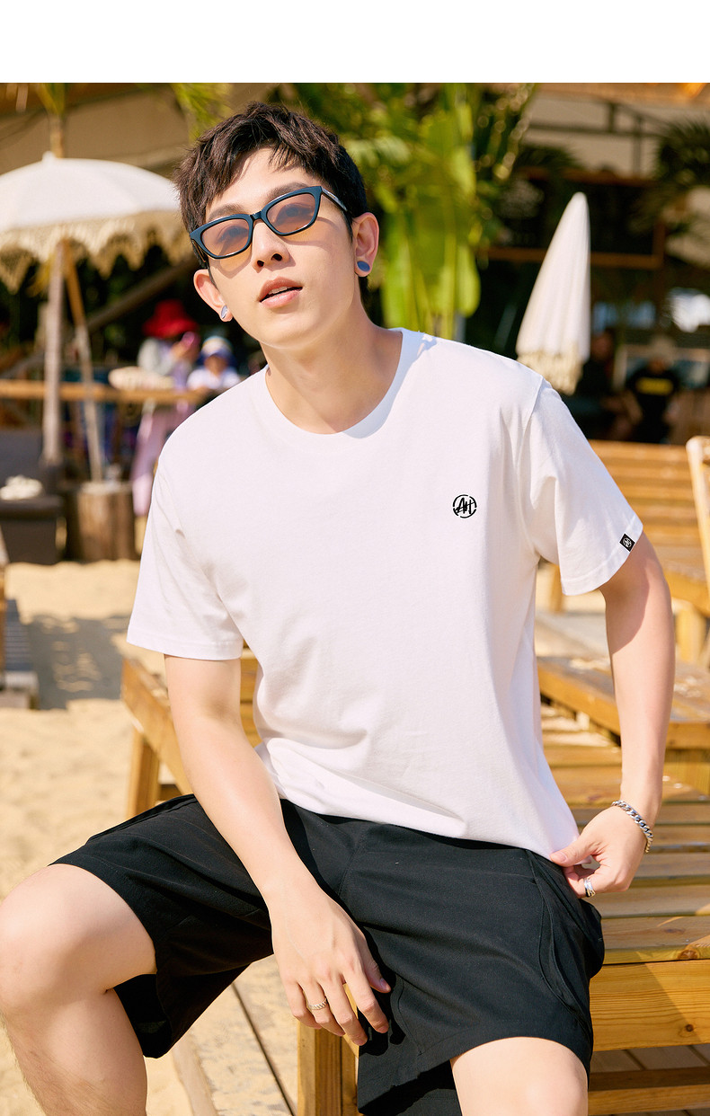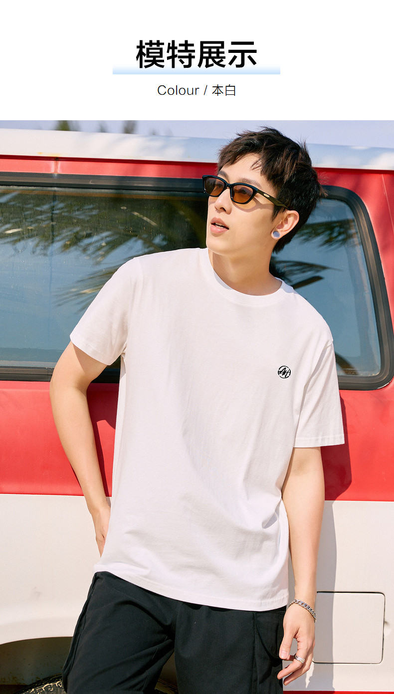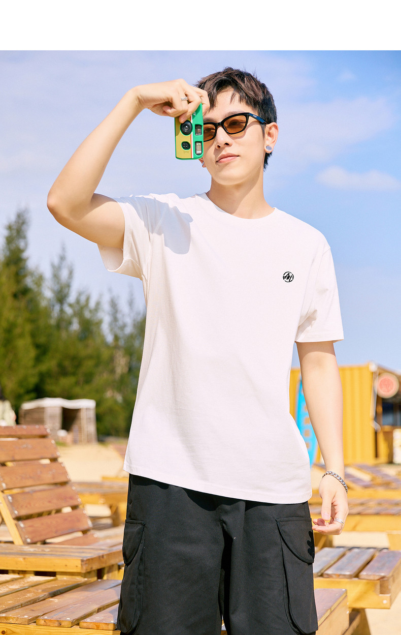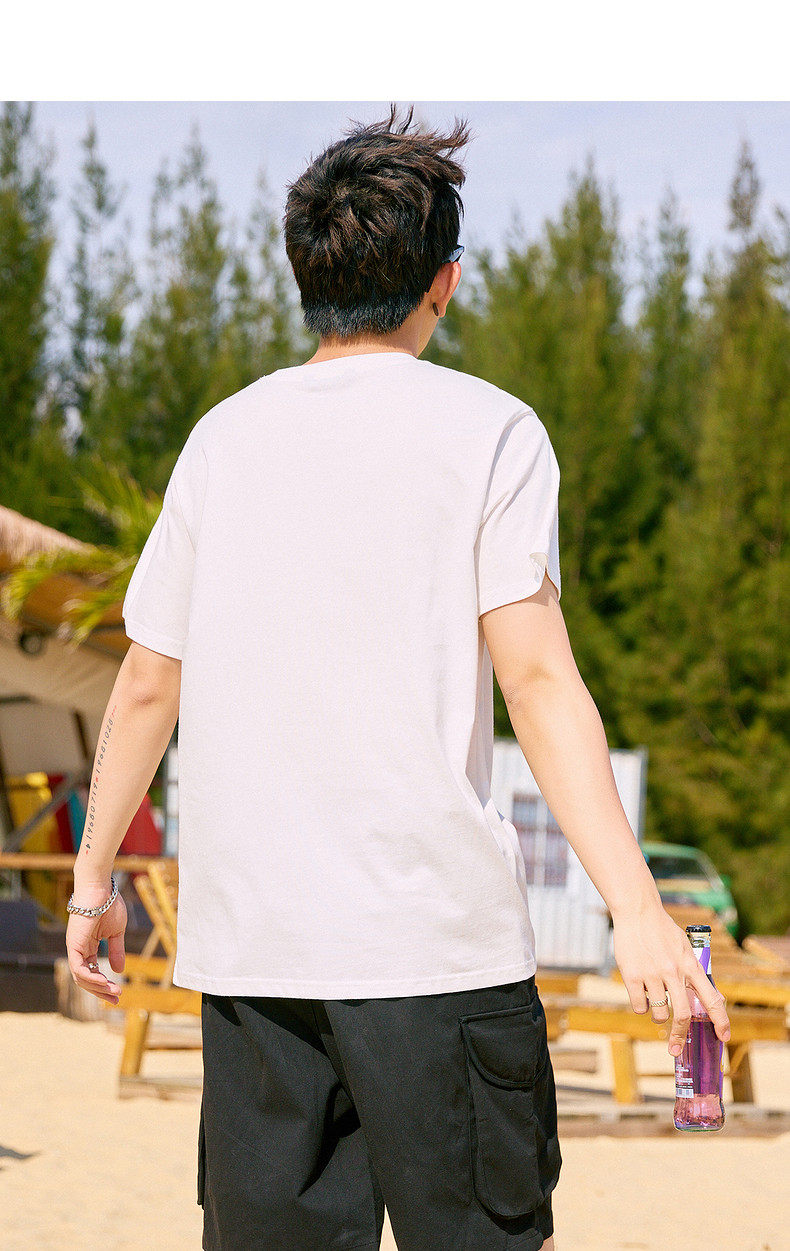 唐狮2024年夏季新款纯棉短袖t恤男士潮流宽松半袖白色圆领打底衫