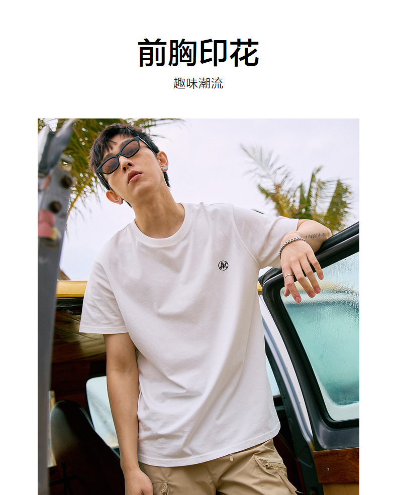 唐狮2024年春夏季新款纯棉短袖t恤男潮印花白色半袖休闲宽松体恤