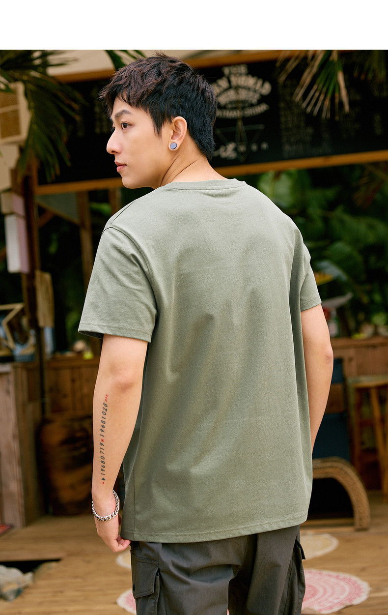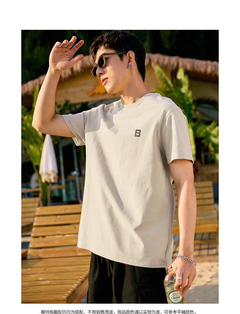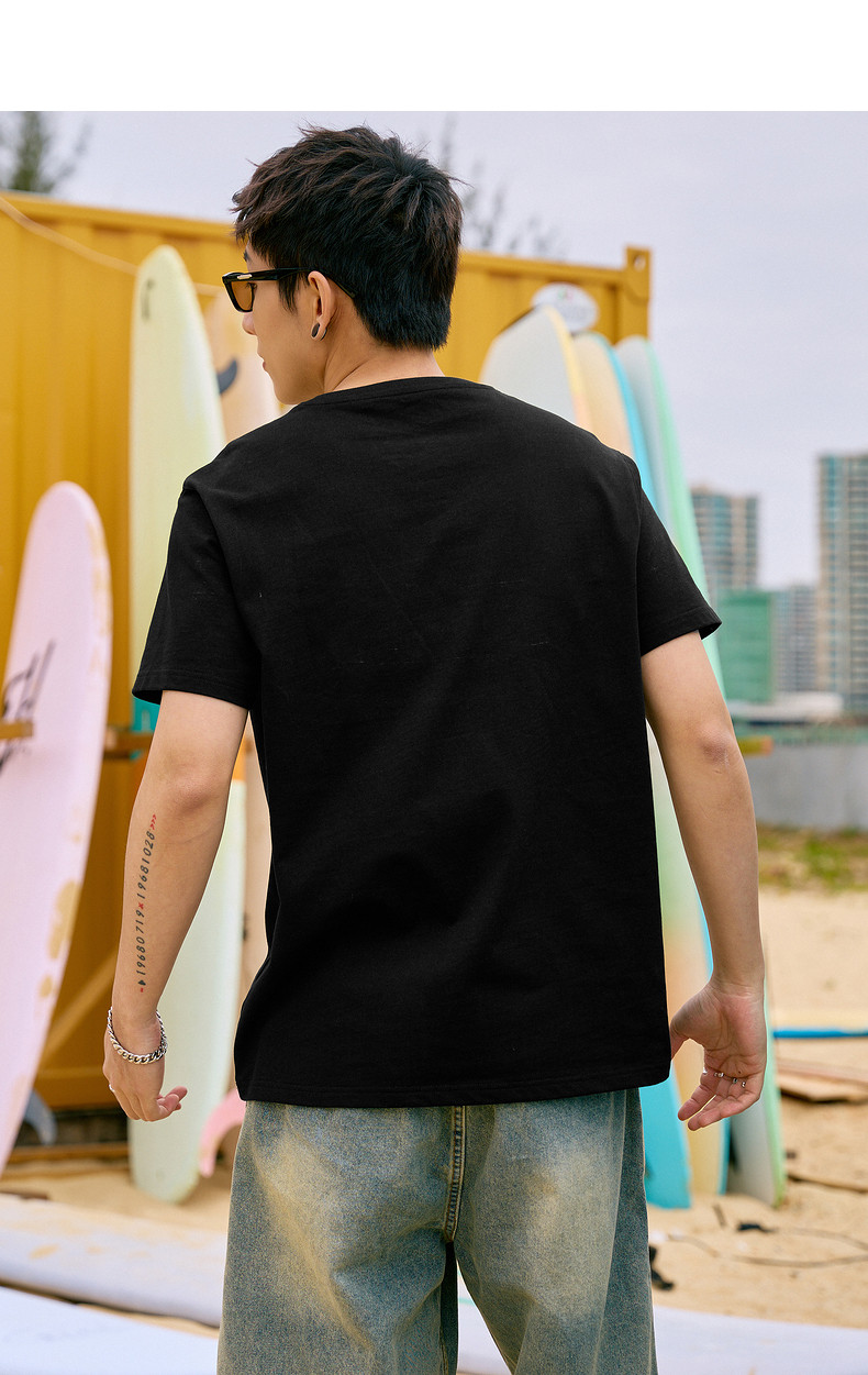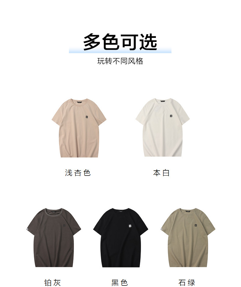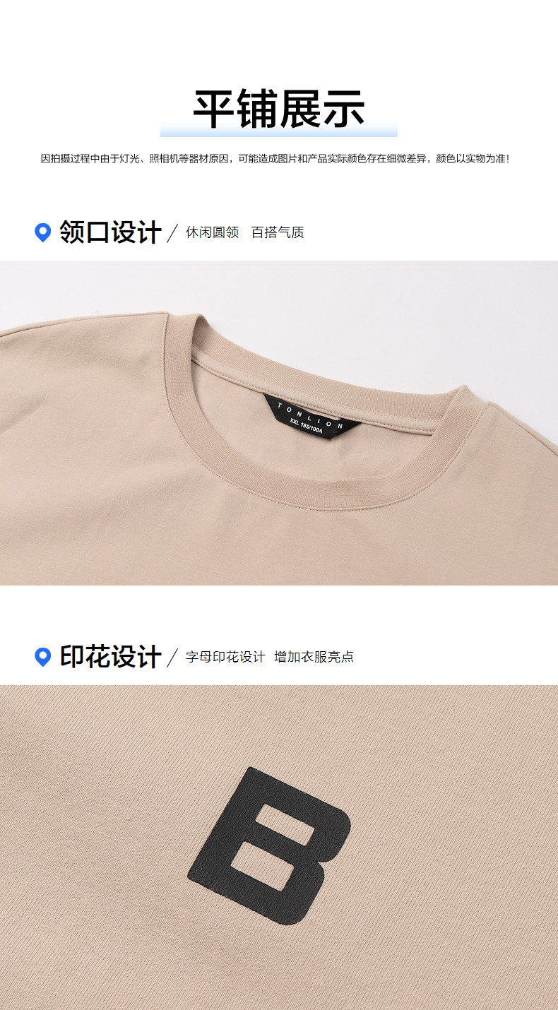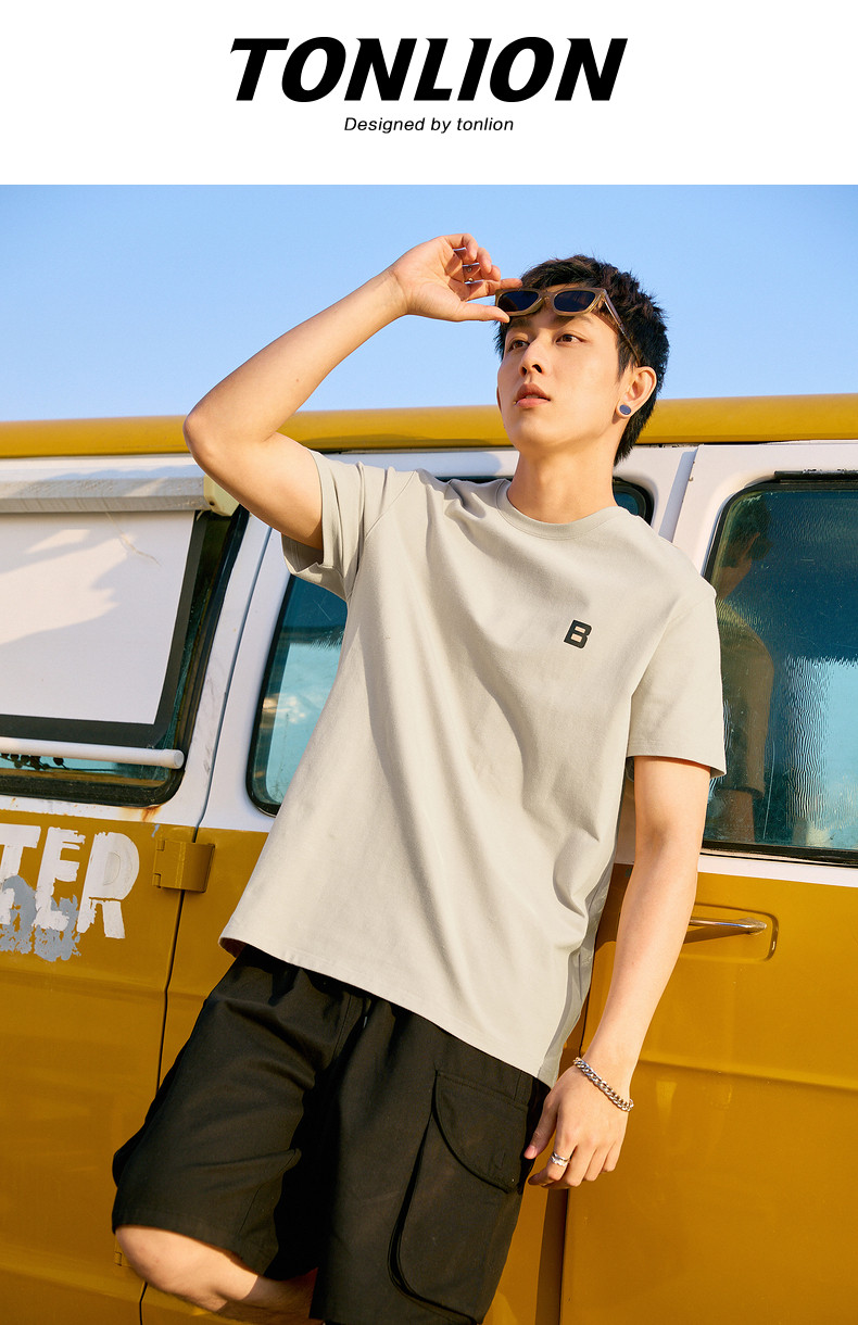 唐狮2024夏新款个性小标纯棉短袖t恤男潮休闲宽松圆领打底衫衣服