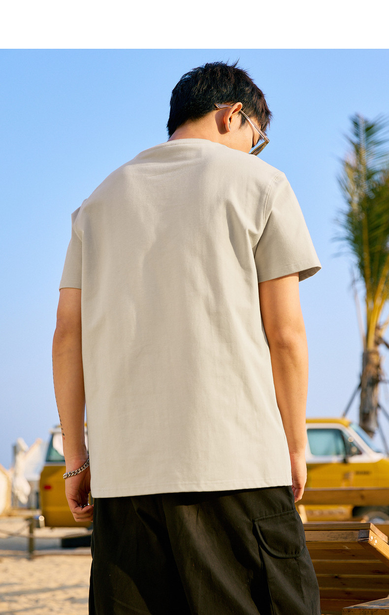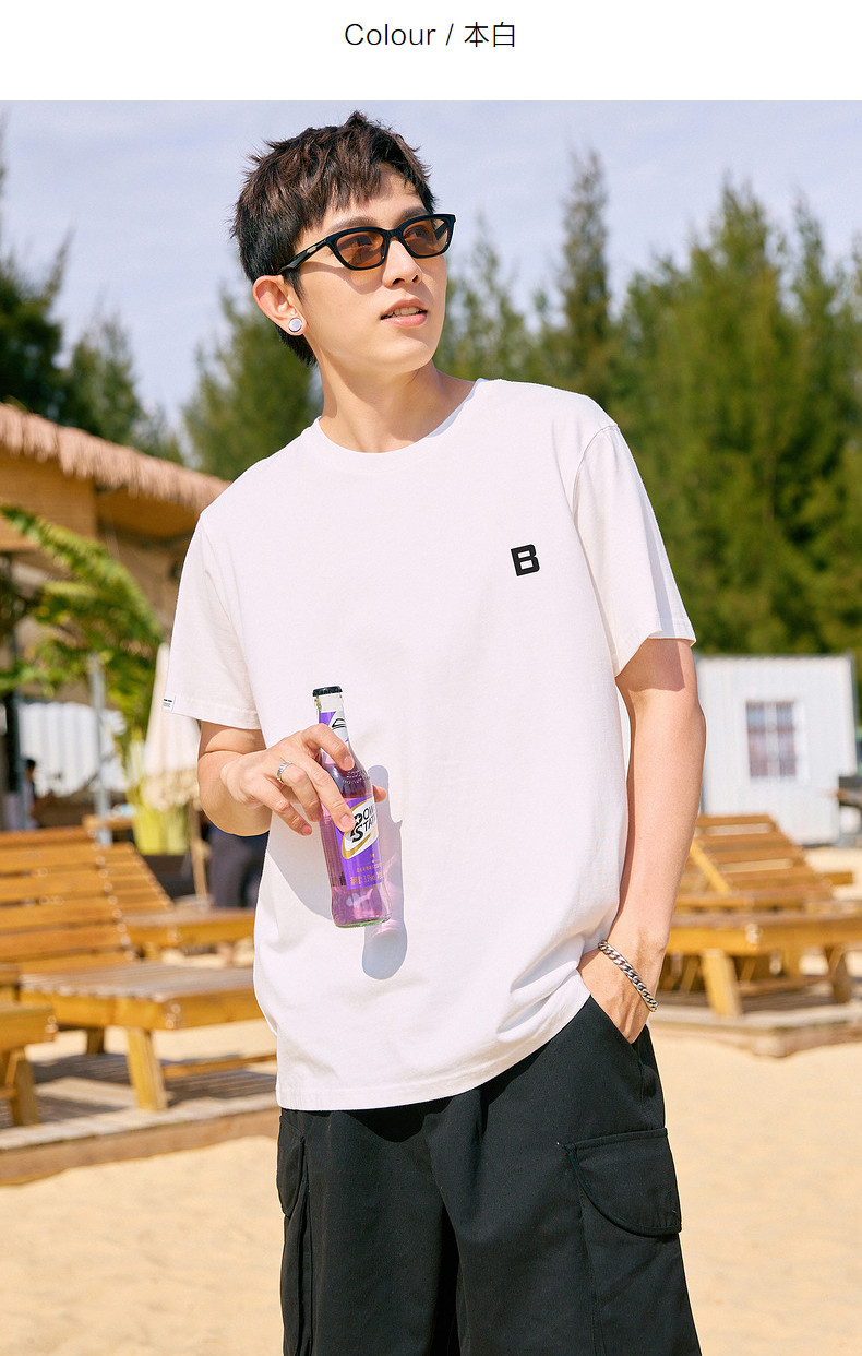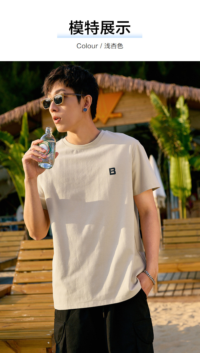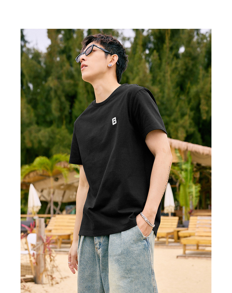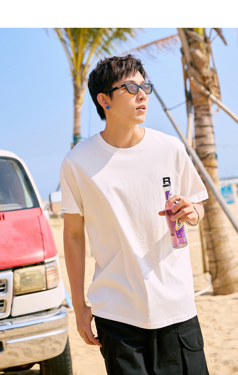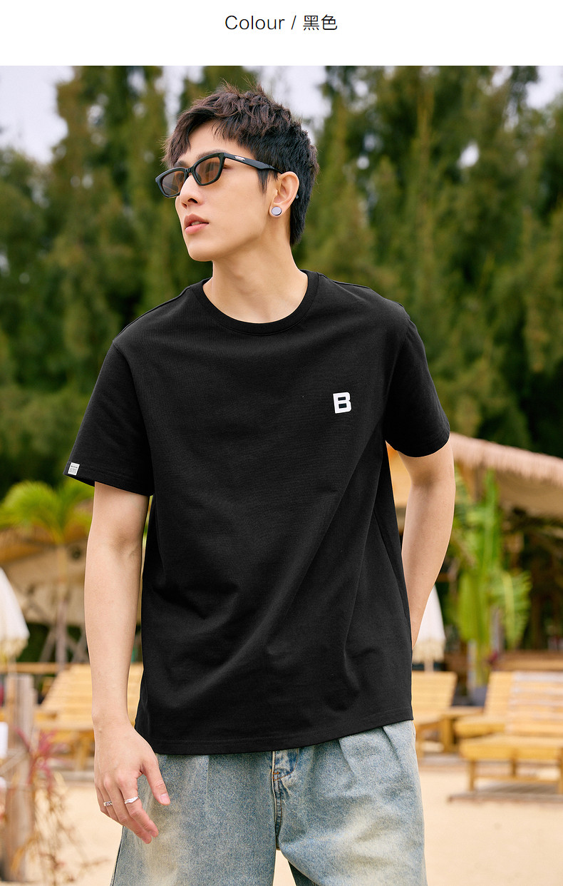 唐狮2024夏新款个性小标纯棉短袖t恤男潮休闲宽松圆领打底衫衣服