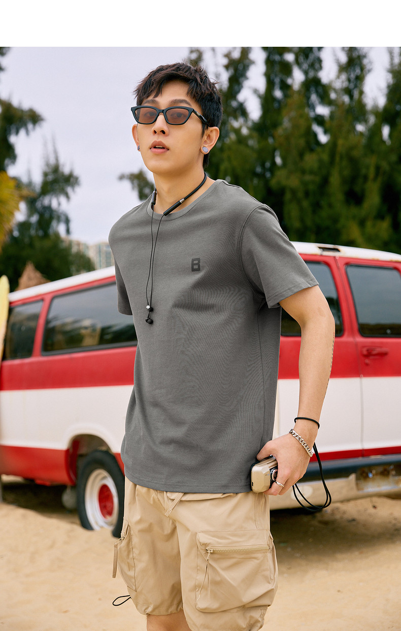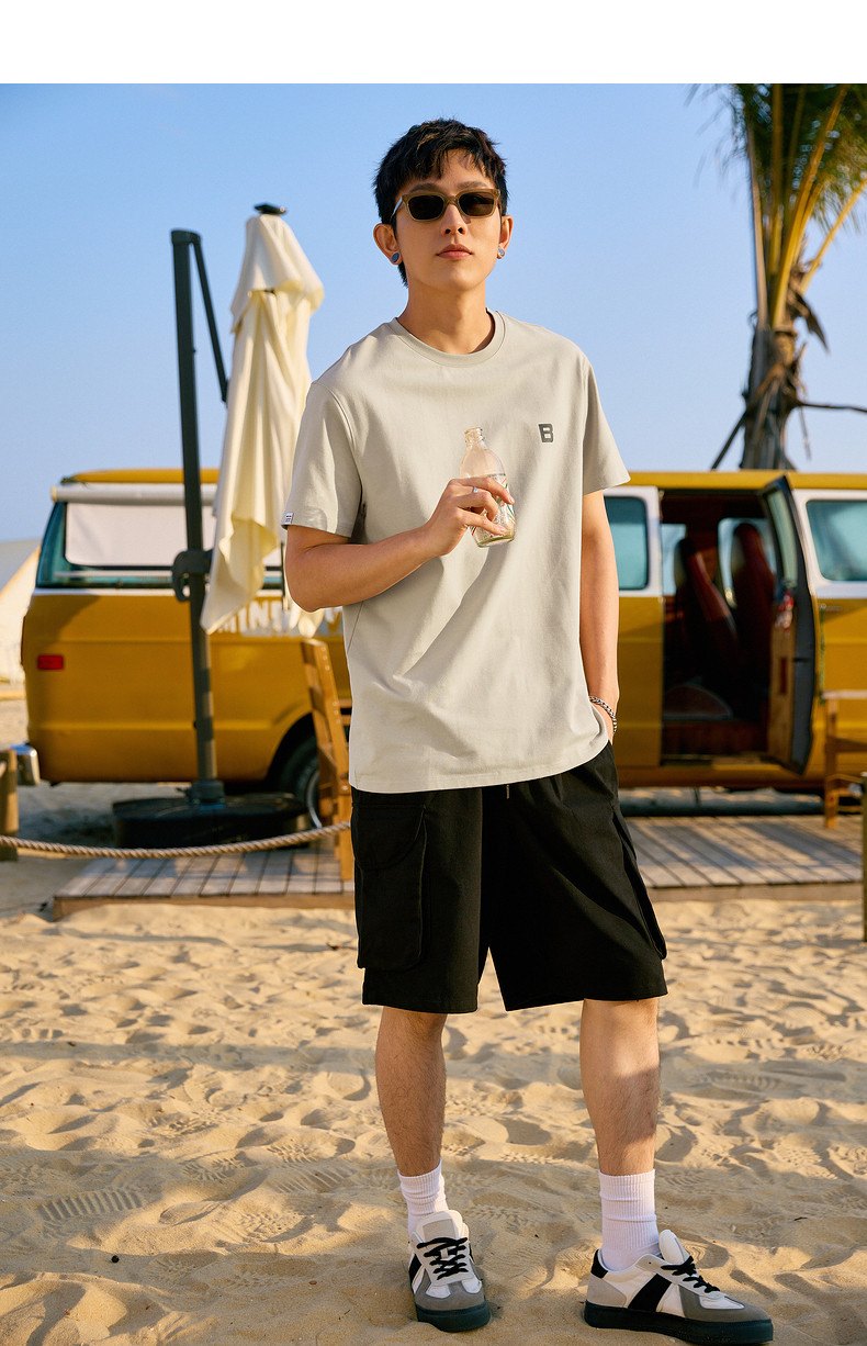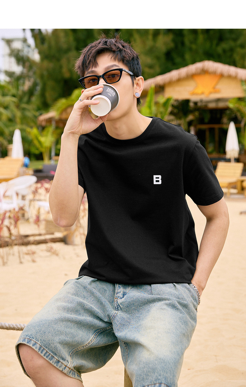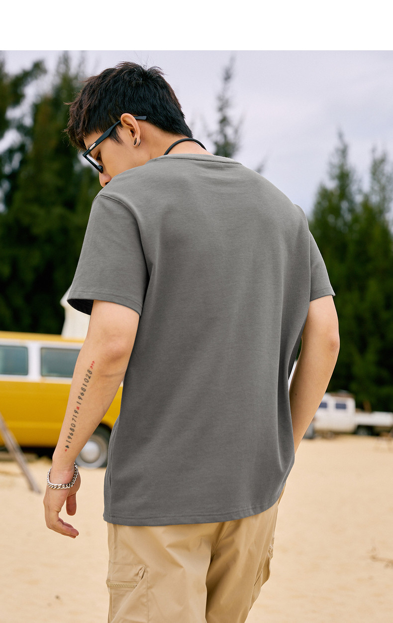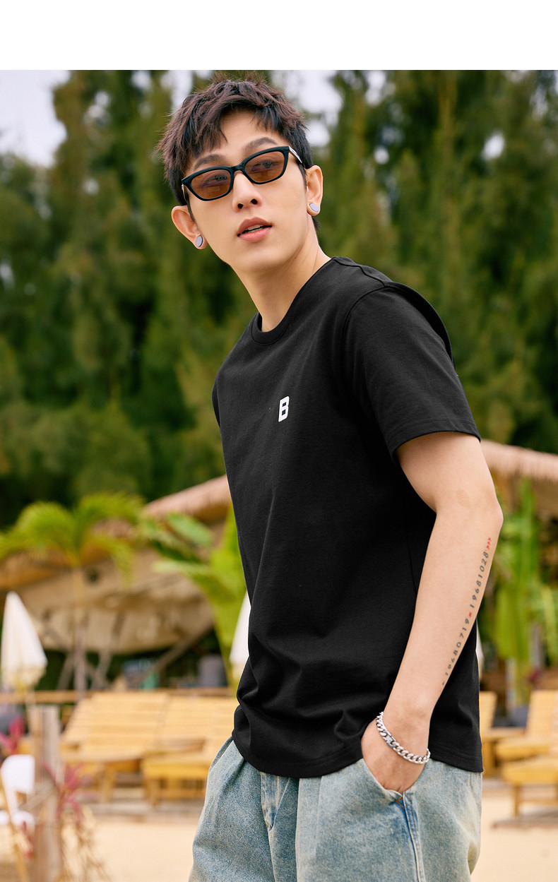唐狮2024夏新款个性小标纯棉短袖t恤男潮休闲宽松圆领打底衫衣服