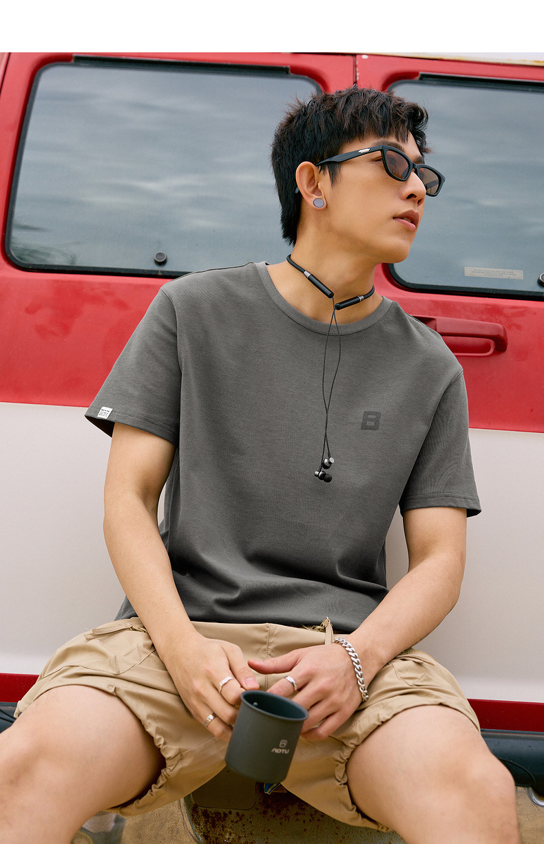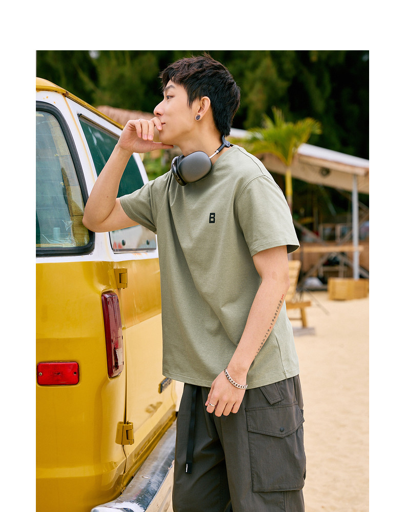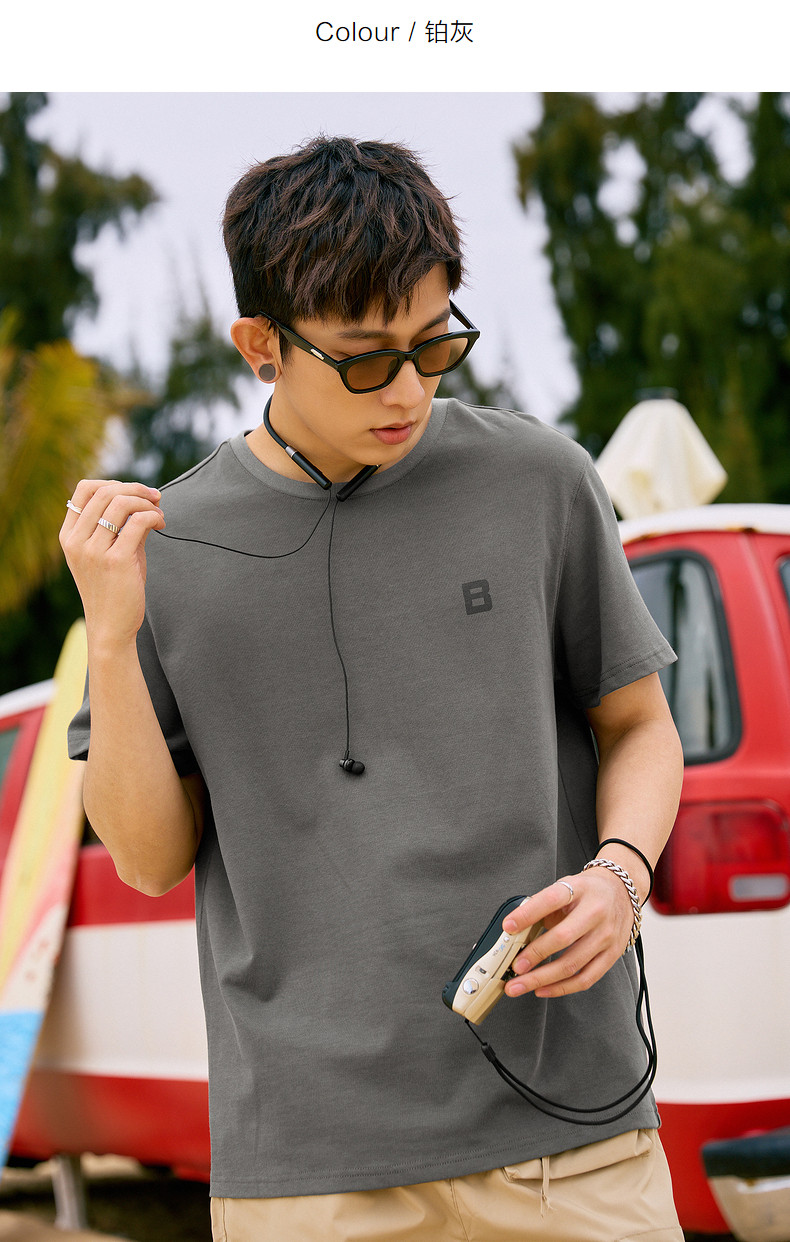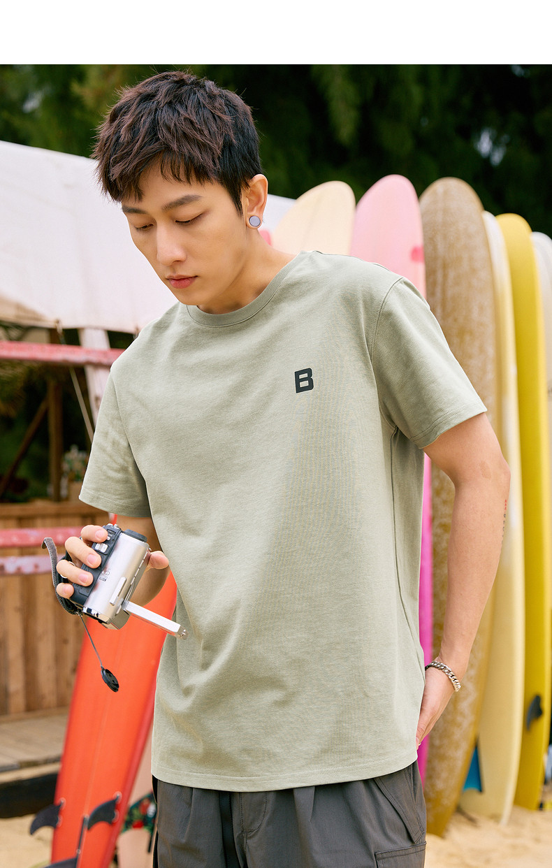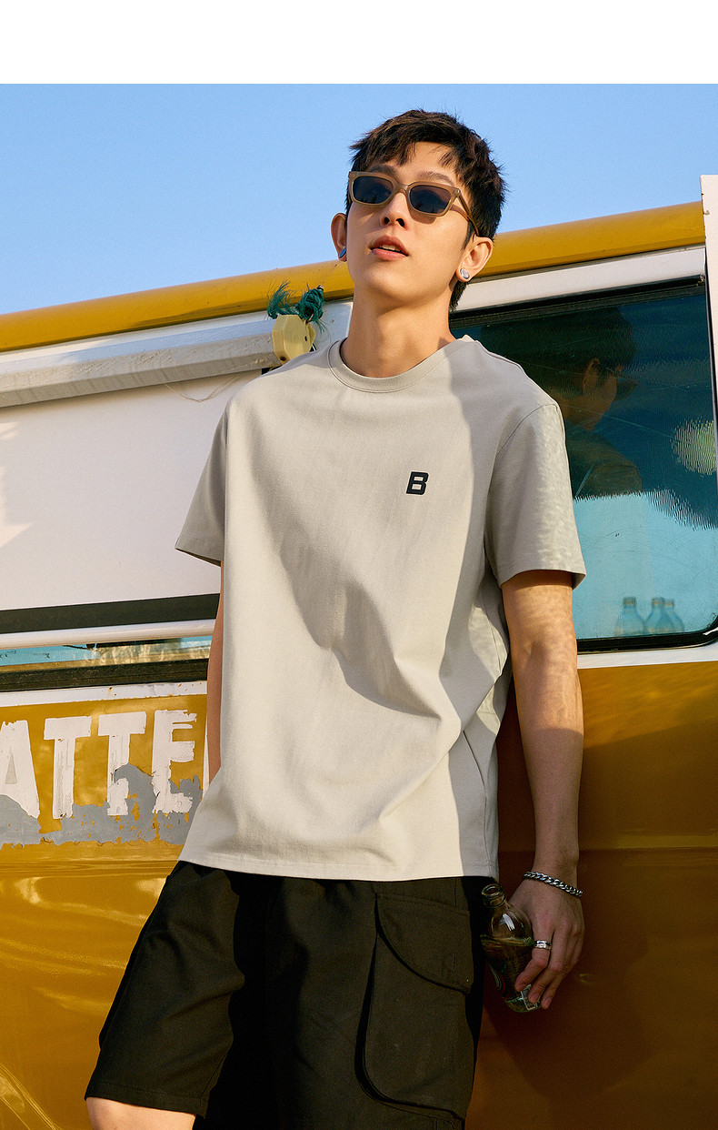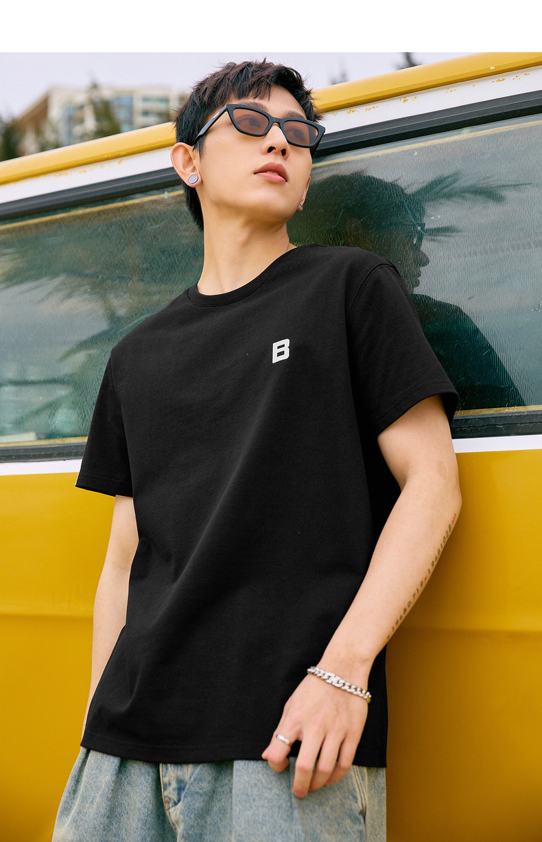 唐狮2024夏新款个性小标纯棉短袖t恤男潮休闲宽松圆领打底衫衣服