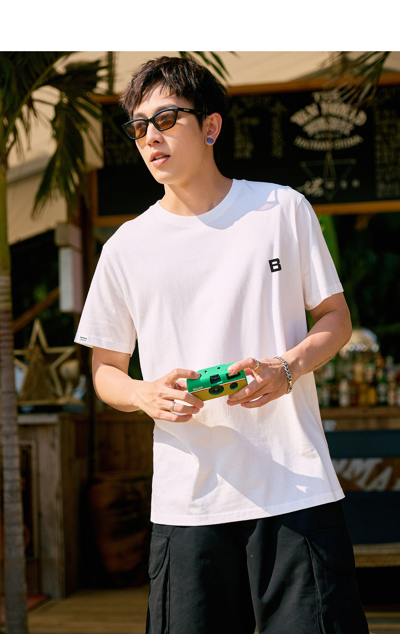 唐狮2024年夏季新款纯棉短袖t恤男士潮流宽松半袖白色圆领打底衫