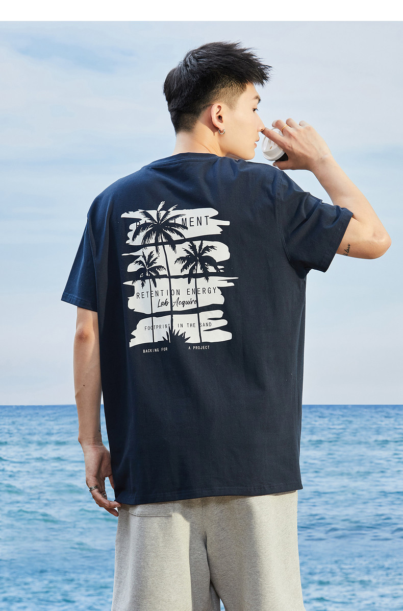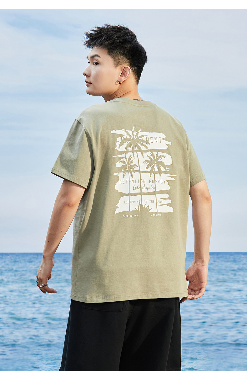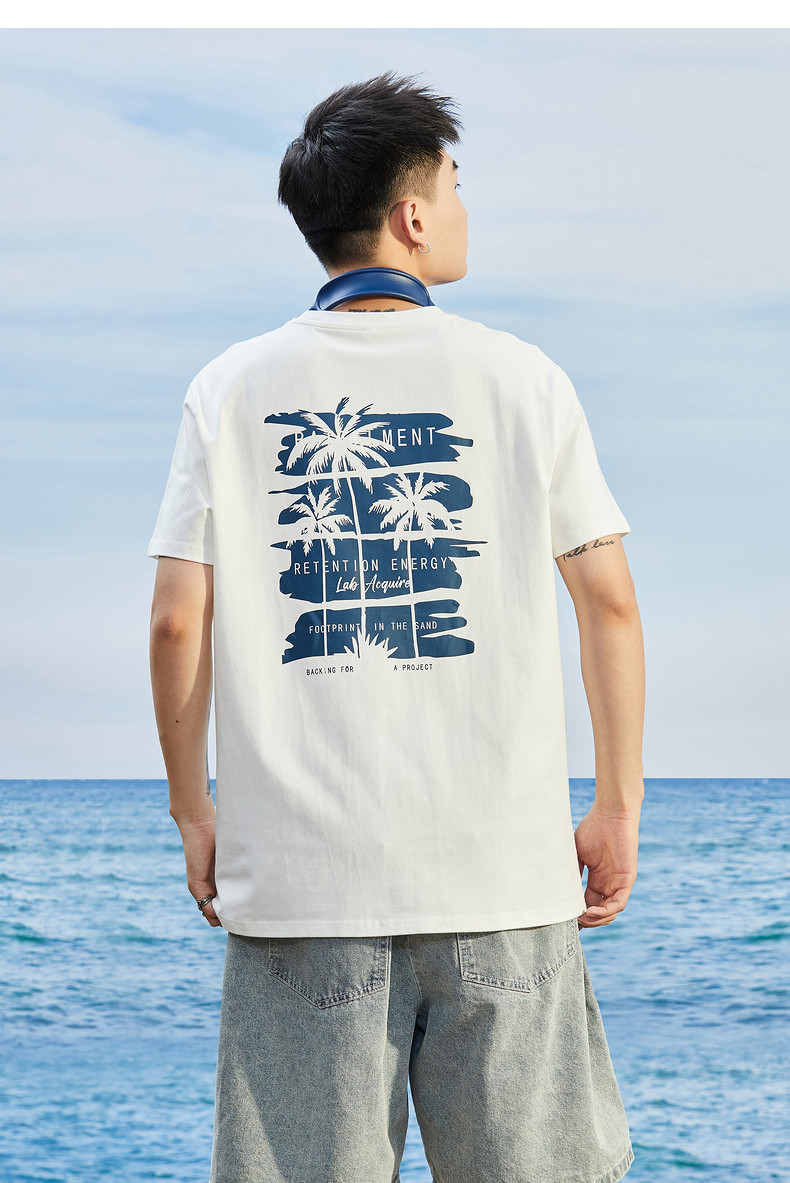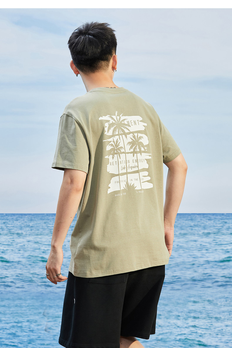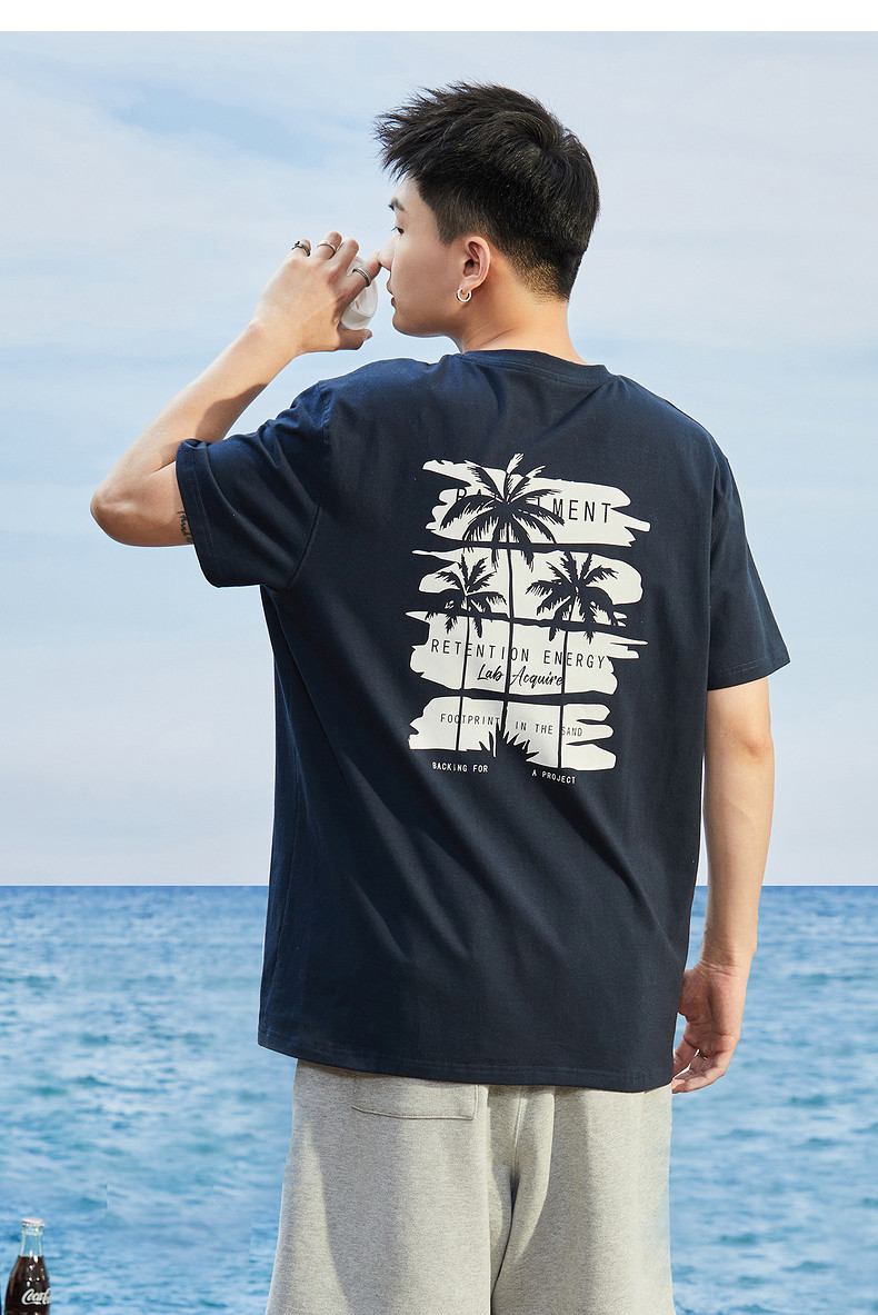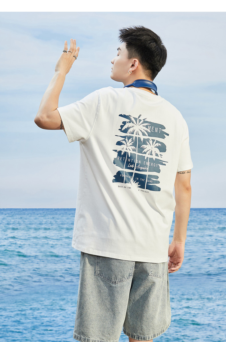 唐狮2024年春夏新款纯棉短袖t恤男后背潮流图案宽松圆领半袖上衣