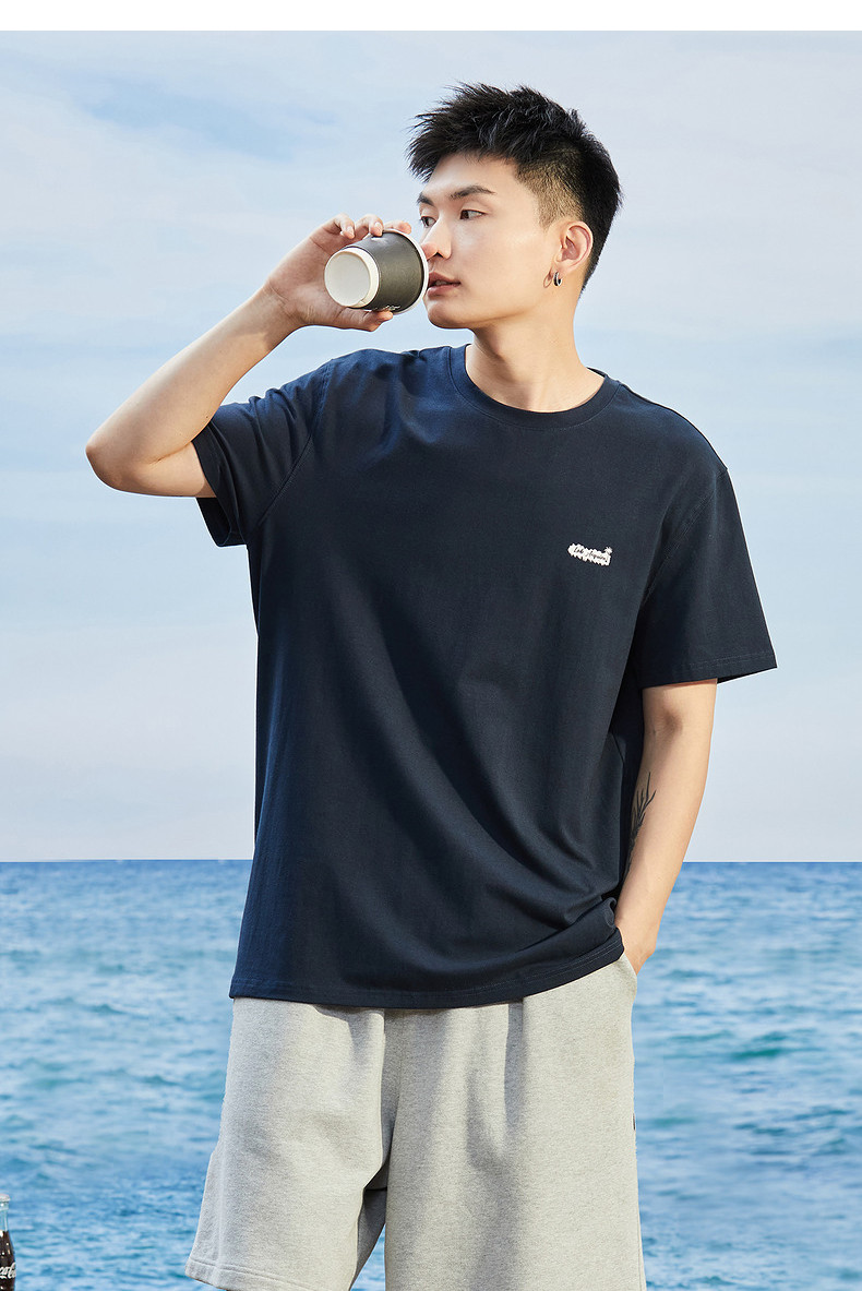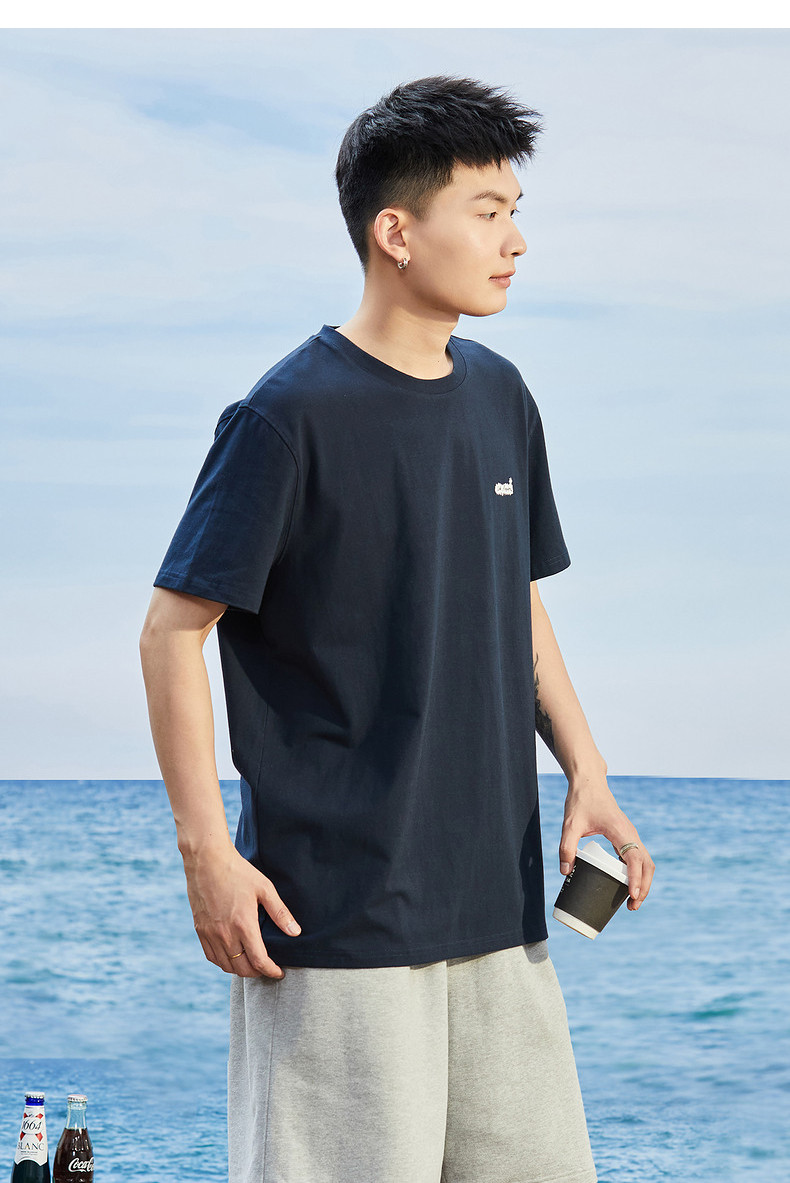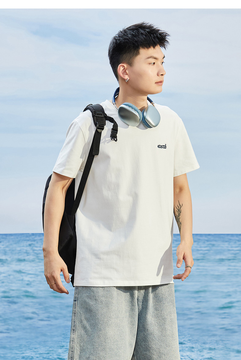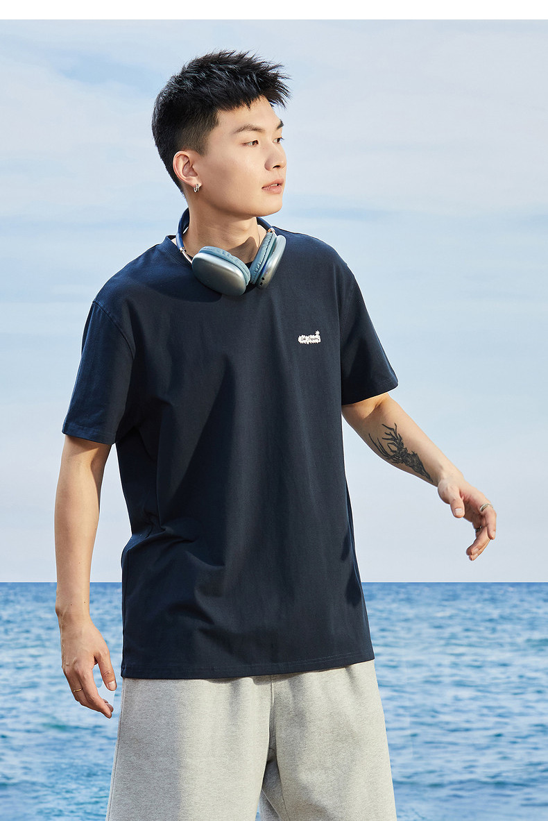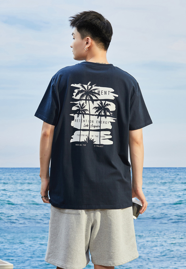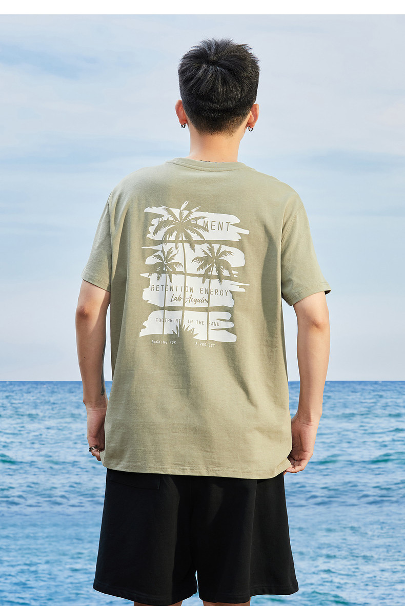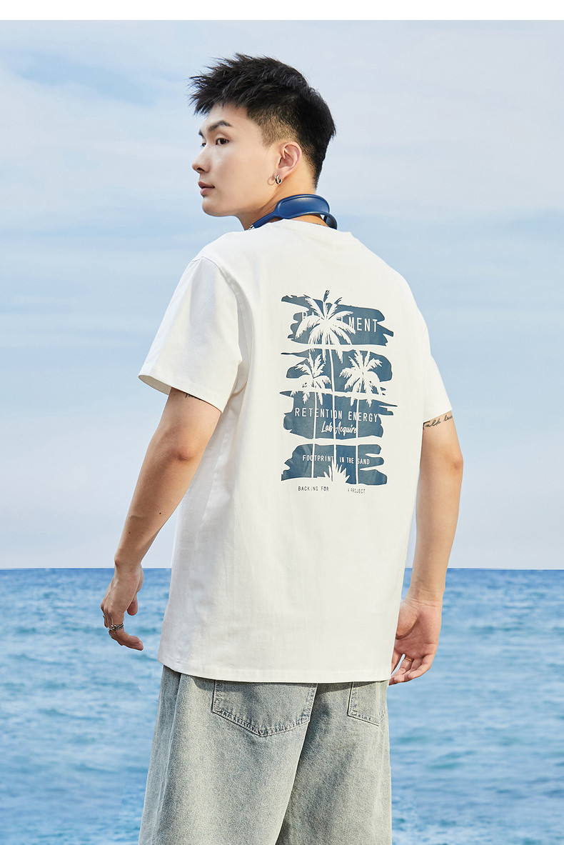 唐狮2024年春夏新款纯棉短袖t恤男后背潮流图案宽松圆领半袖上衣