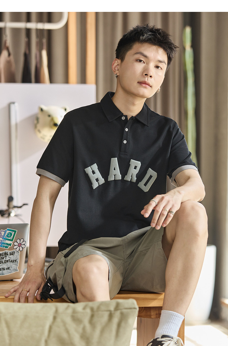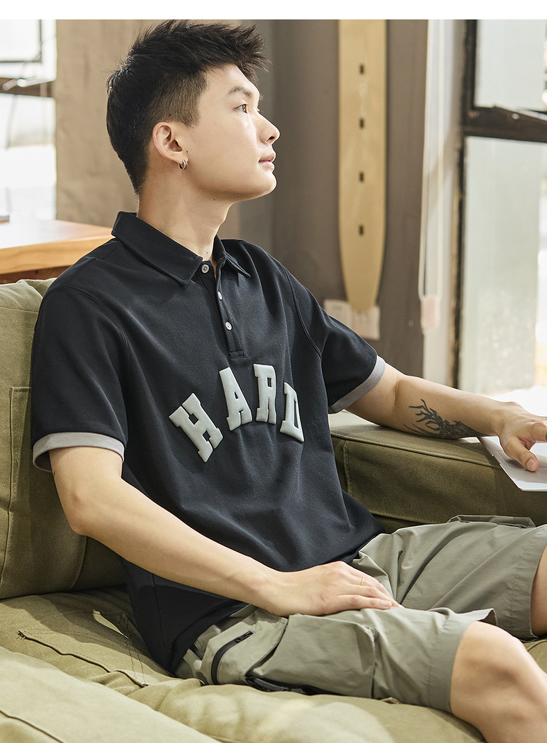 唐狮2024夏季新款短袖polo衫男士有带翻领t恤撞色美式休闲上衣潮