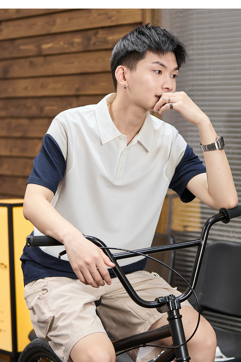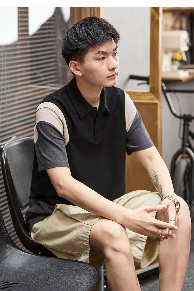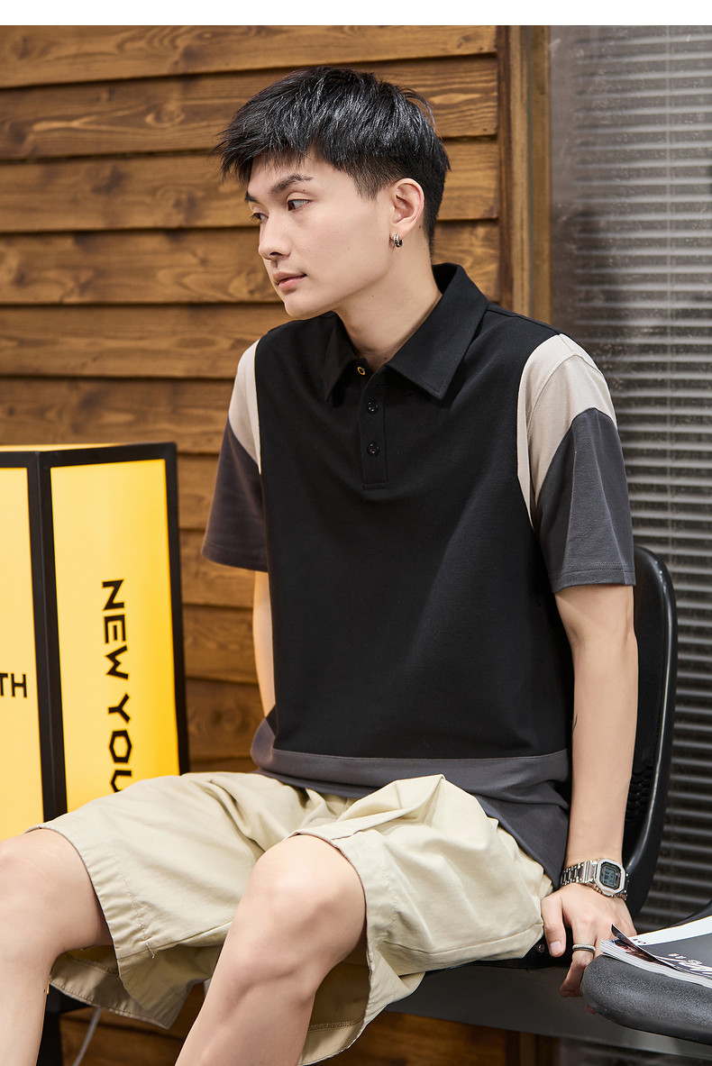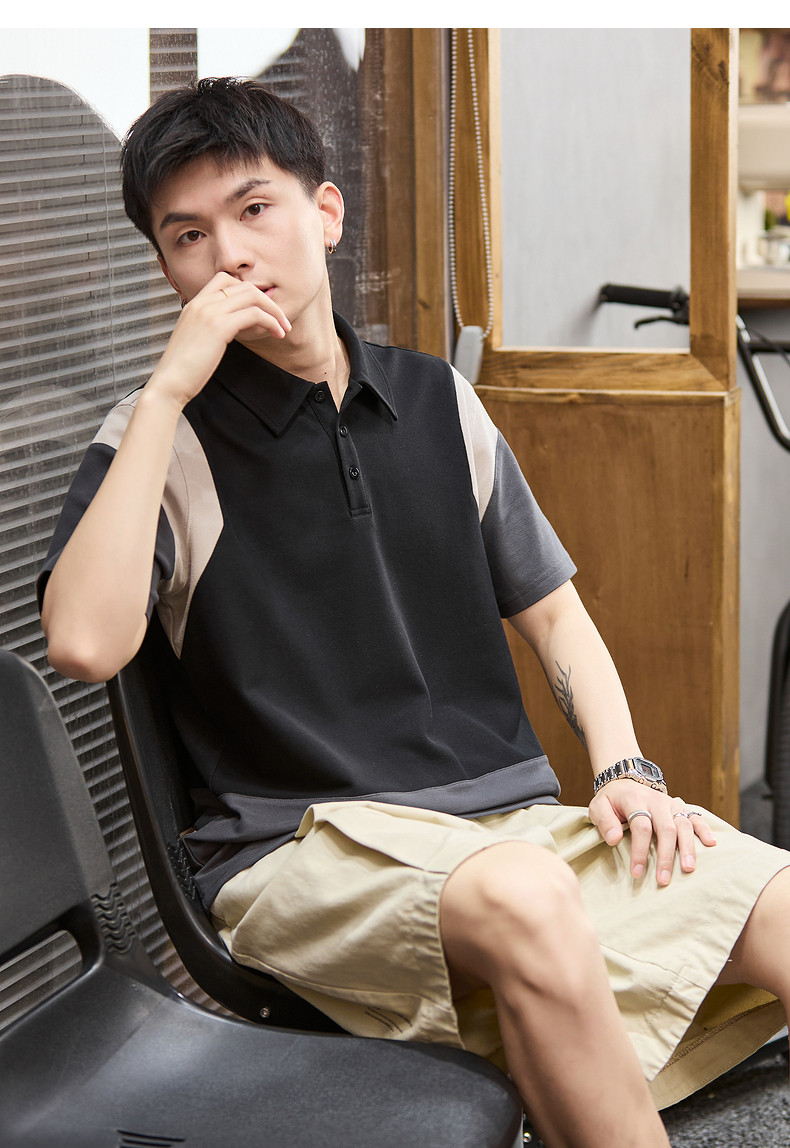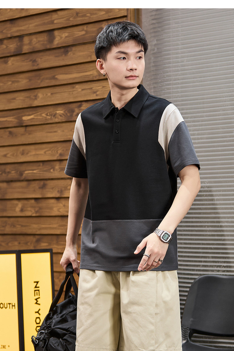 唐狮2024夏季新款polo衫男士短袖拼接宽松高级感翻领t恤男上衣潮
