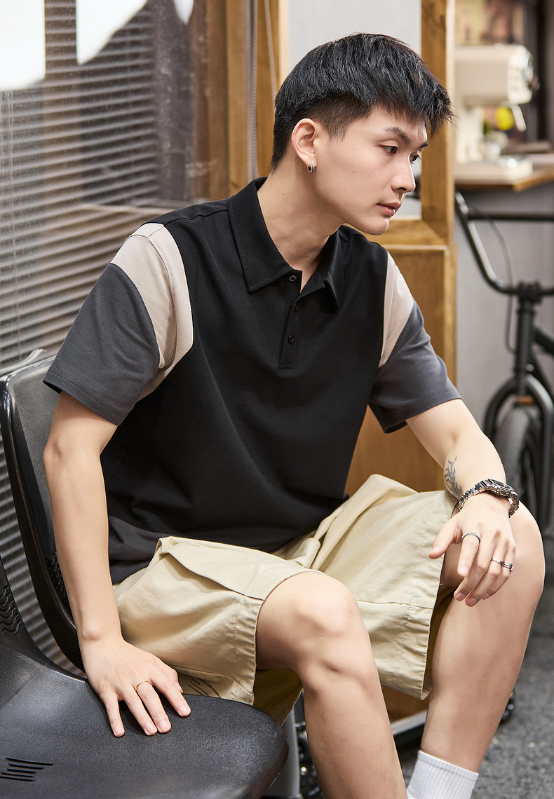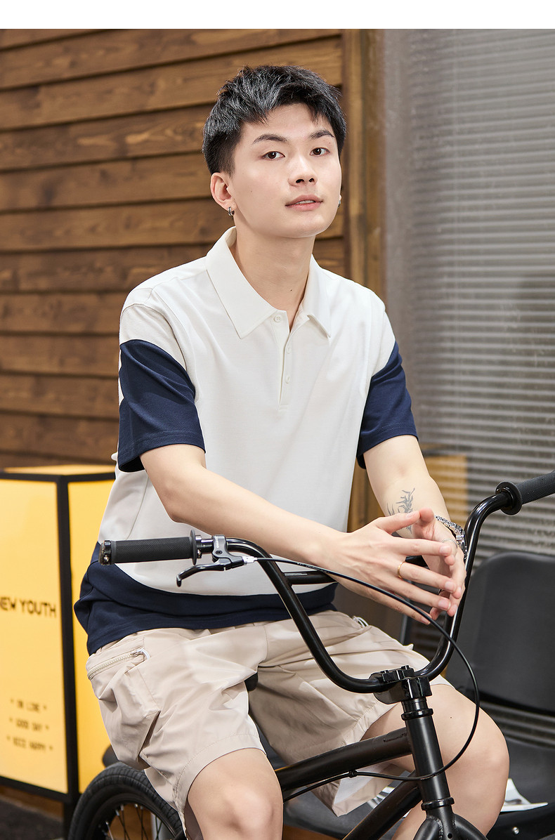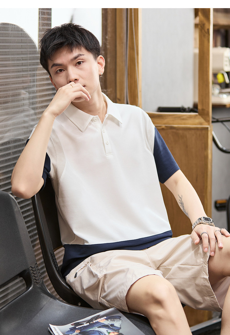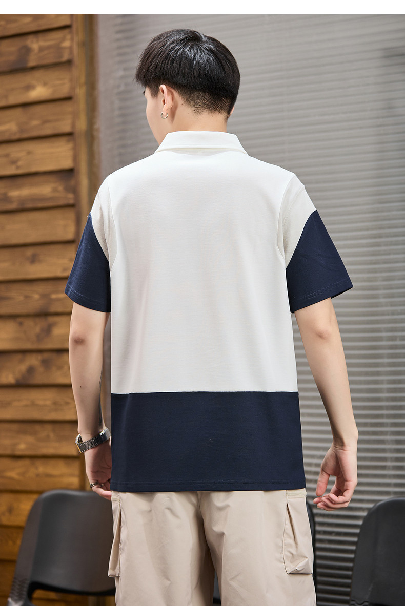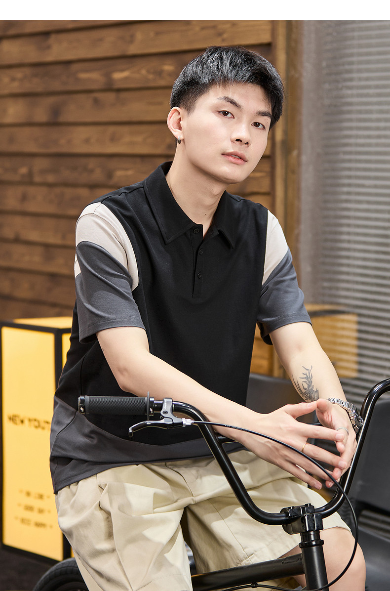 唐狮2024夏季新款polo衫男士短袖拼接宽松高级感翻领t恤男上衣潮