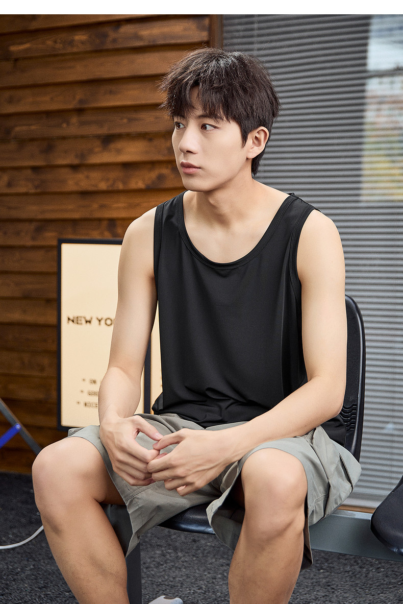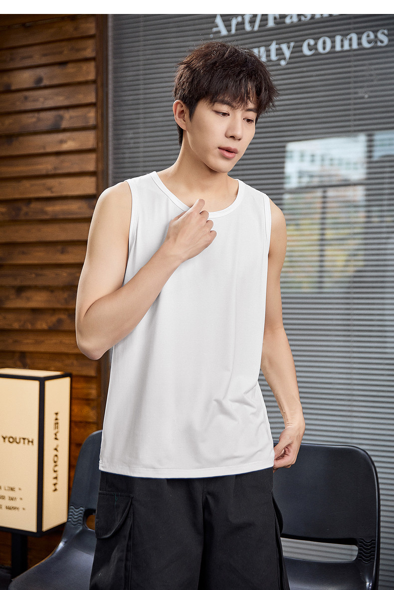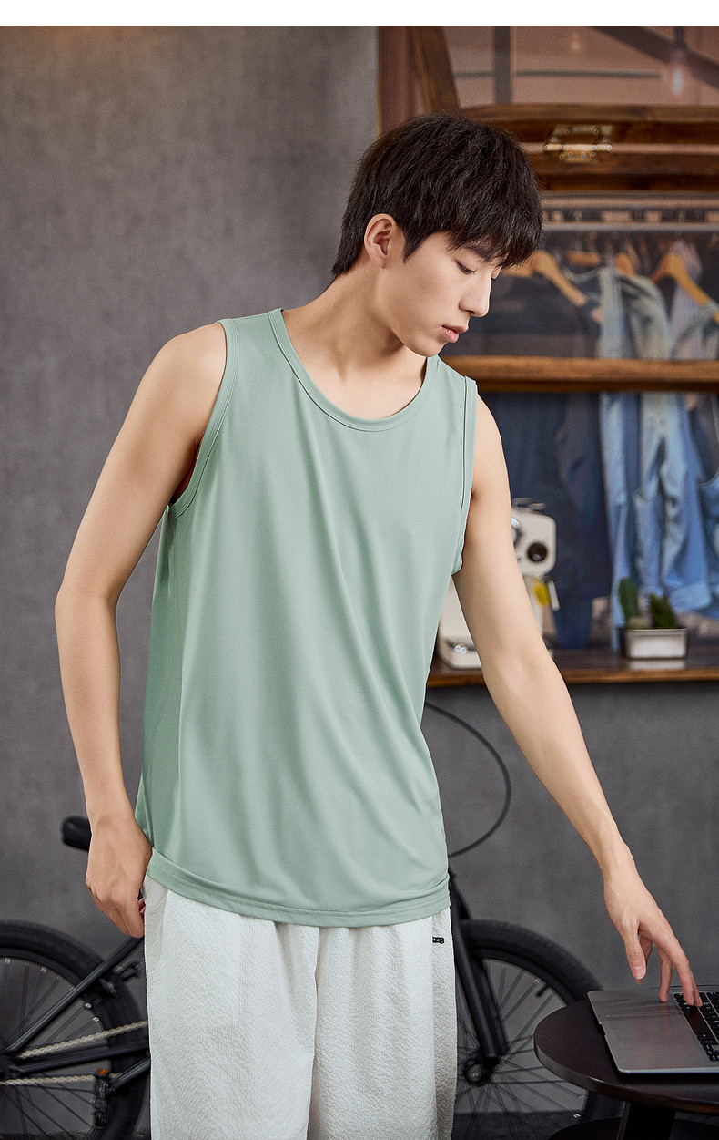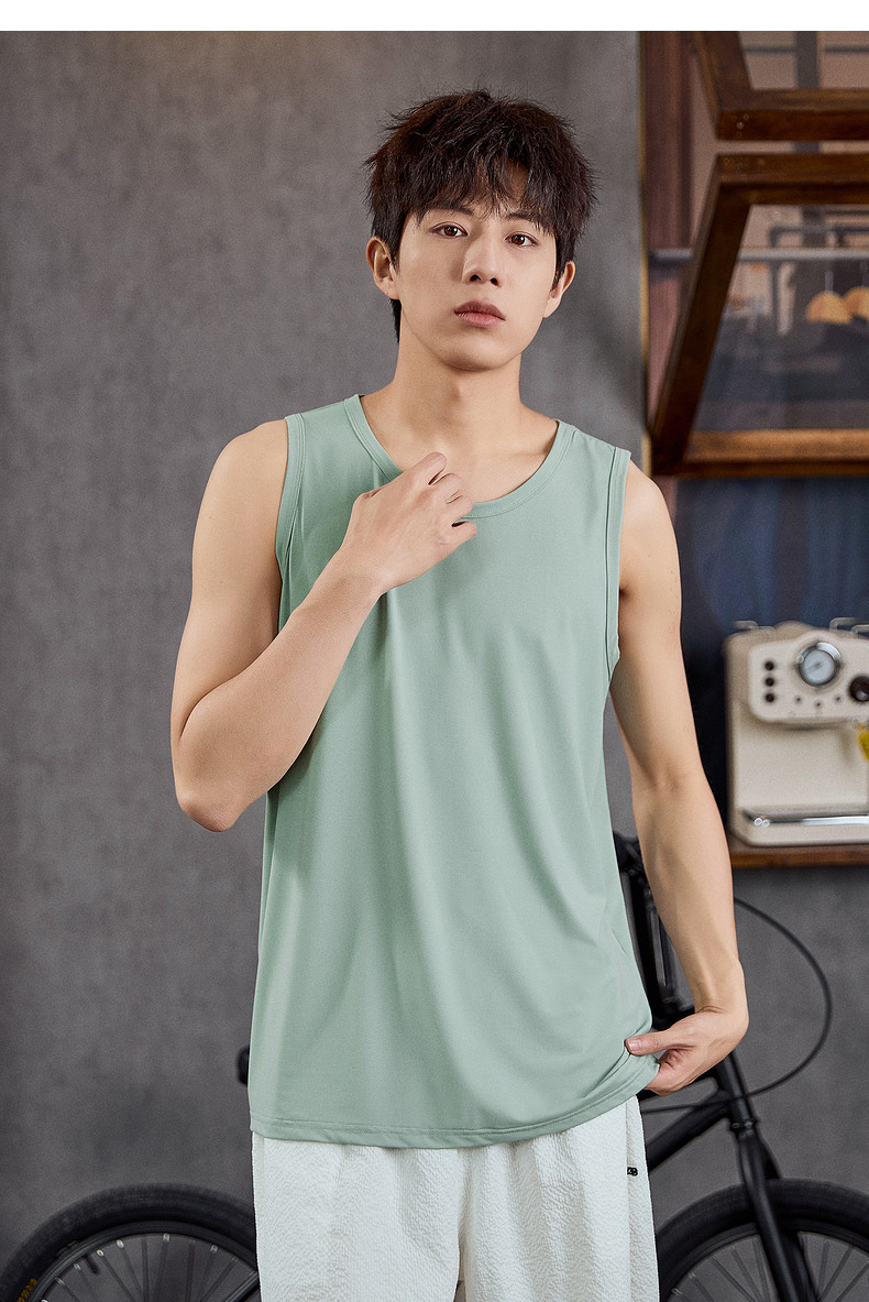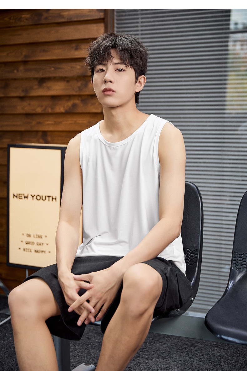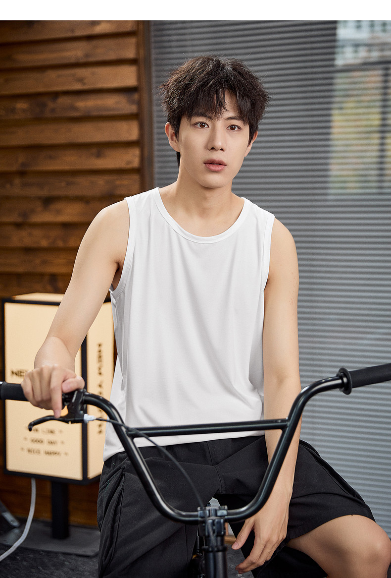 唐狮2024春夏新款男背心宽松坎肩无袖T恤运动汗衫透气网眼上衣潮