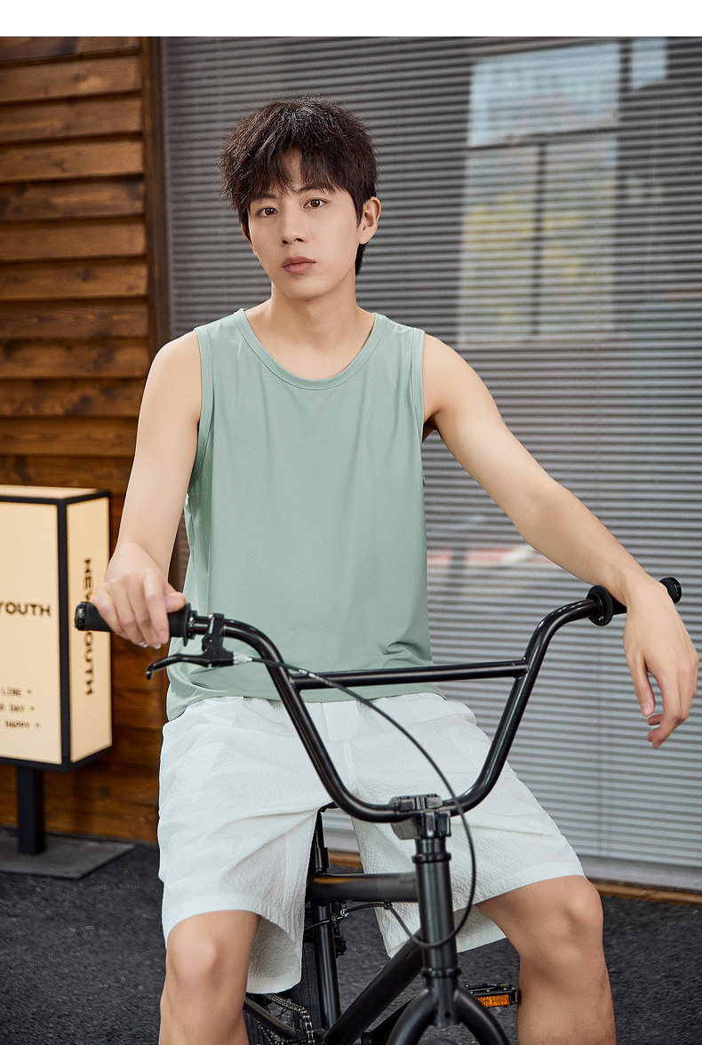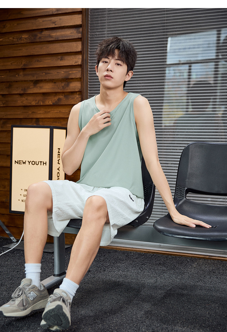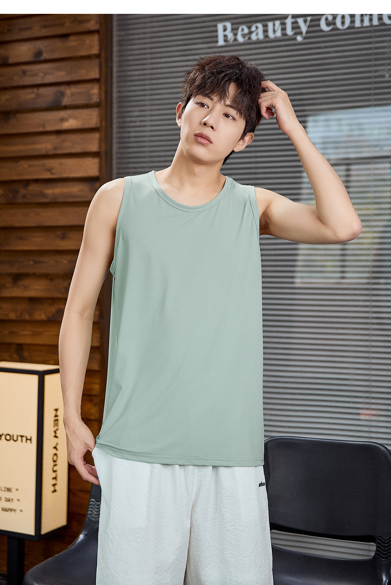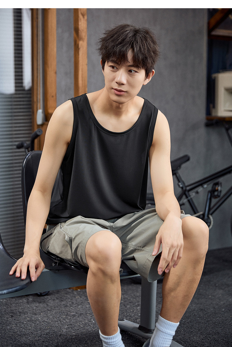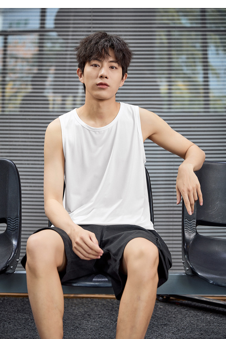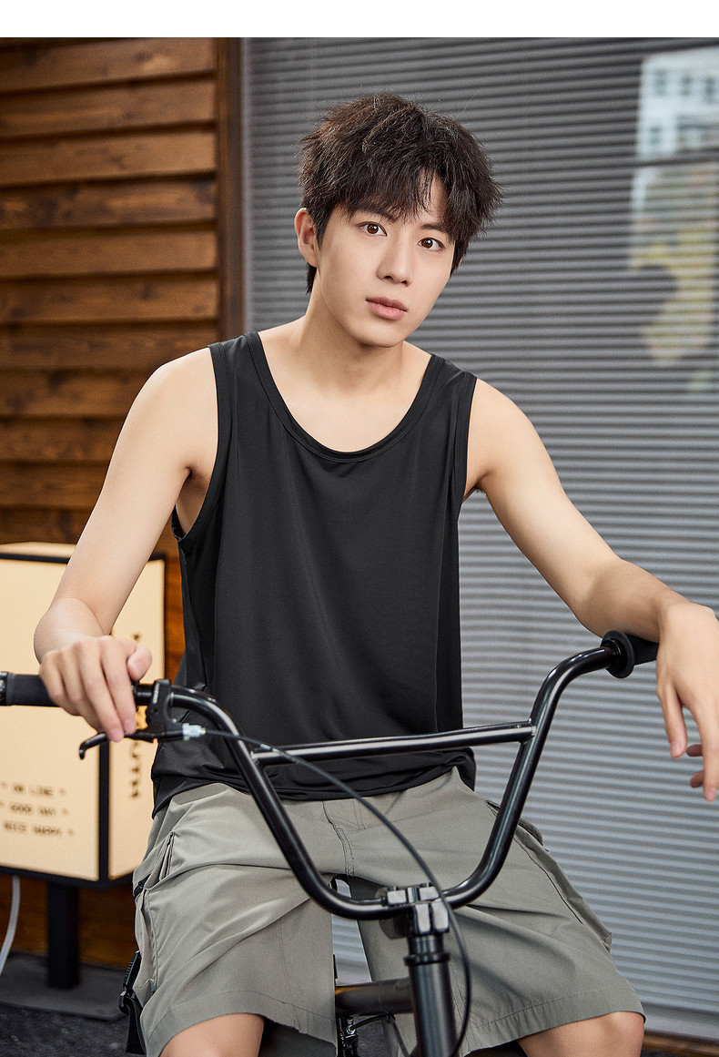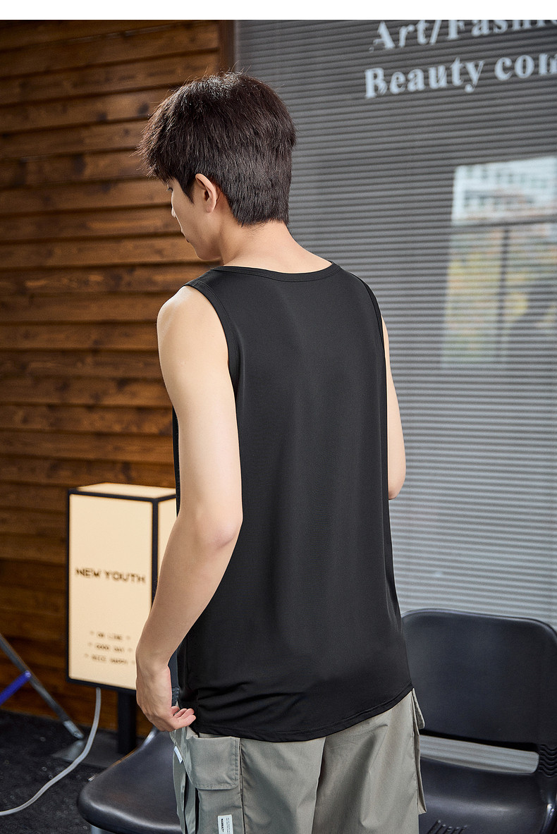 唐狮2024春夏新款男背心宽松坎肩无袖T恤运动汗衫透气网眼上衣潮