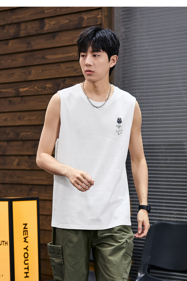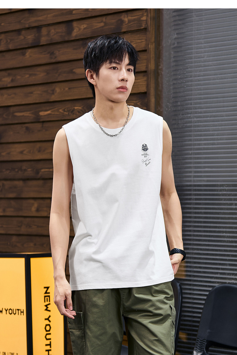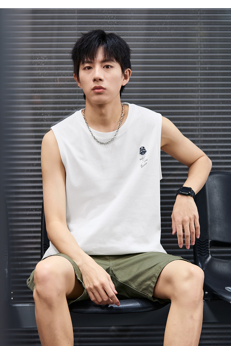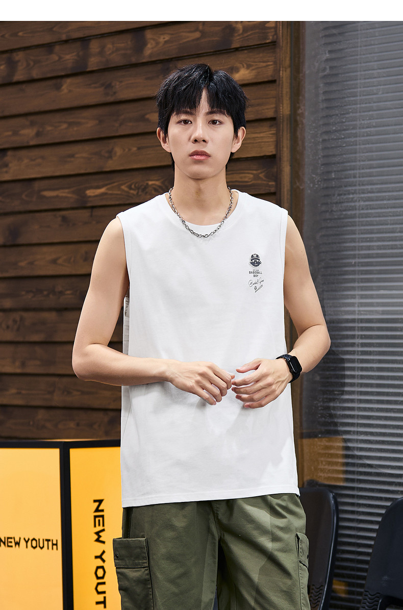 唐狮2024春夏新款男背心纯棉圆领上衣运动坎肩无袖T恤白色汗衫潮