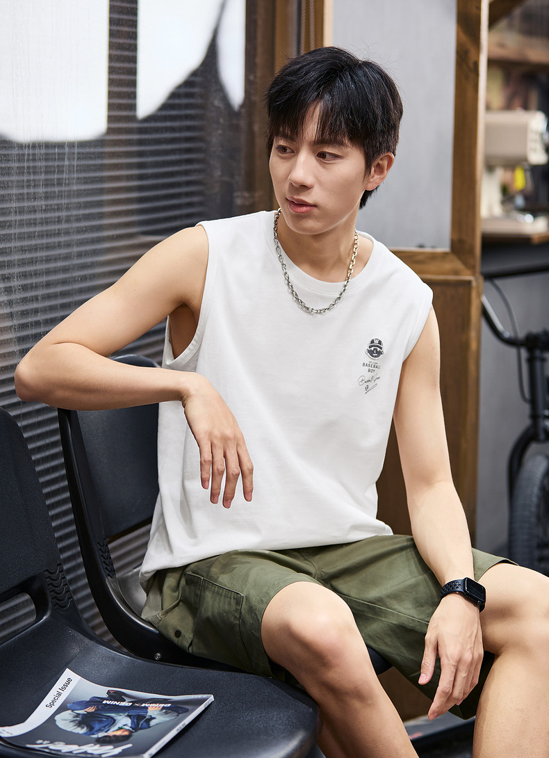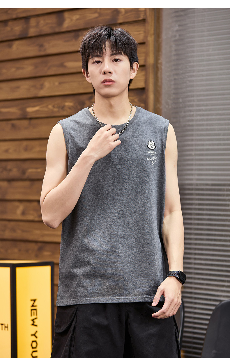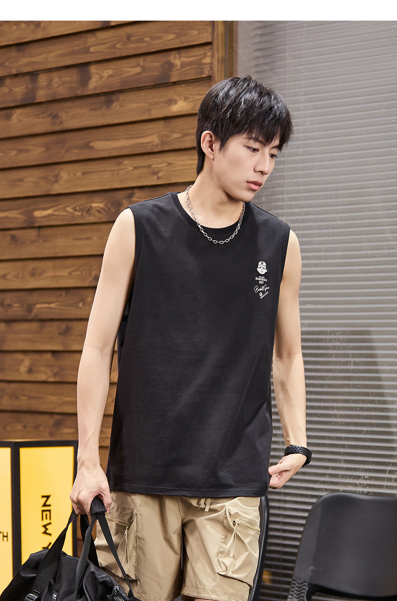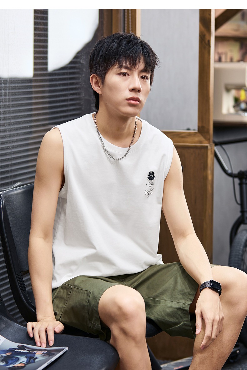 唐狮2024春夏新款男背心纯棉圆领上衣运动坎肩无袖T恤白色汗衫潮