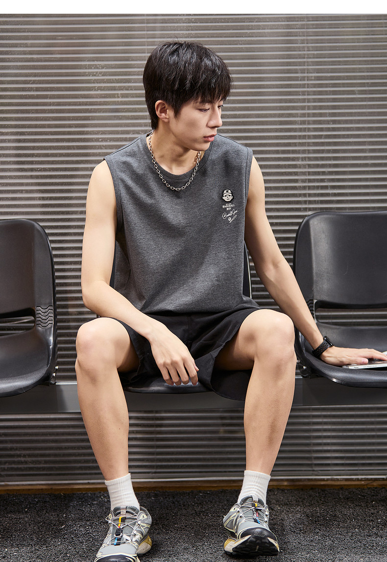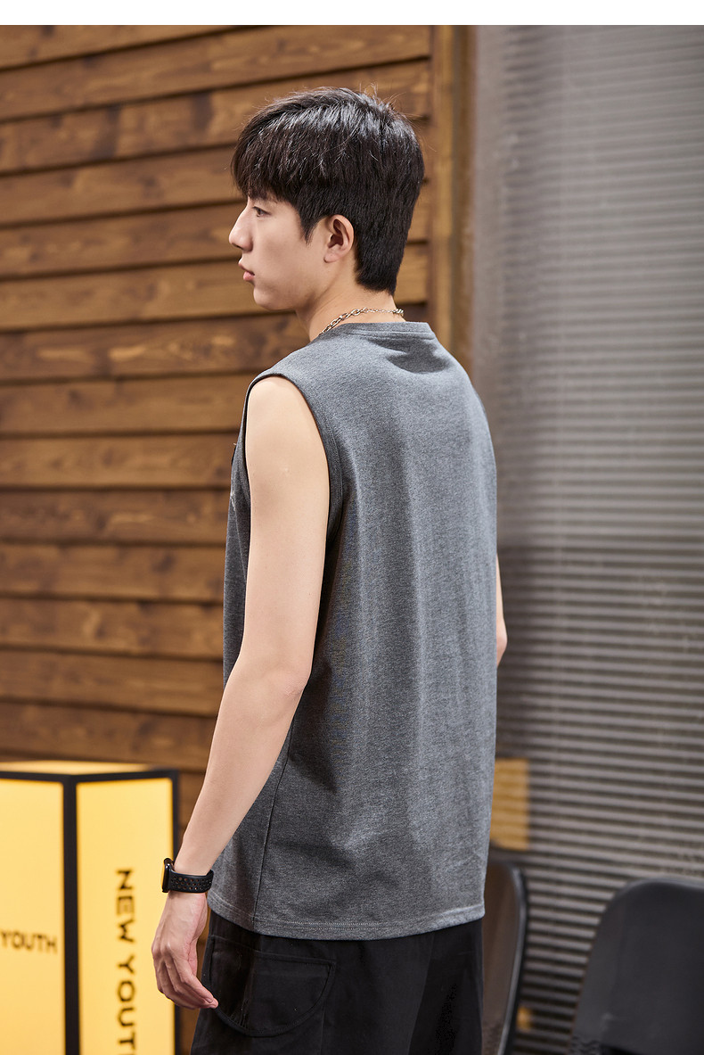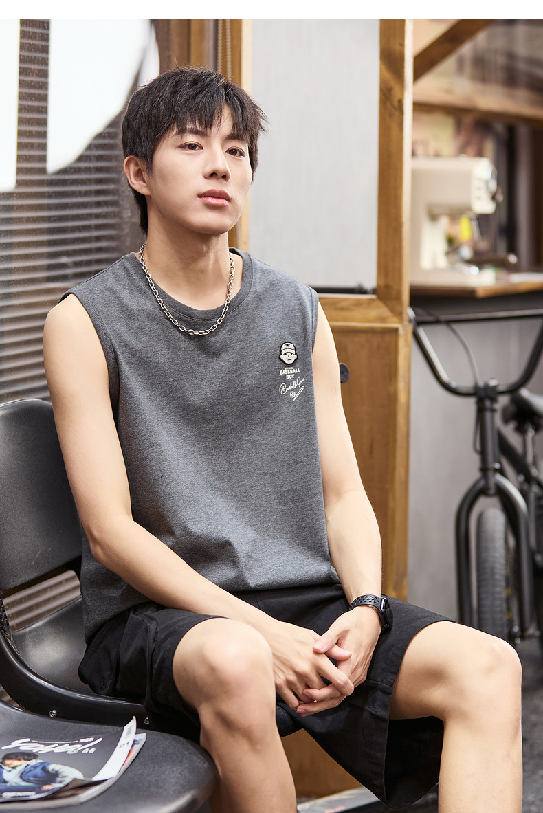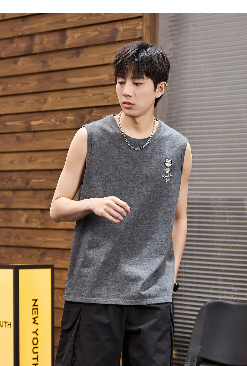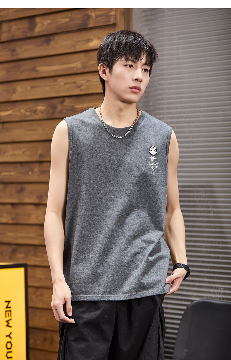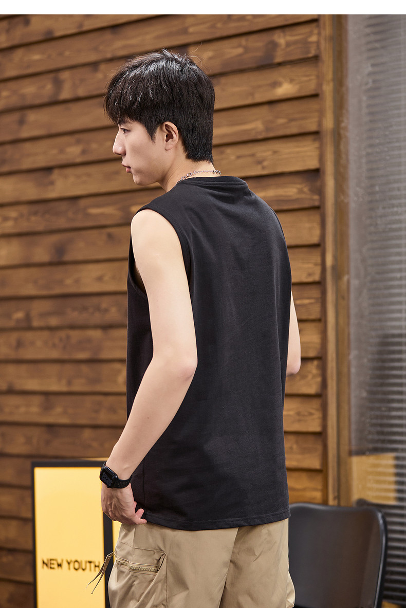 唐狮2024春夏新款男背心坎肩无袖T恤后背印花港风圆领上衣打底衫