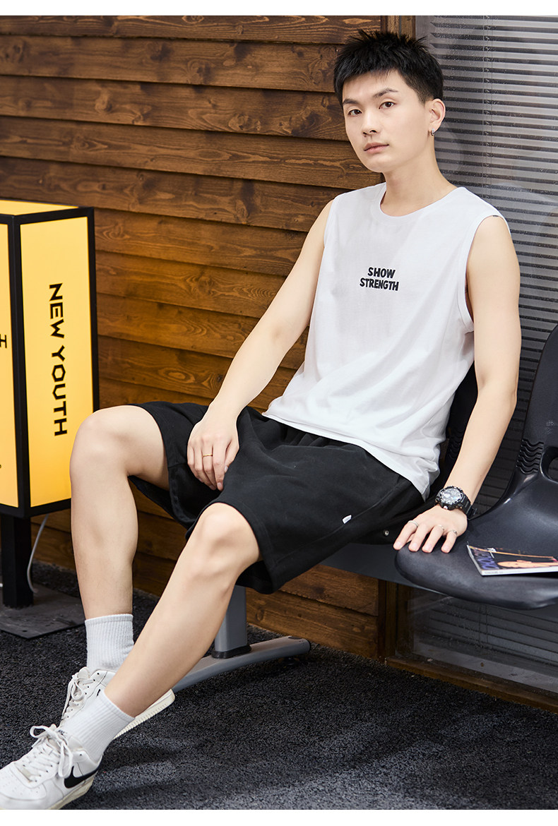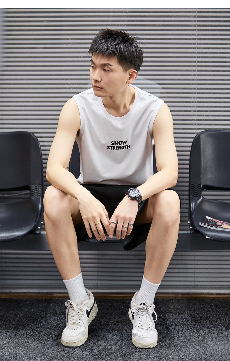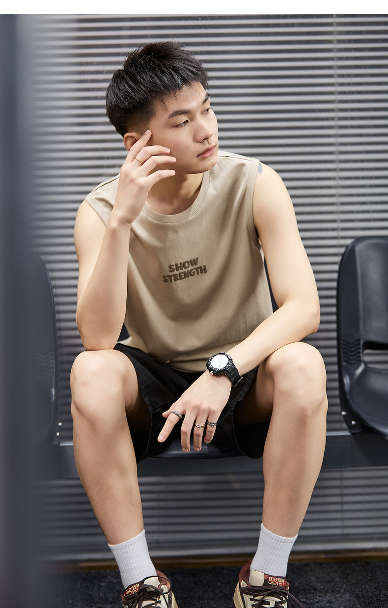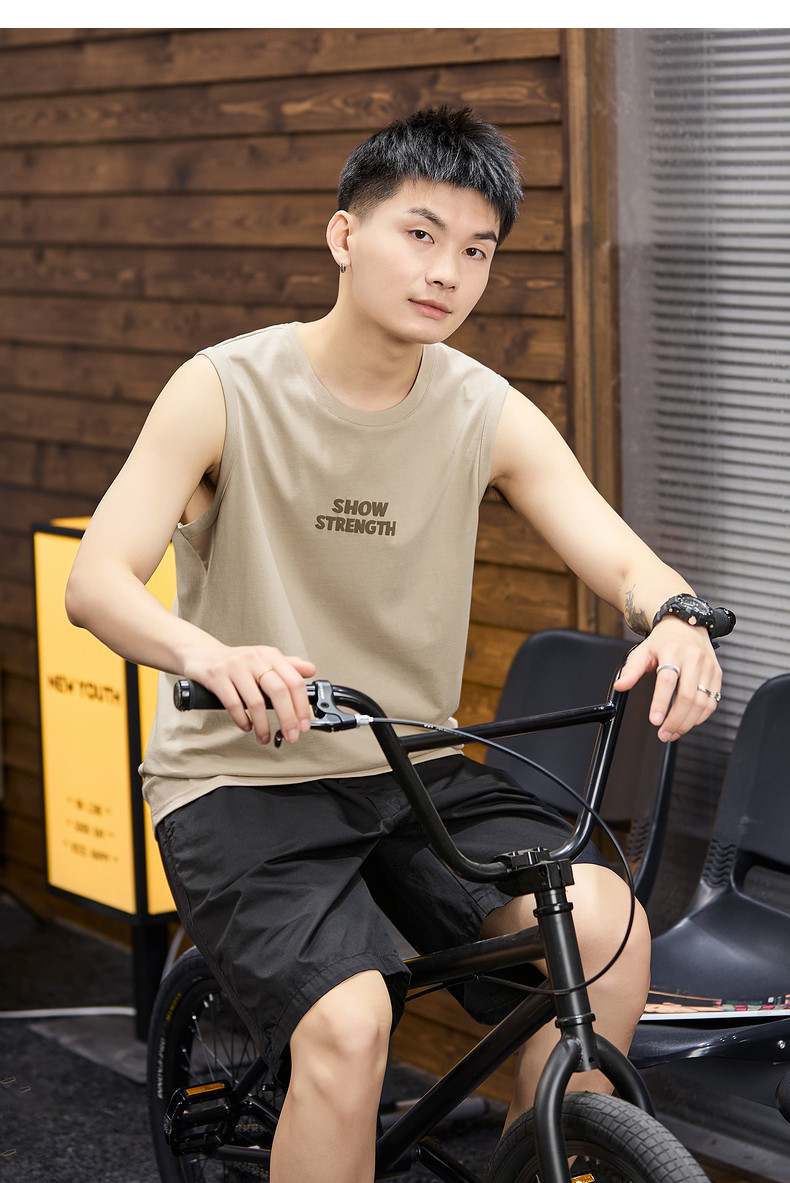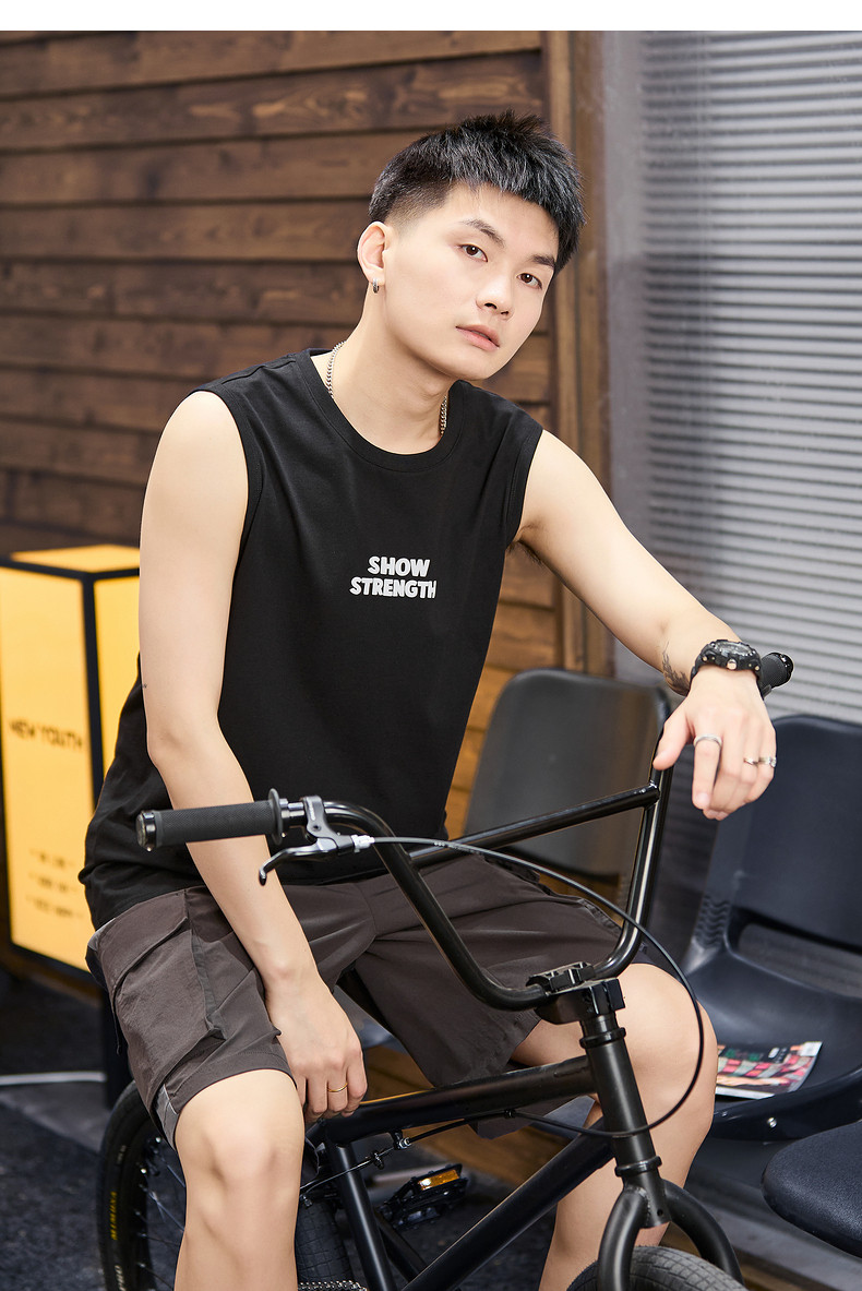 唐狮2024年春夏季新款男士背心坎肩净色无袖上衣简约运动少年潮酷