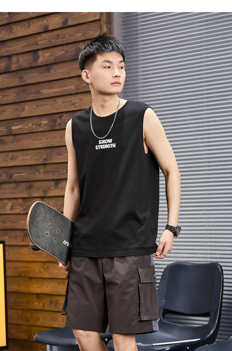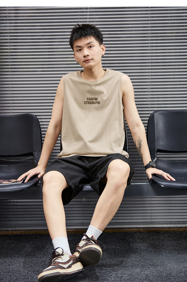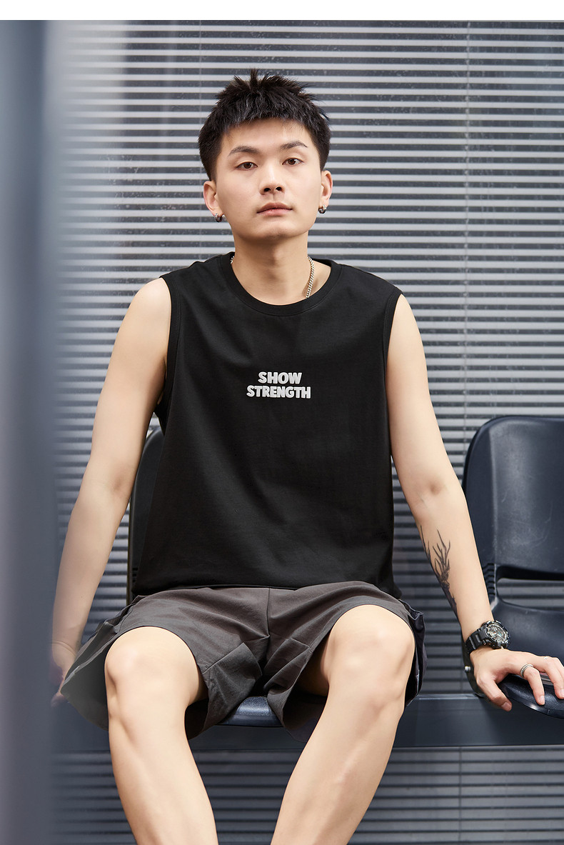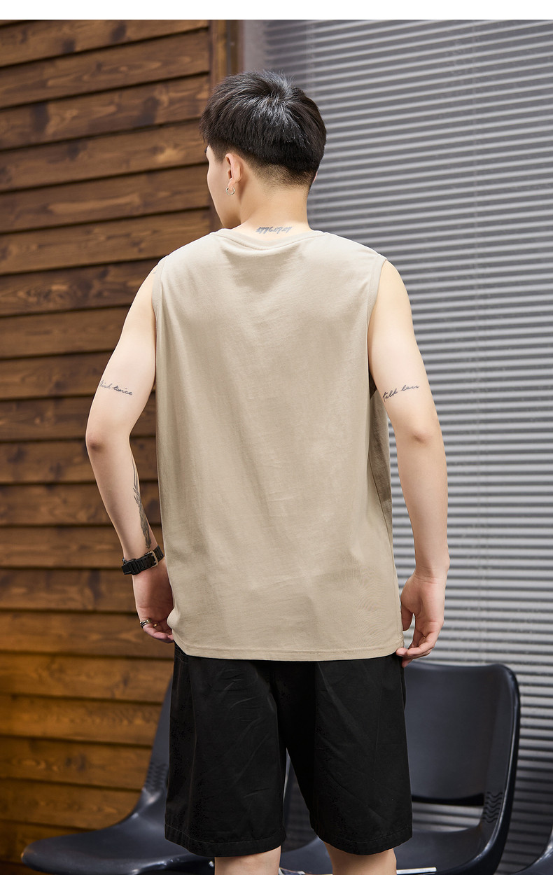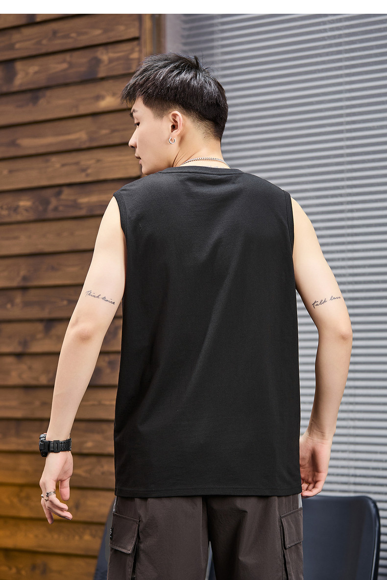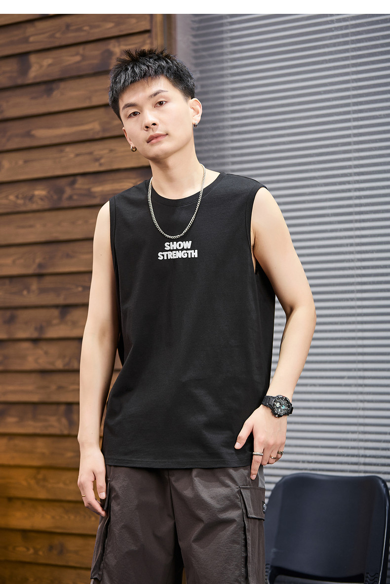 唐狮2024春夏新款男背心圆领坎肩无袖上衣字母港风休闲内搭T恤潮