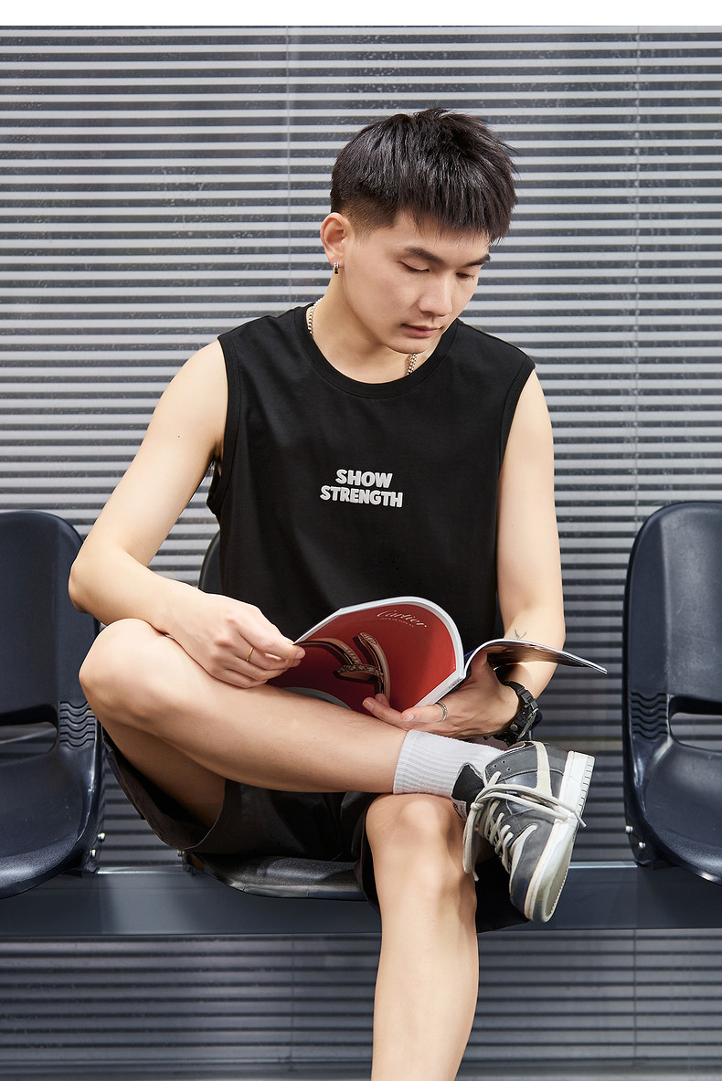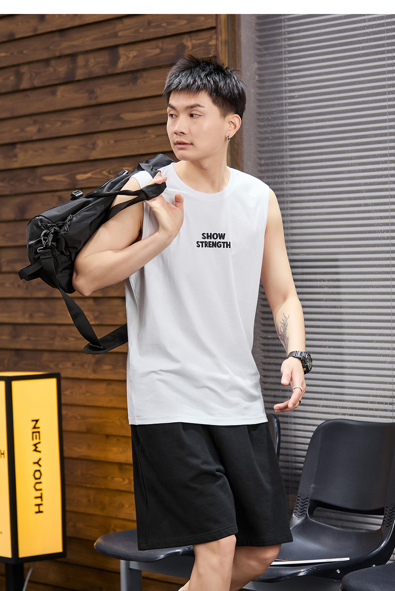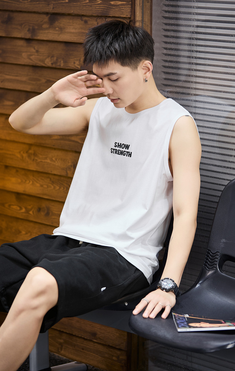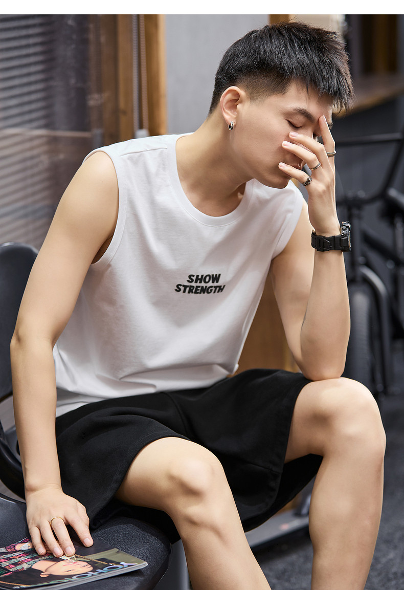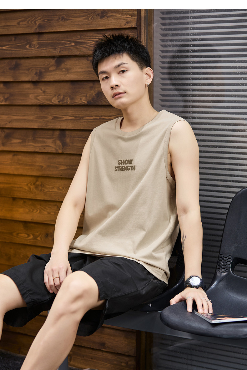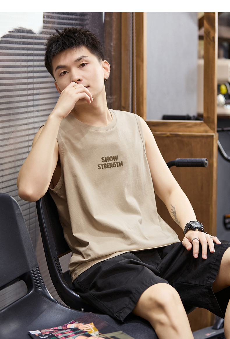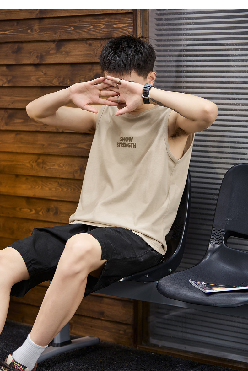 唐狮2024春夏新款男背心圆领坎肩无袖上衣字母港风休闲内搭T恤潮