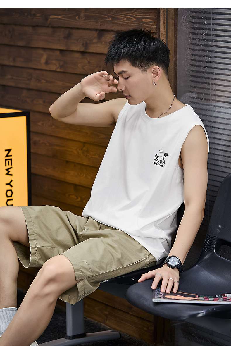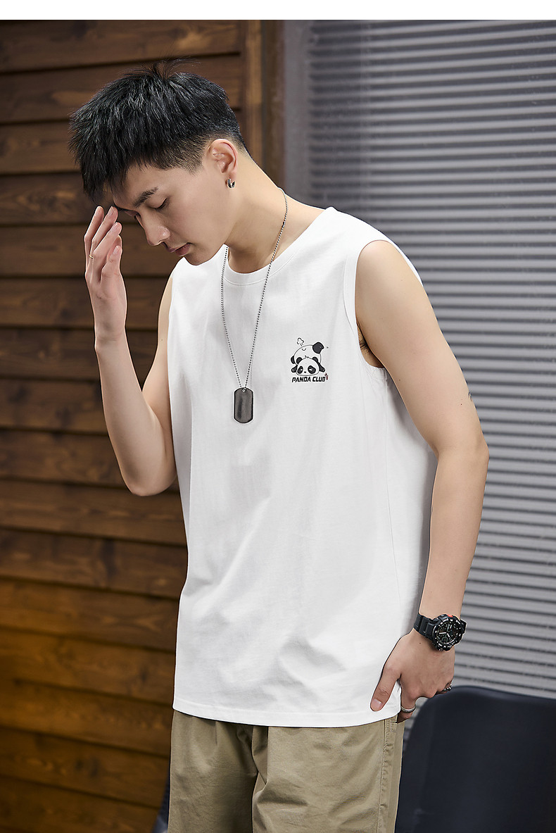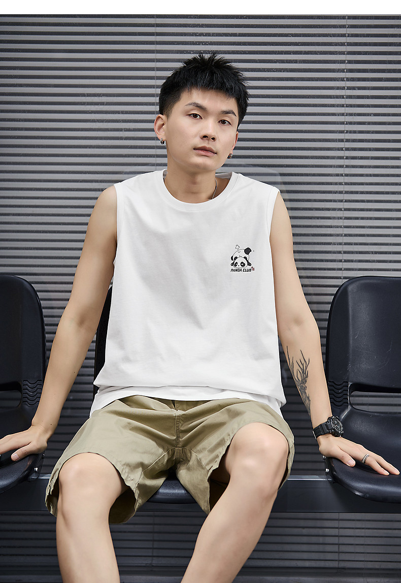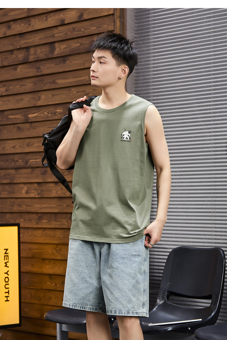 唐狮2024春夏季新款男背心坎肩印花T恤休闲圆领上衣汗衫打底潮酷
