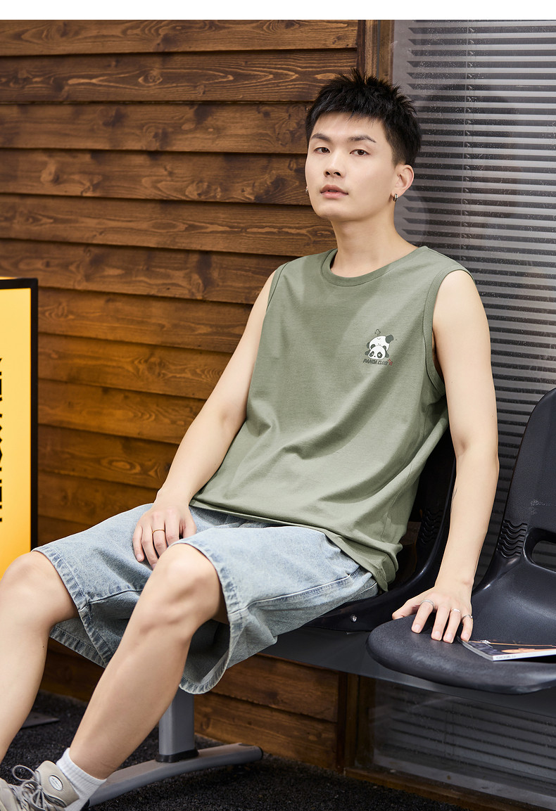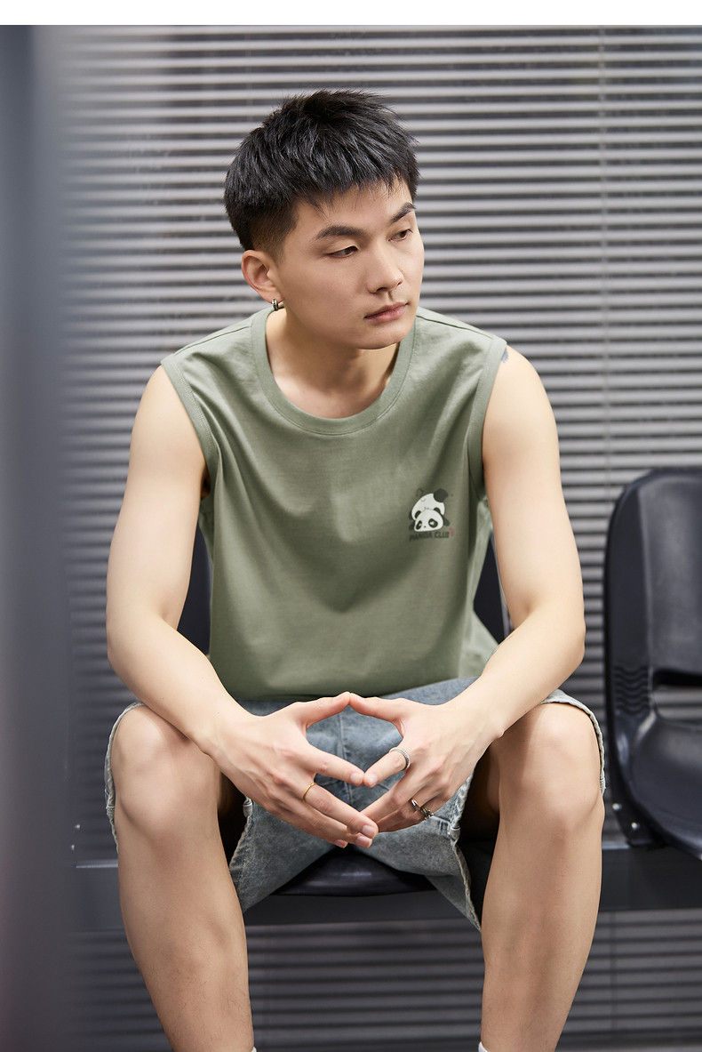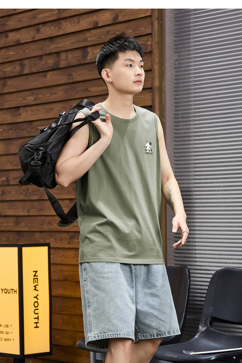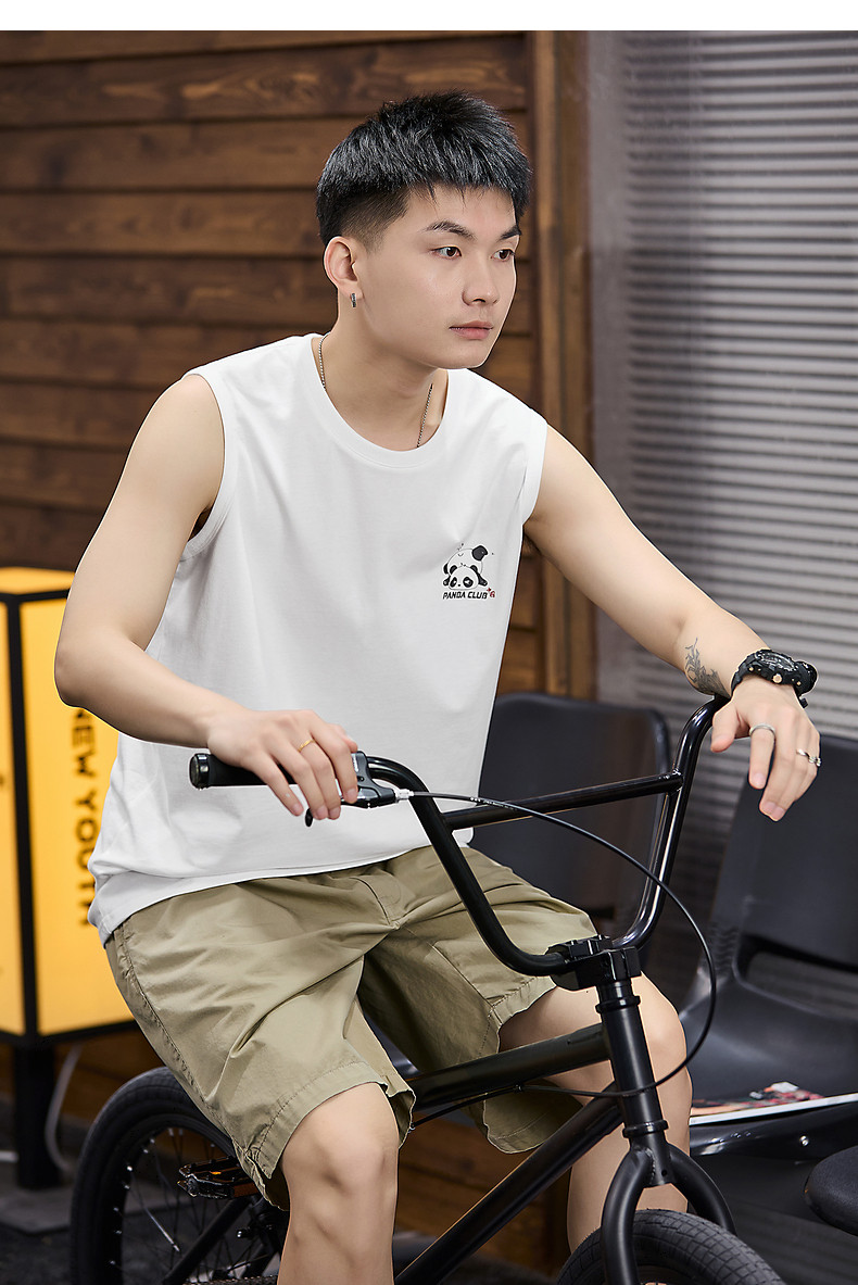 唐狮2024春夏季新款男背心坎肩印花T恤休闲圆领上衣汗衫打底潮酷