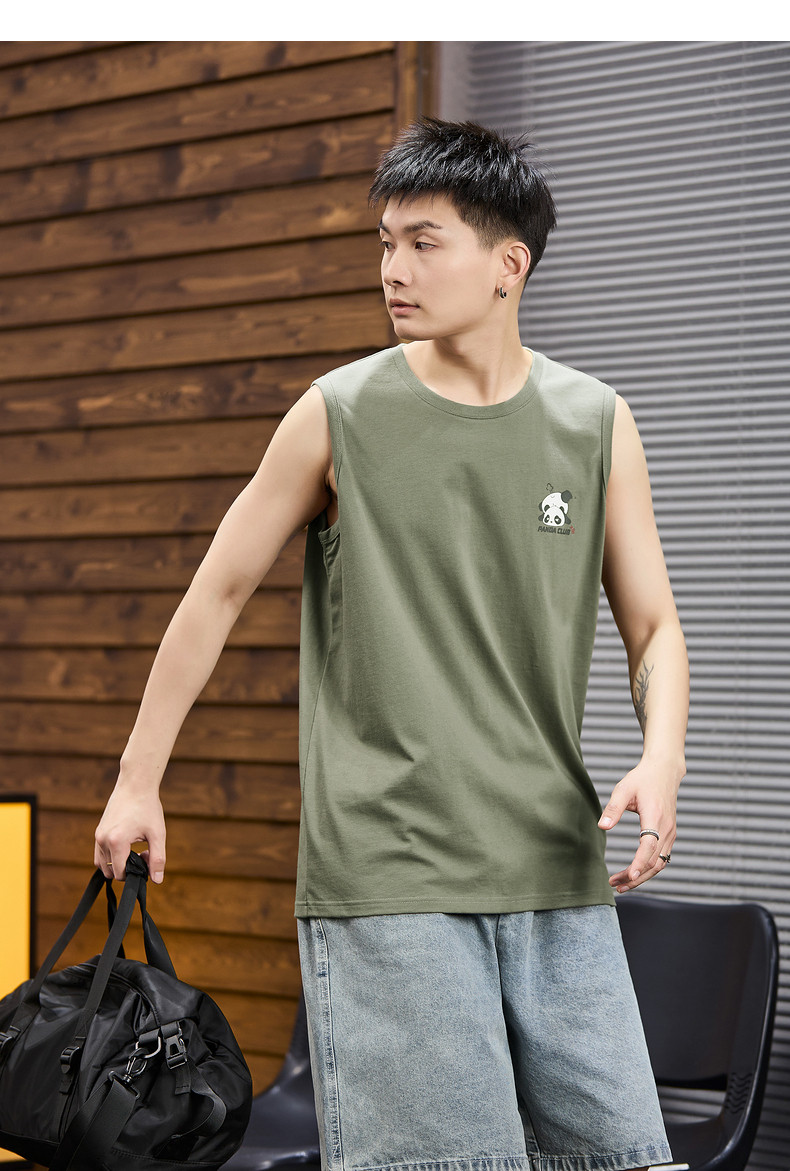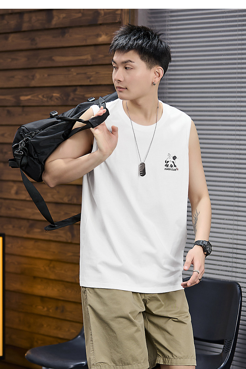 唐狮2024夏季新款男背心圆领无袖百搭简约打底衫内搭男上衣汗衫