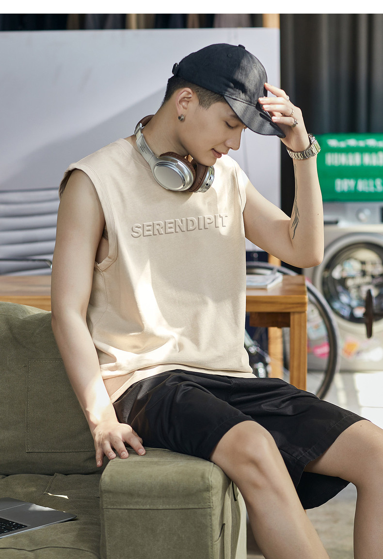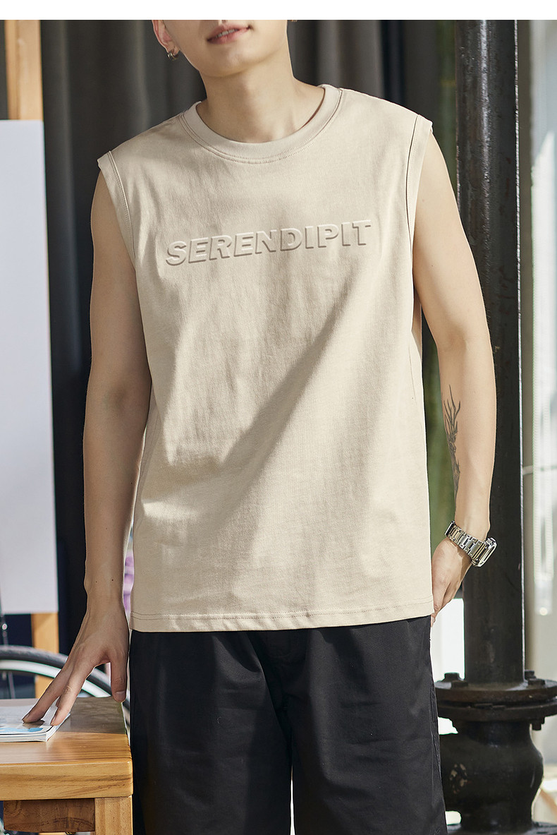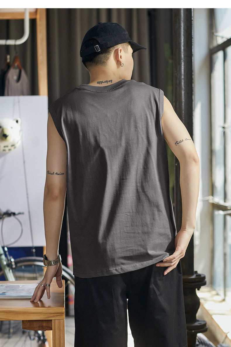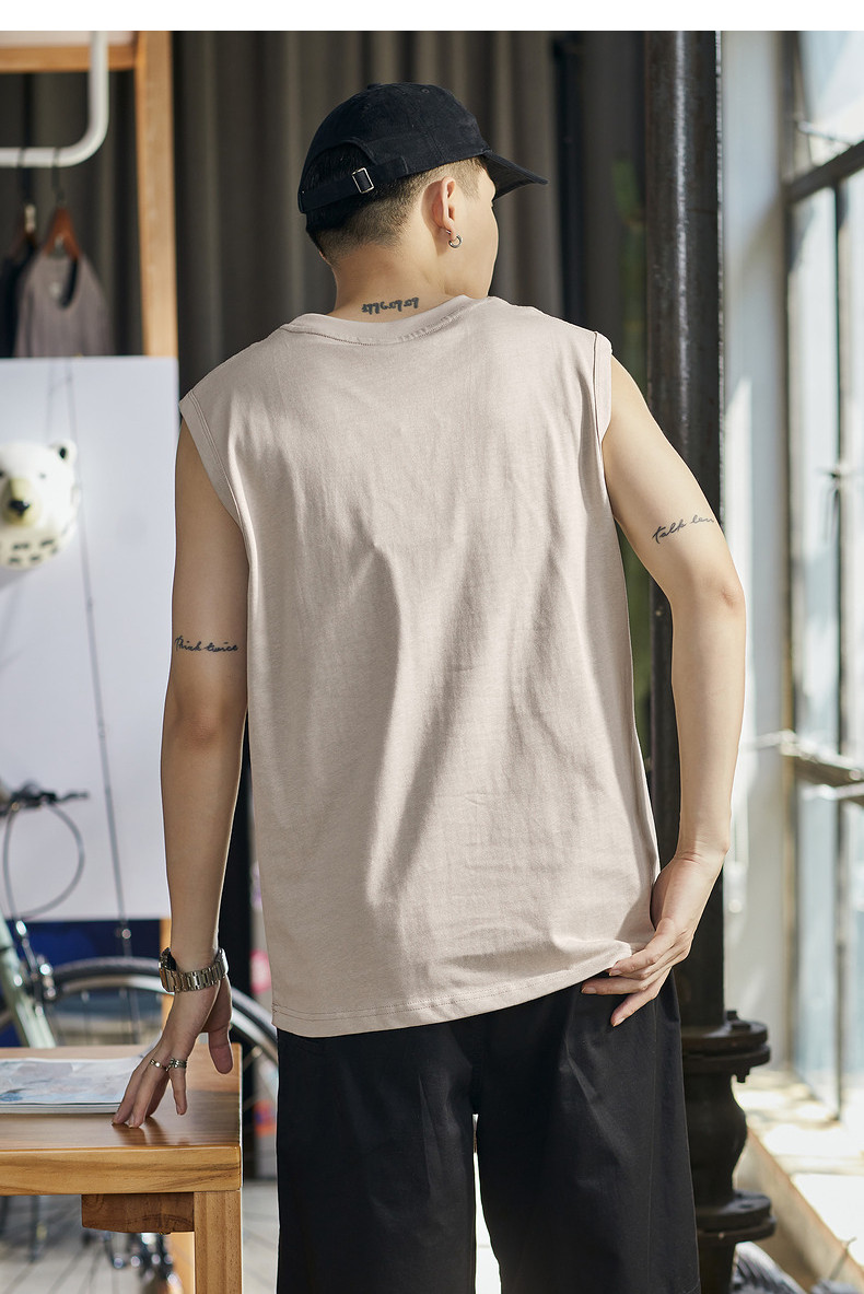 唐狮2024年春夏季新款男士背心坎肩净色无袖上衣简约运动少年潮酷