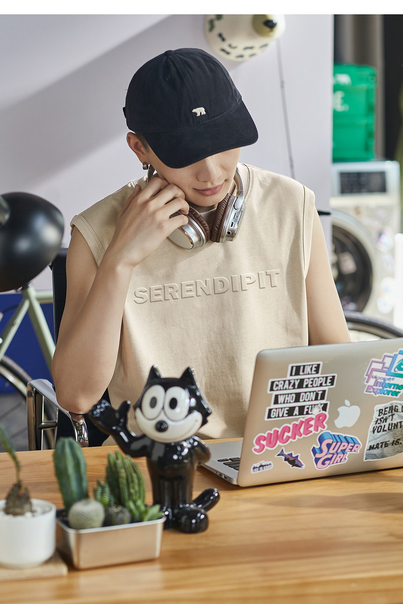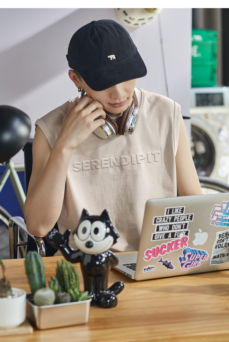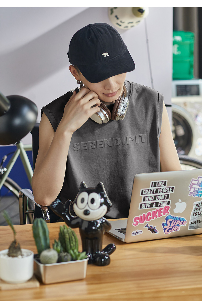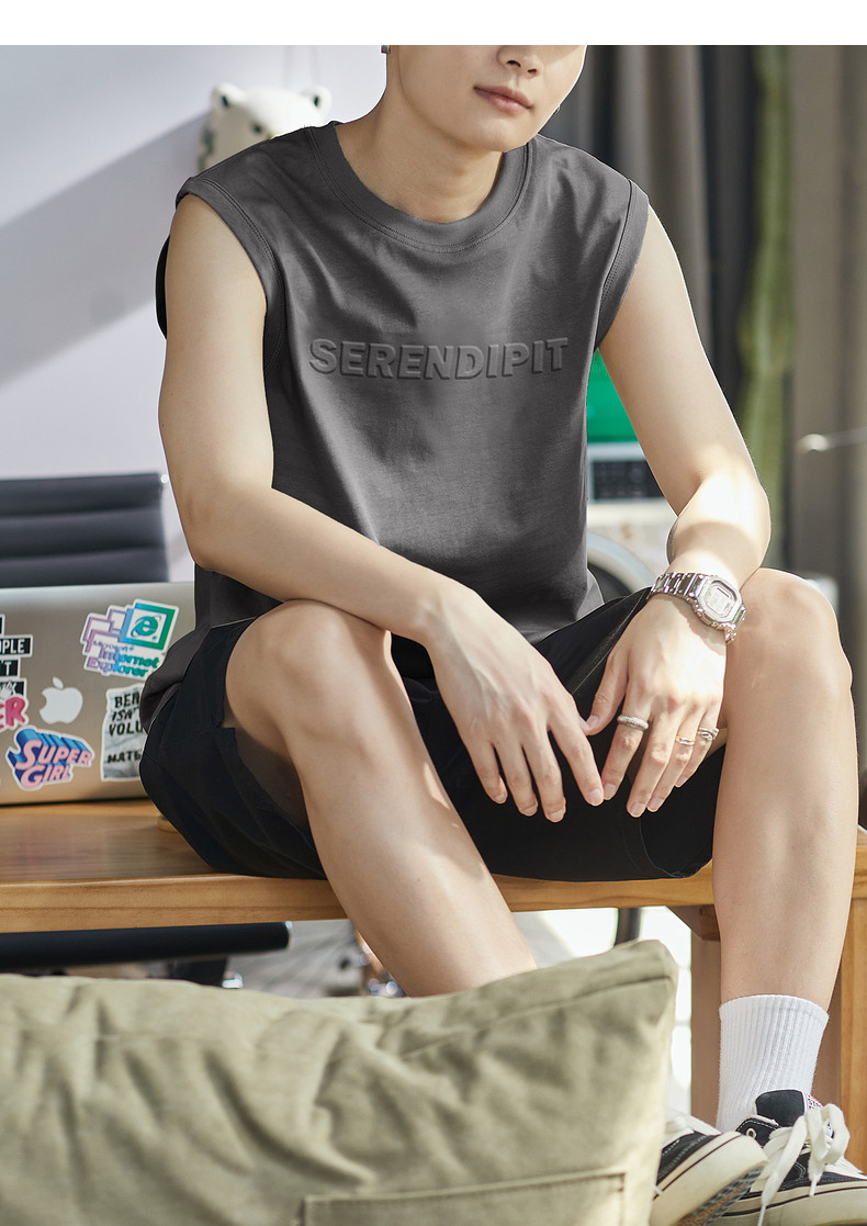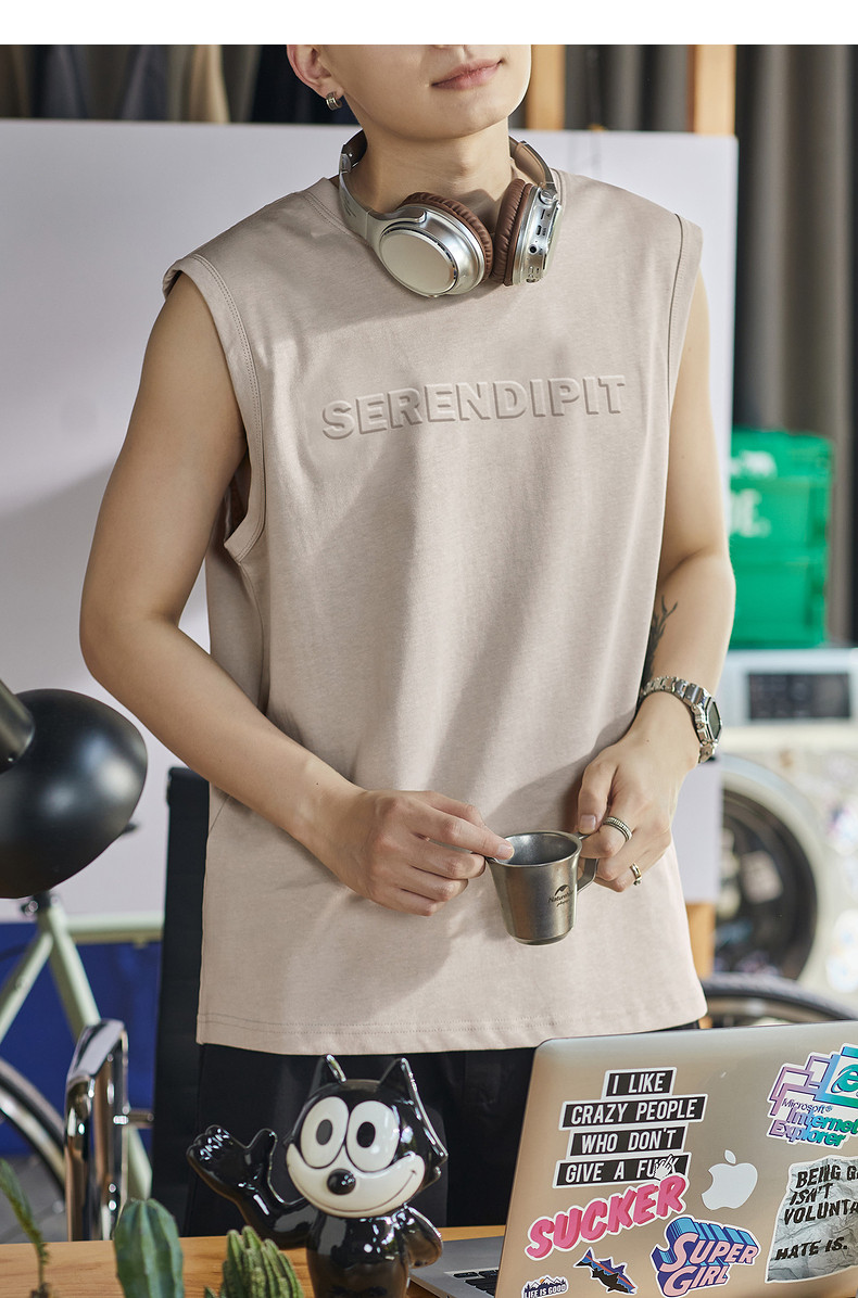 唐狮2024年春夏季新款男士背心坎肩净色无袖上衣简约运动少年潮酷