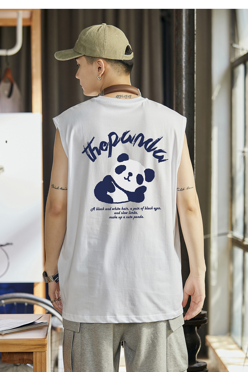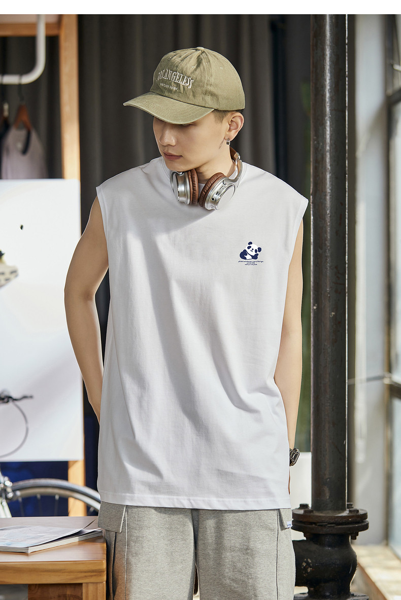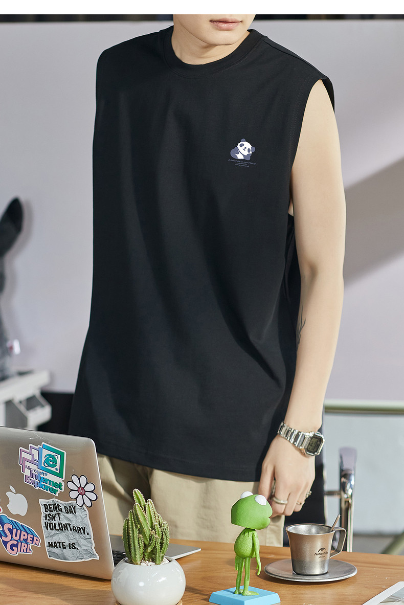 唐狮2024夏季新款背心男款学生白色坎肩无袖T恤圆领上衣打底衫潮t