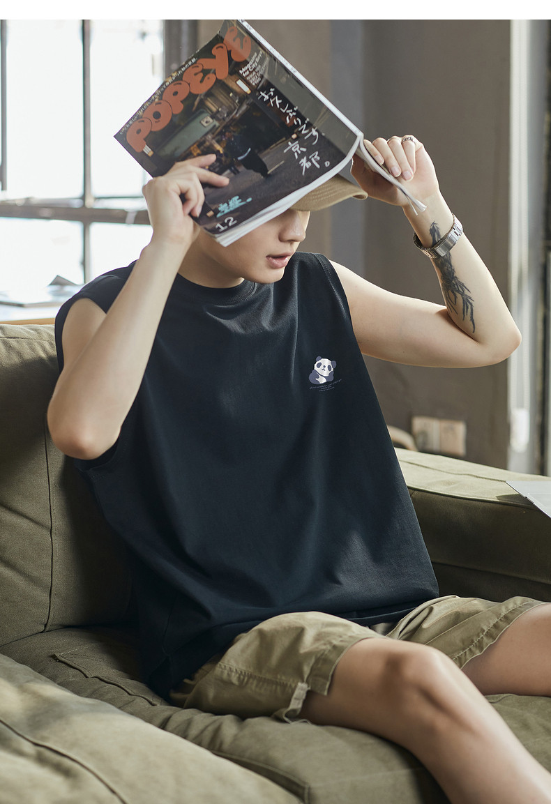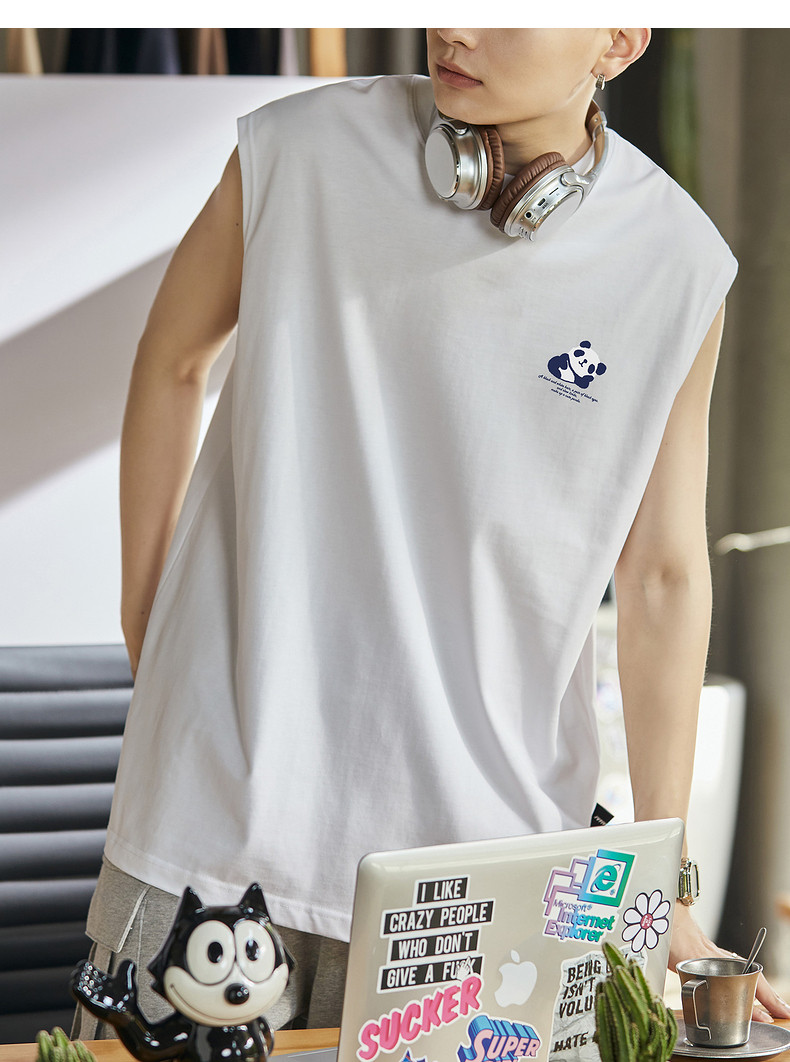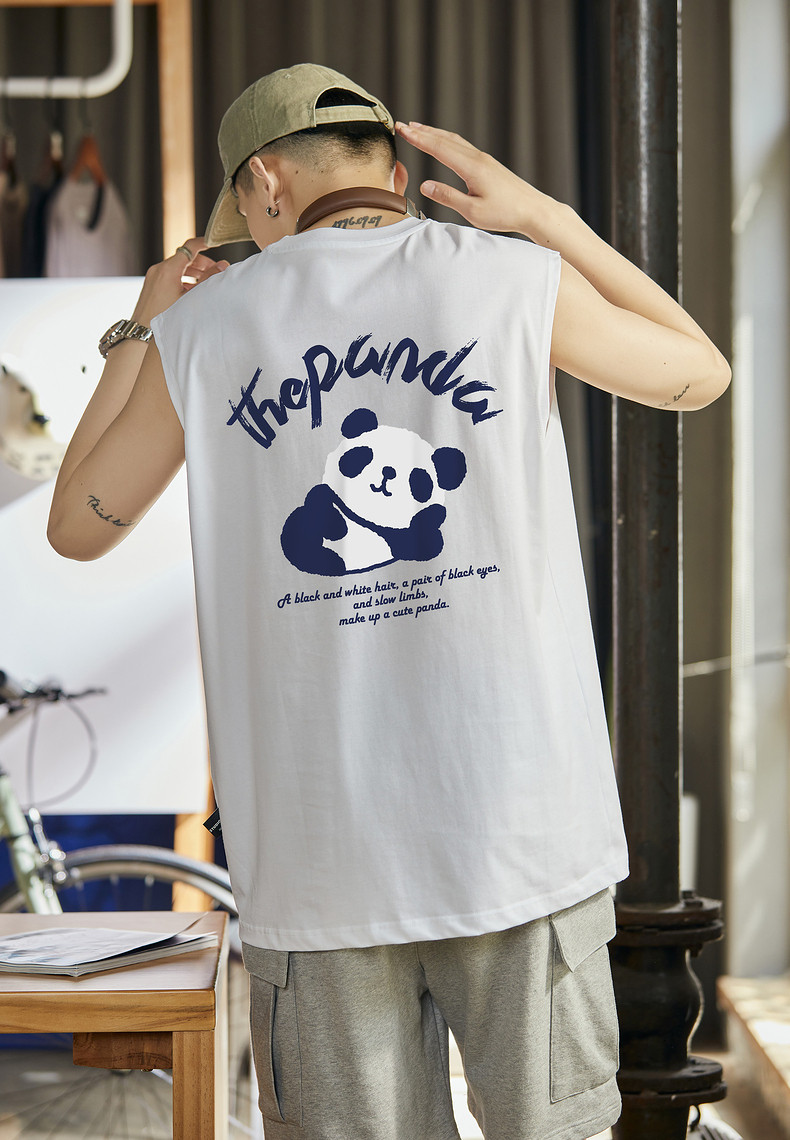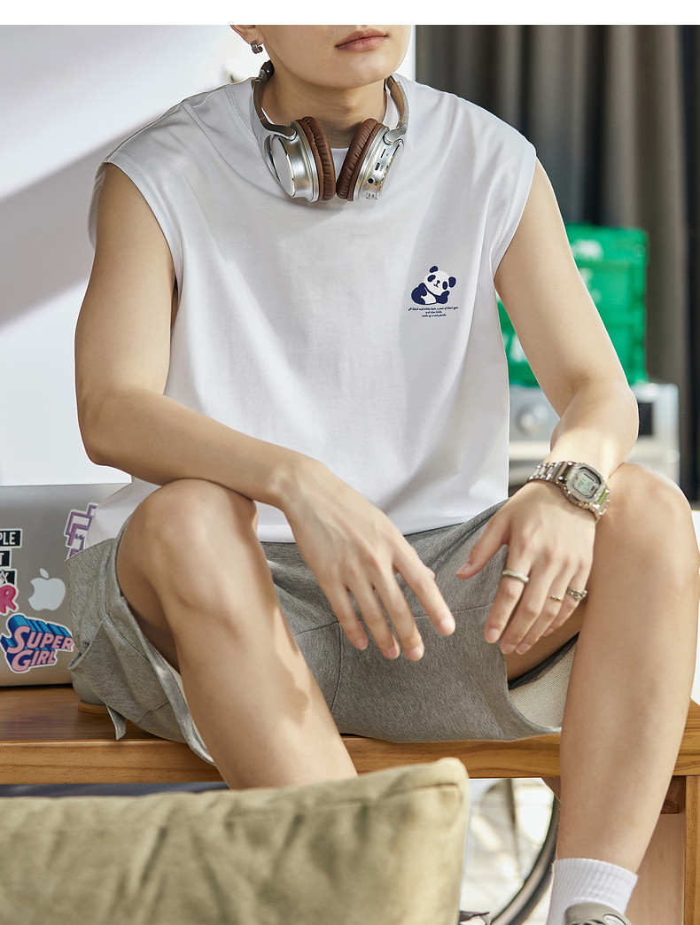 唐狮2024夏季新款背心男款学生白色坎肩无袖T恤圆领上衣打底衫潮t