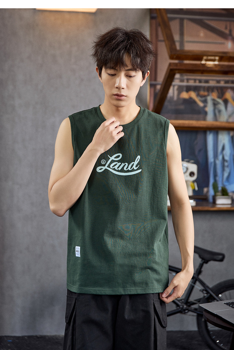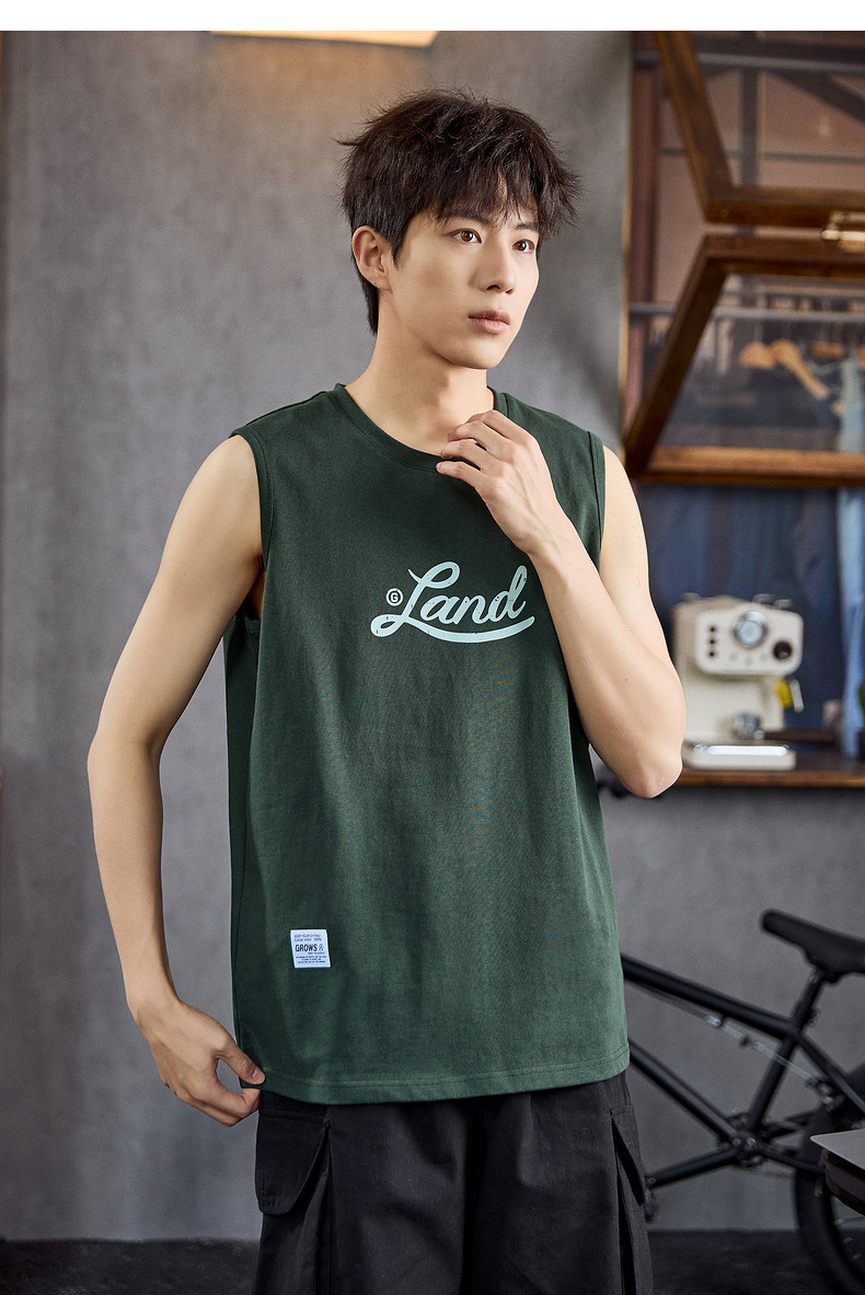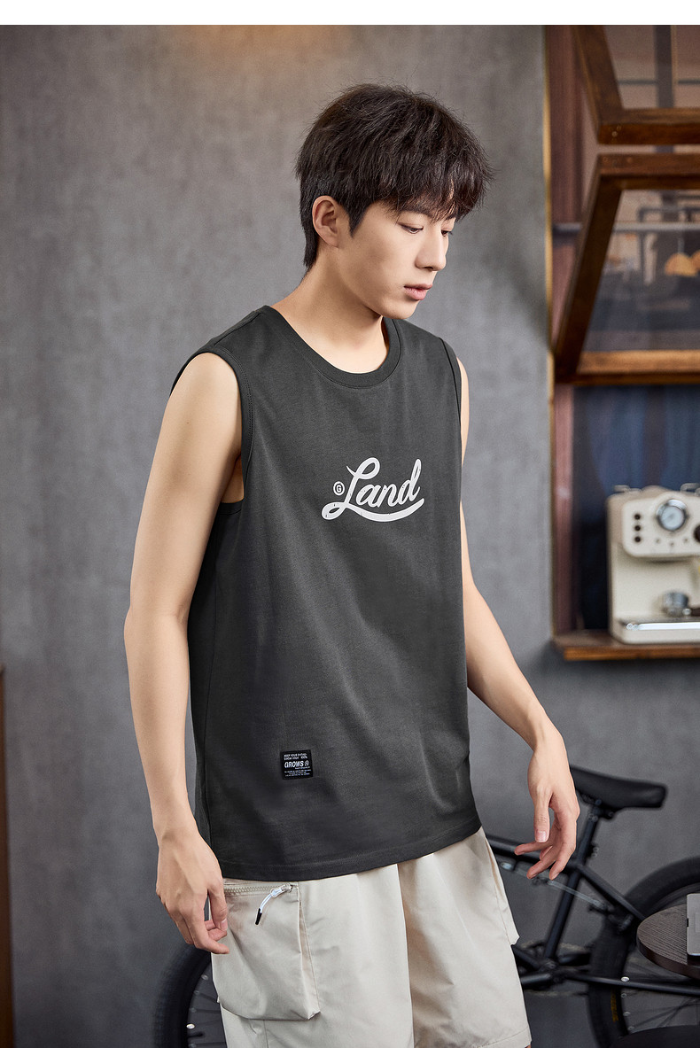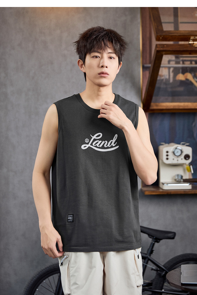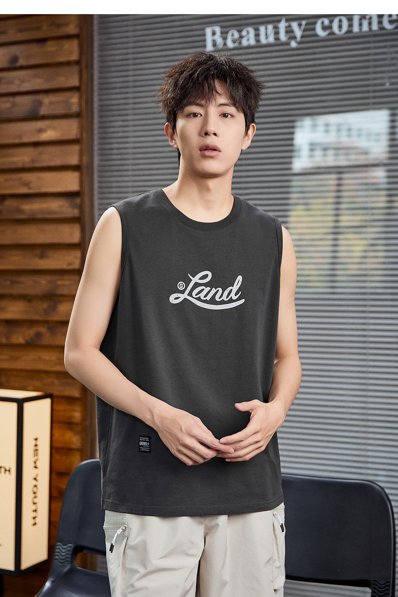 唐狮2024春夏新款男背心圆领坎肩无袖上衣字母港风休闲内搭T恤潮
